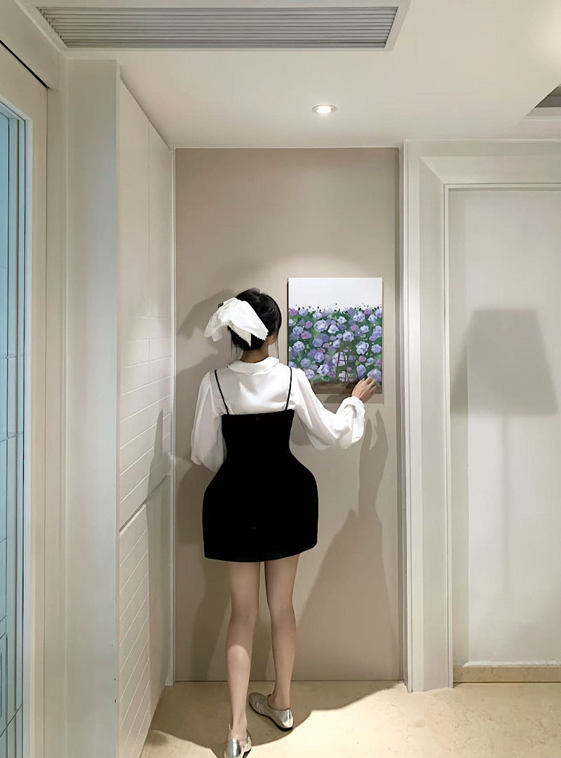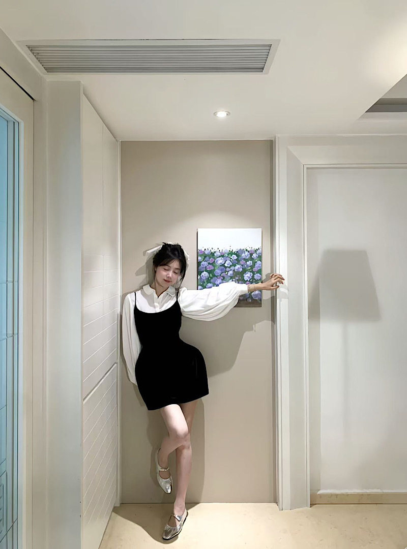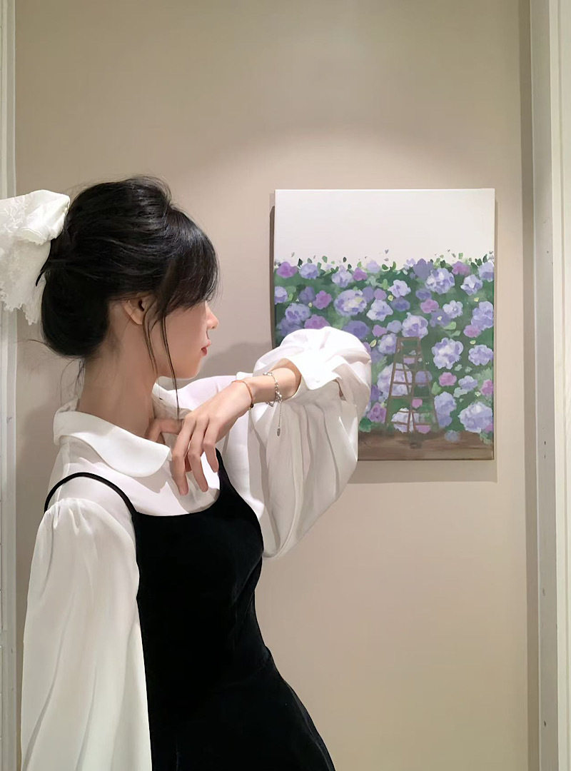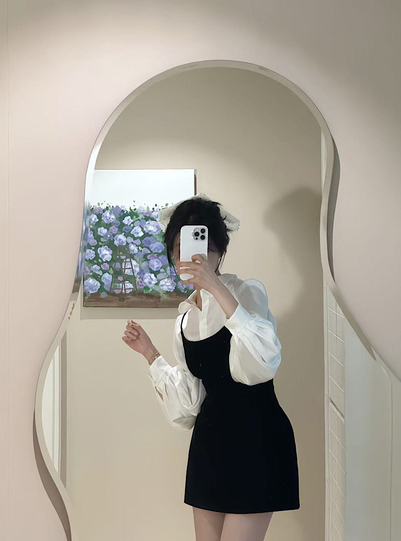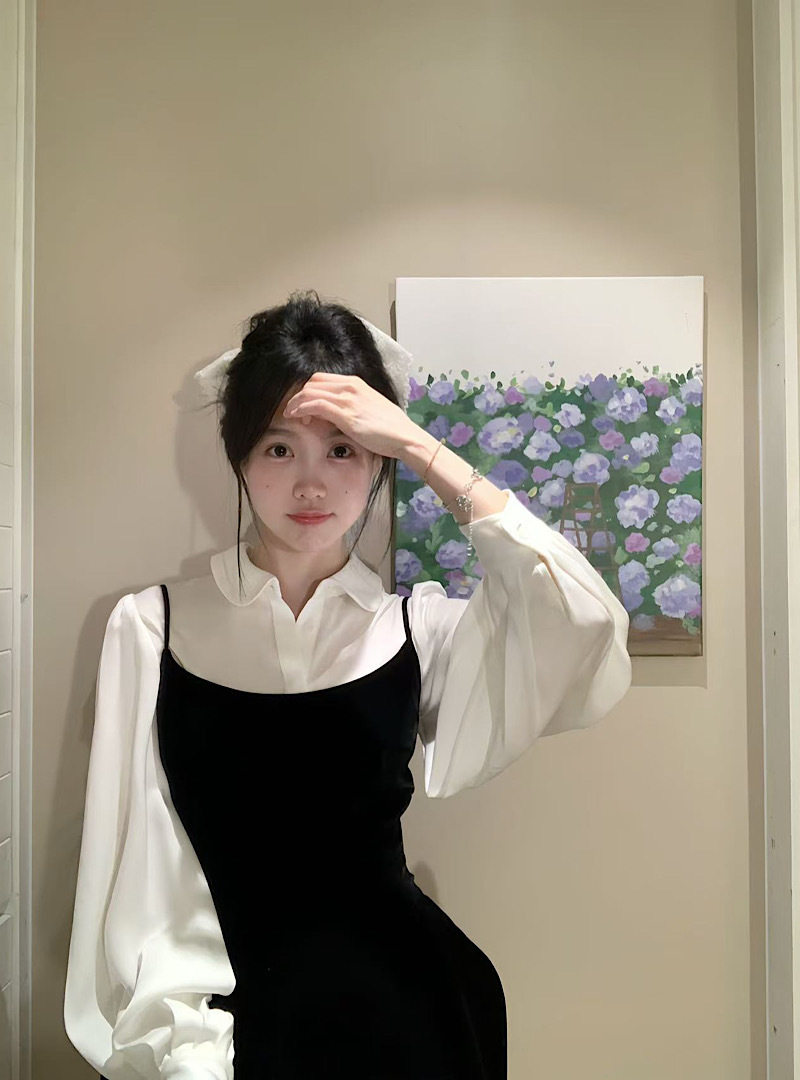 2025 New French Style White Poio Collar Long-Sleeved Shirt Women's Autum Slim Suspender Dress Two-Piece Set