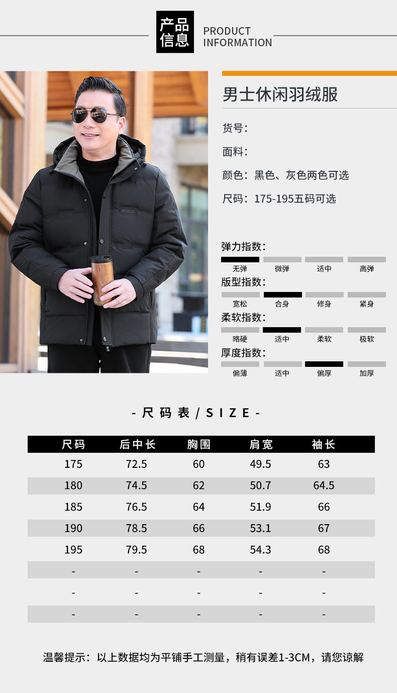 Down Jacket Men's Winter Outwear Middle-Aged Business Casual Lightweight Winter Outwear 2025 New Winter Tops