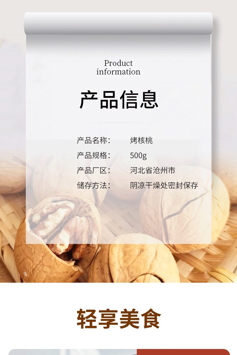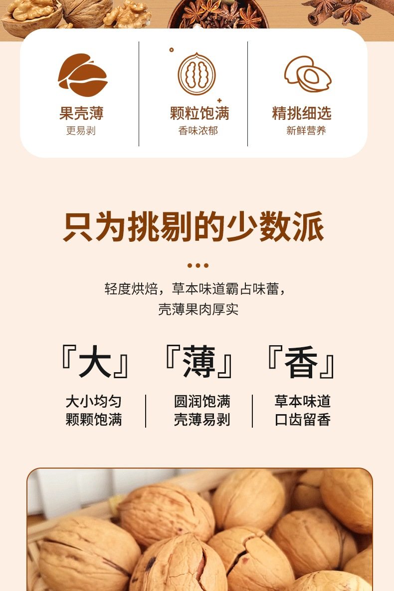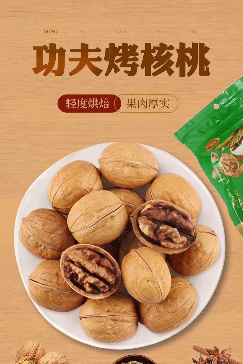 Guangxinda Kung Fu Roasted Walnuts 500g Herbal Flavor Hand-Peeled Thin-Skinned Walnut Nuts Dried Fruit Office Snack Food