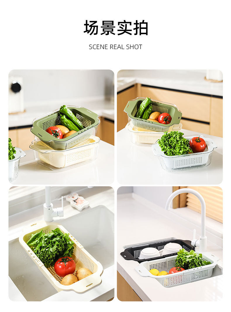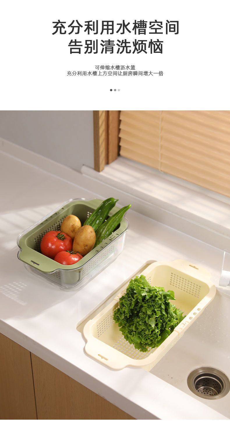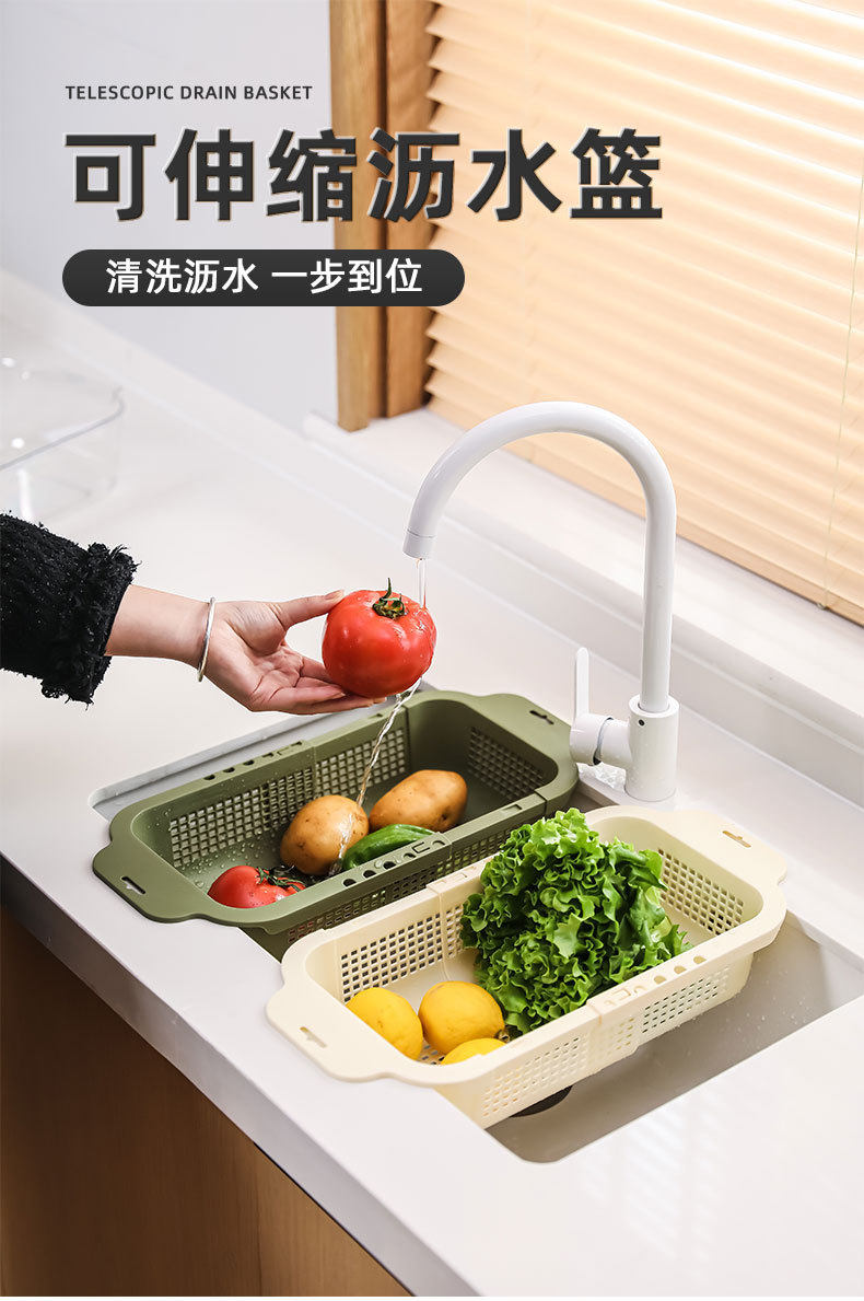 Retractable Drain Basket Kitchen Vegetable Basket Wash Basin Drain Household Living Room Fruit Plate Water Filter Basket