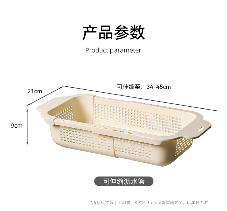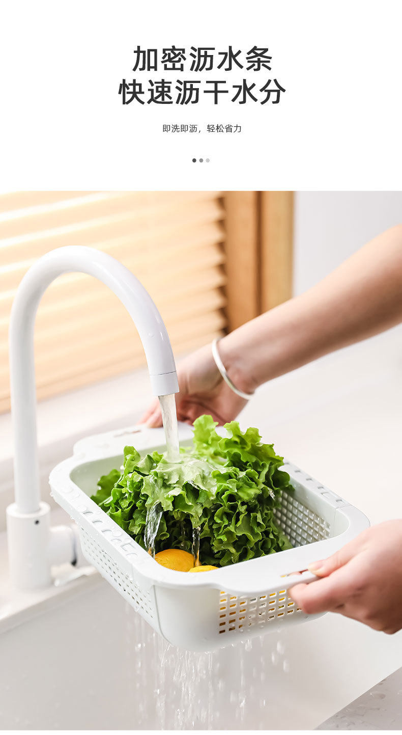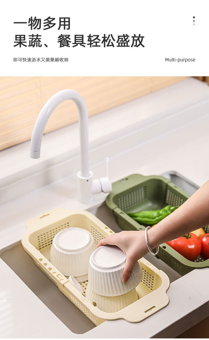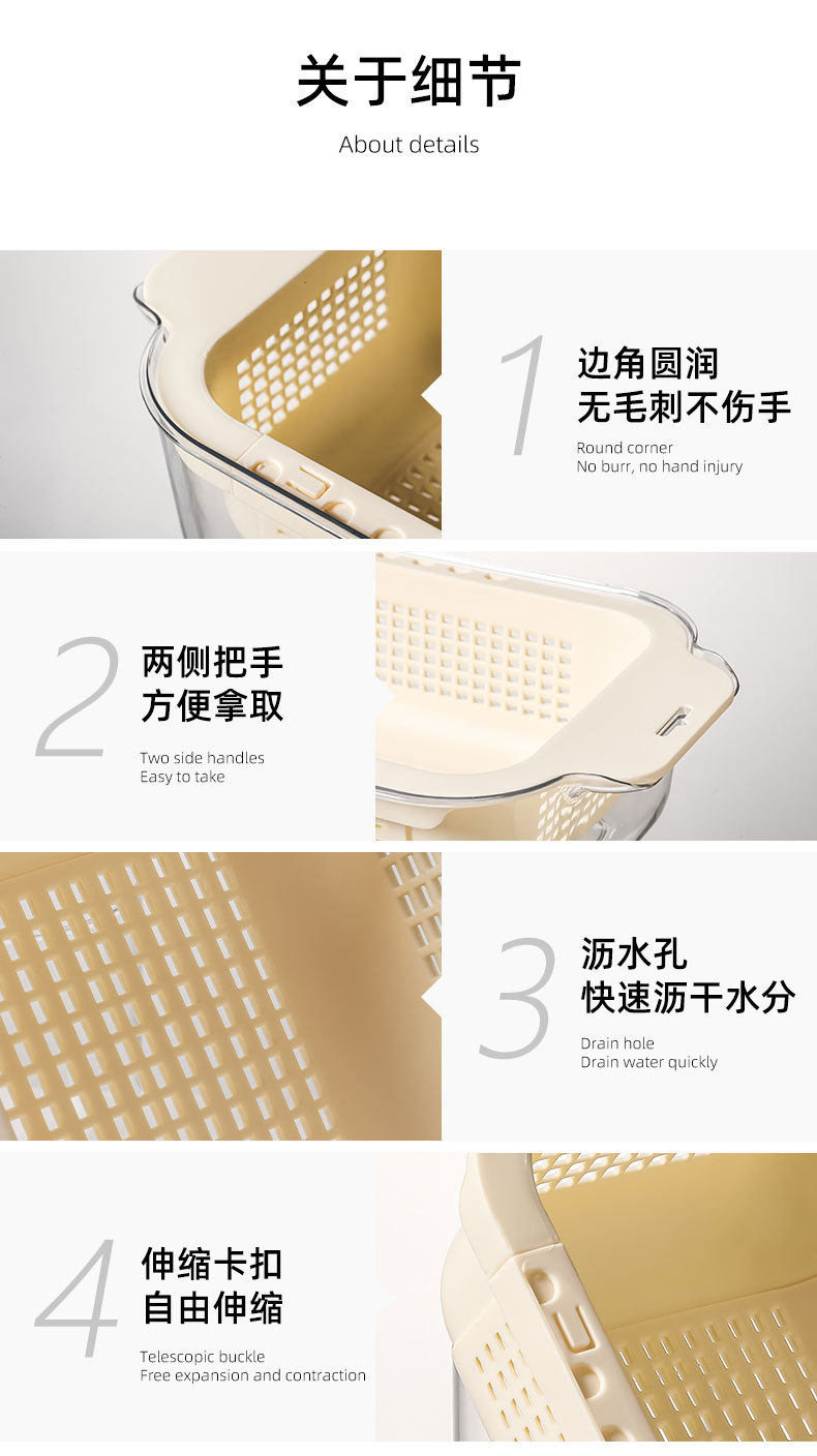 Retractable Drain Basket Kitchen Vegetable Basket Wash Basin Drain Household Living Room Fruit Plate Water Filter Basket