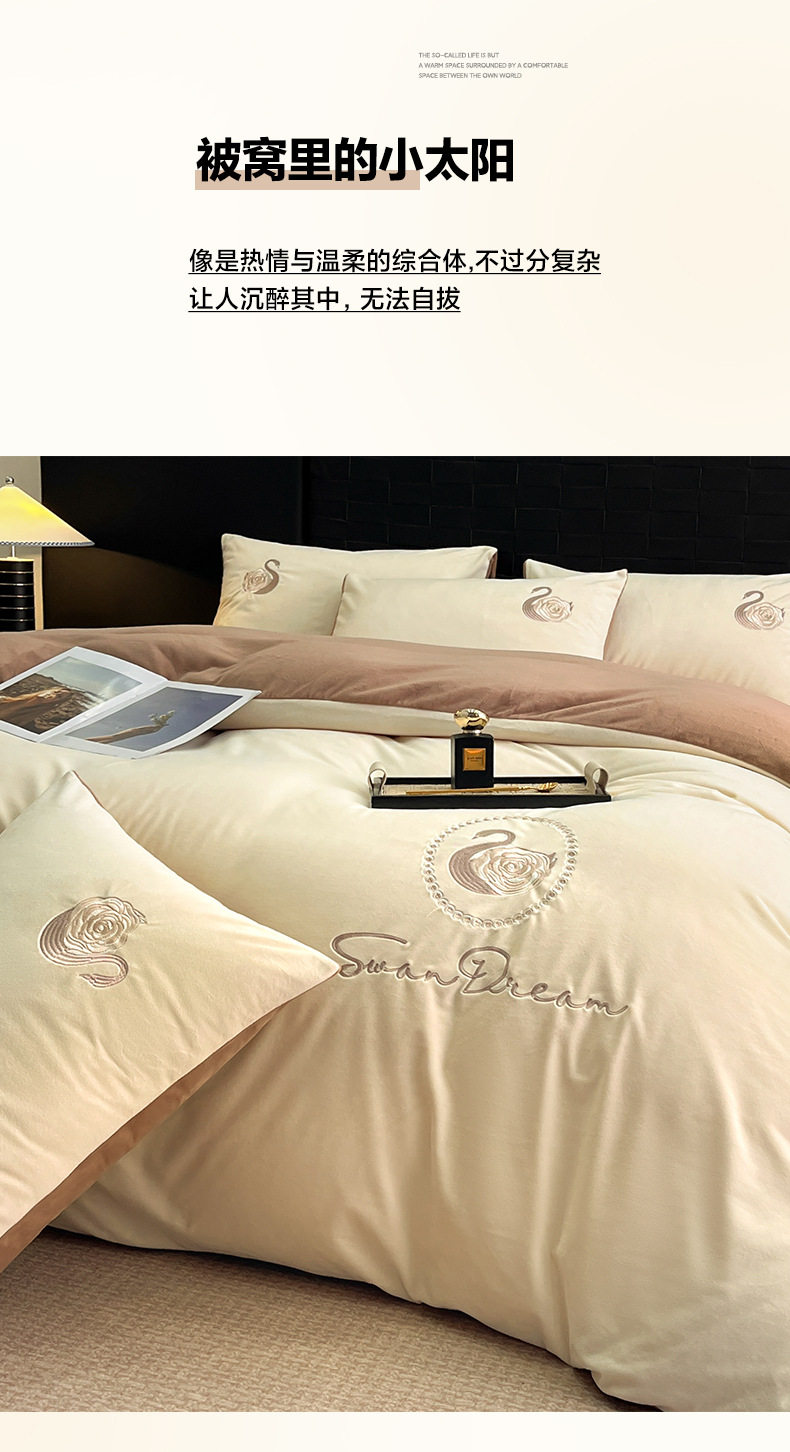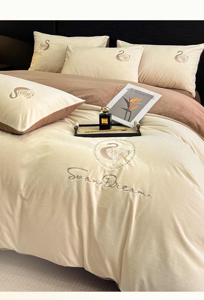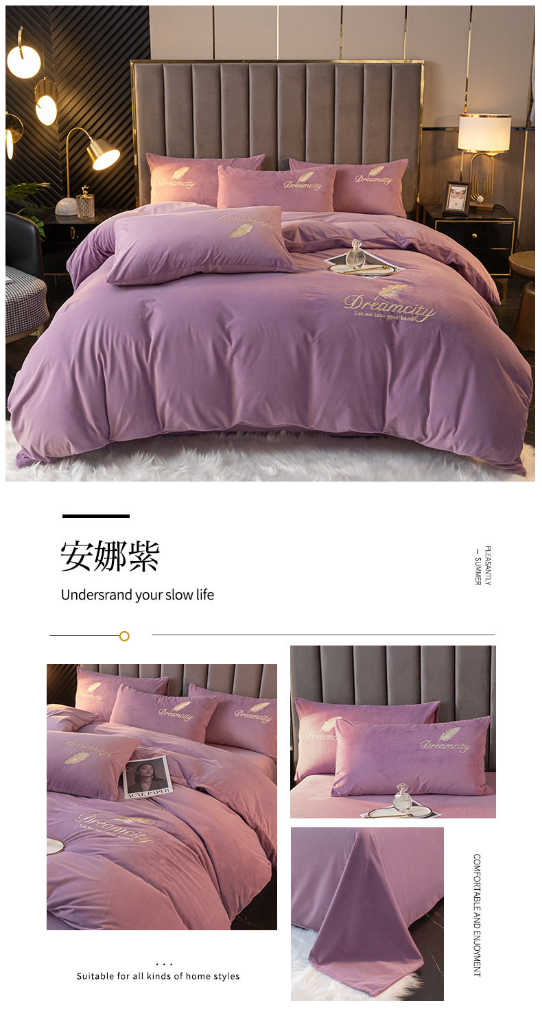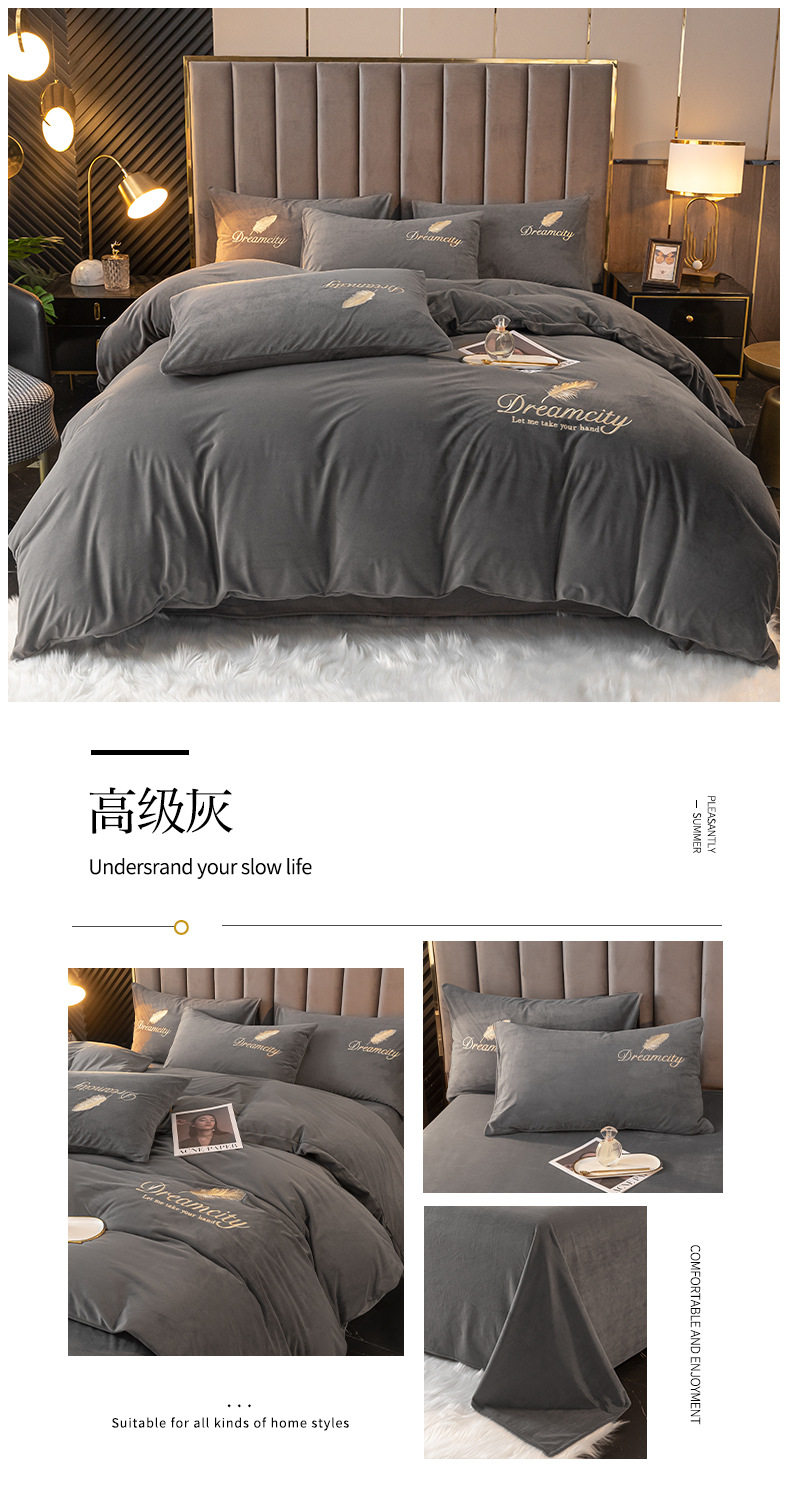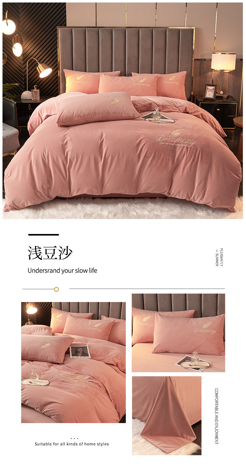 Crystal Velvet Embroider Four-Piece Autumn and Winter Coral Velvet Quilt Cover Three-Piece Double-Sided Velvet Warm Milk Velvet Four-Piece Set