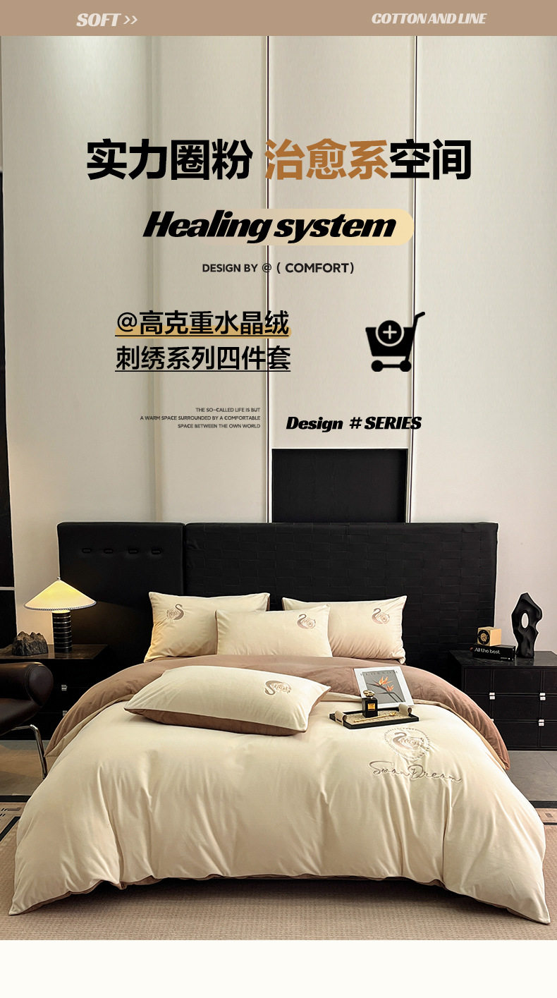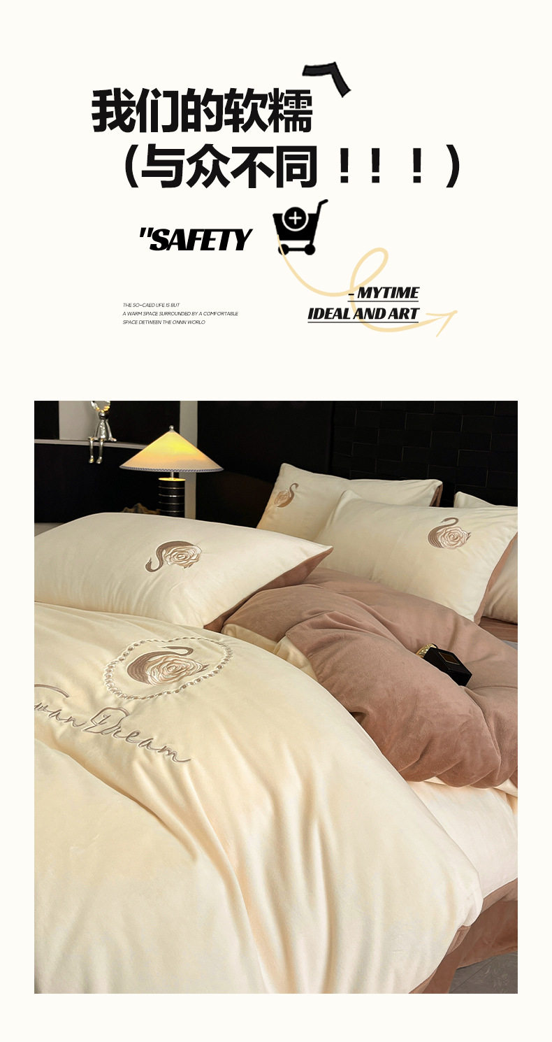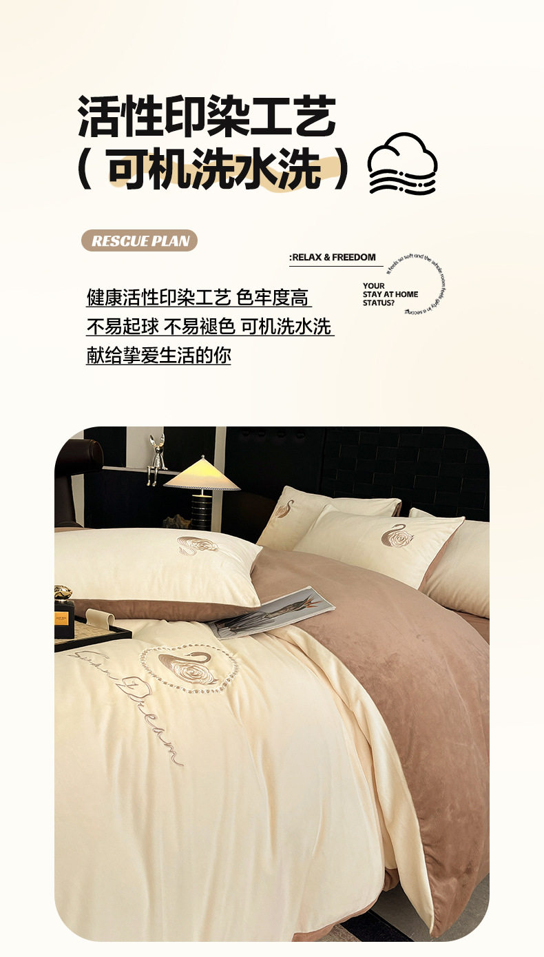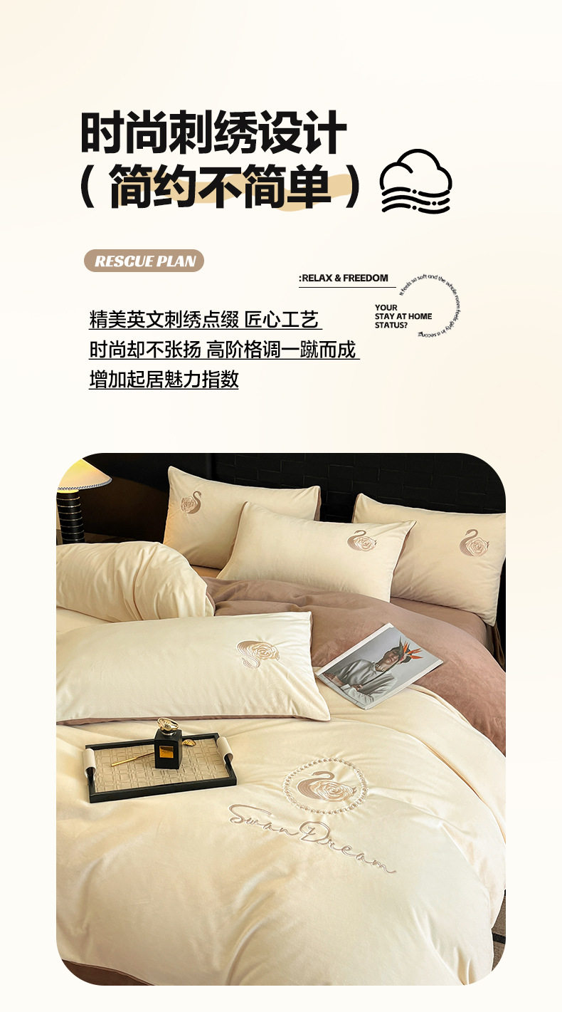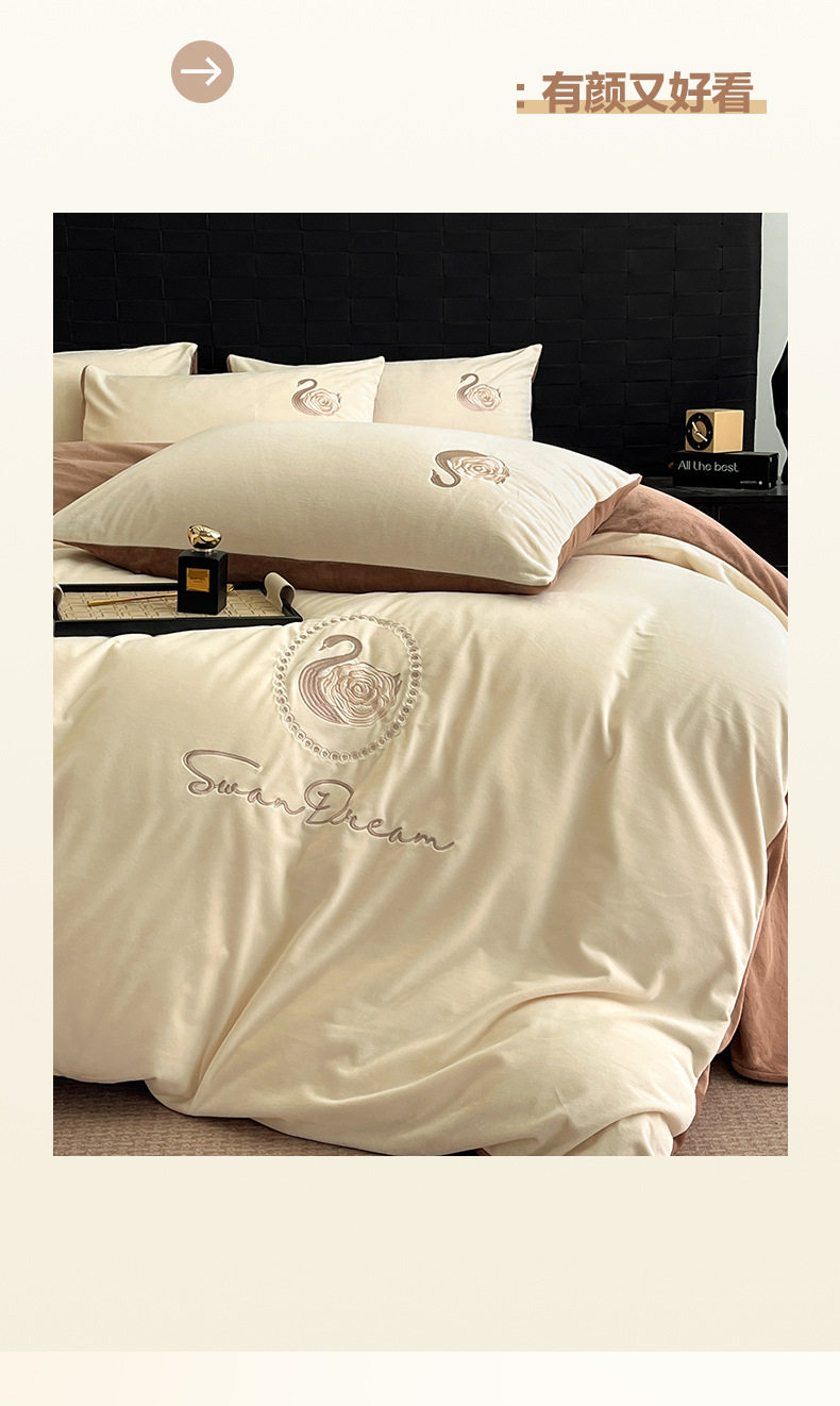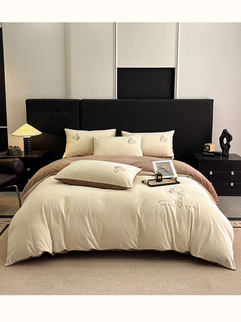 Crystal Velvet Embroider Four-Piece Autumn and Winter Coral Velvet Quilt Cover Three-Piece Double-Sided Velvet Warm Milk Velvet Four-Piece Set