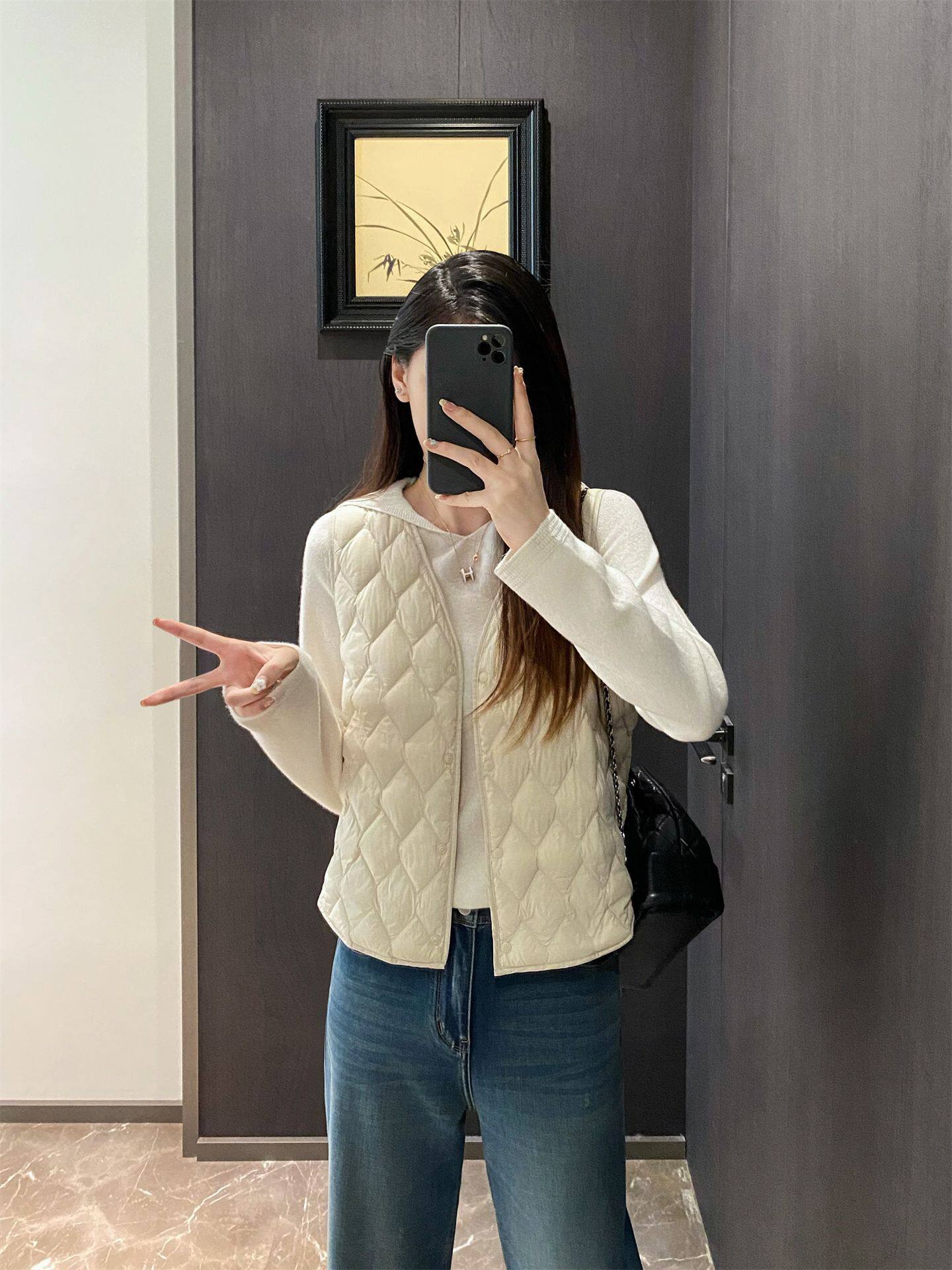 Autumn and Winter Warm V Neck Quilted down Jacket Lining Classy Inner Layering Lightweight down Vest Vest Top for Women