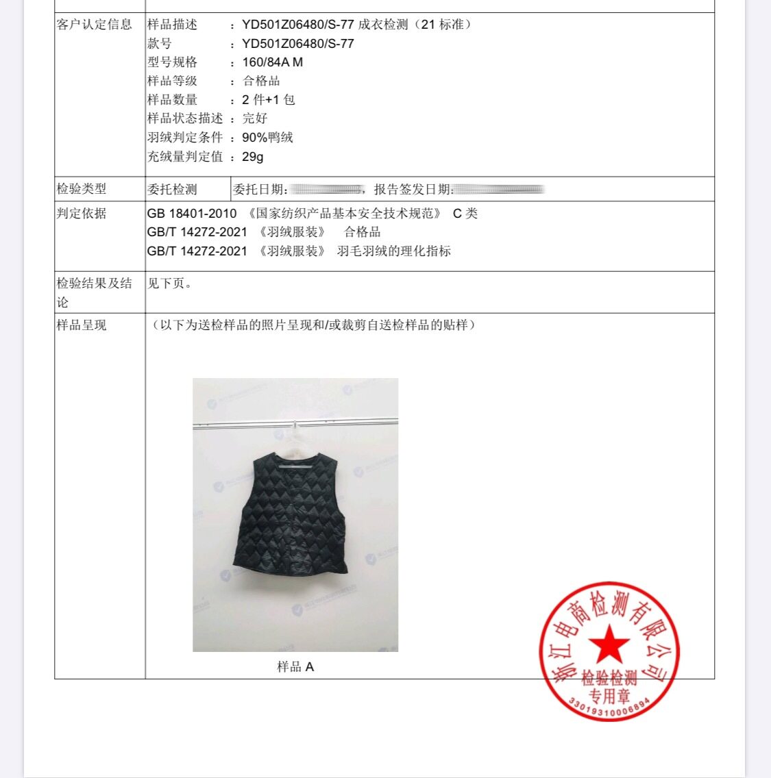 | Product category | Down vest |