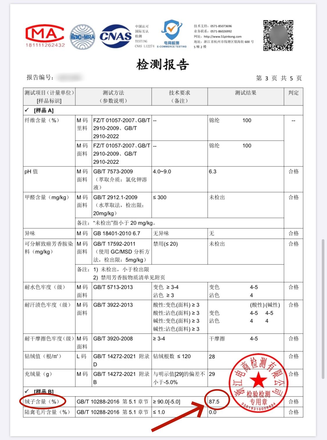 | Main fabric composition content | 95% and above |
