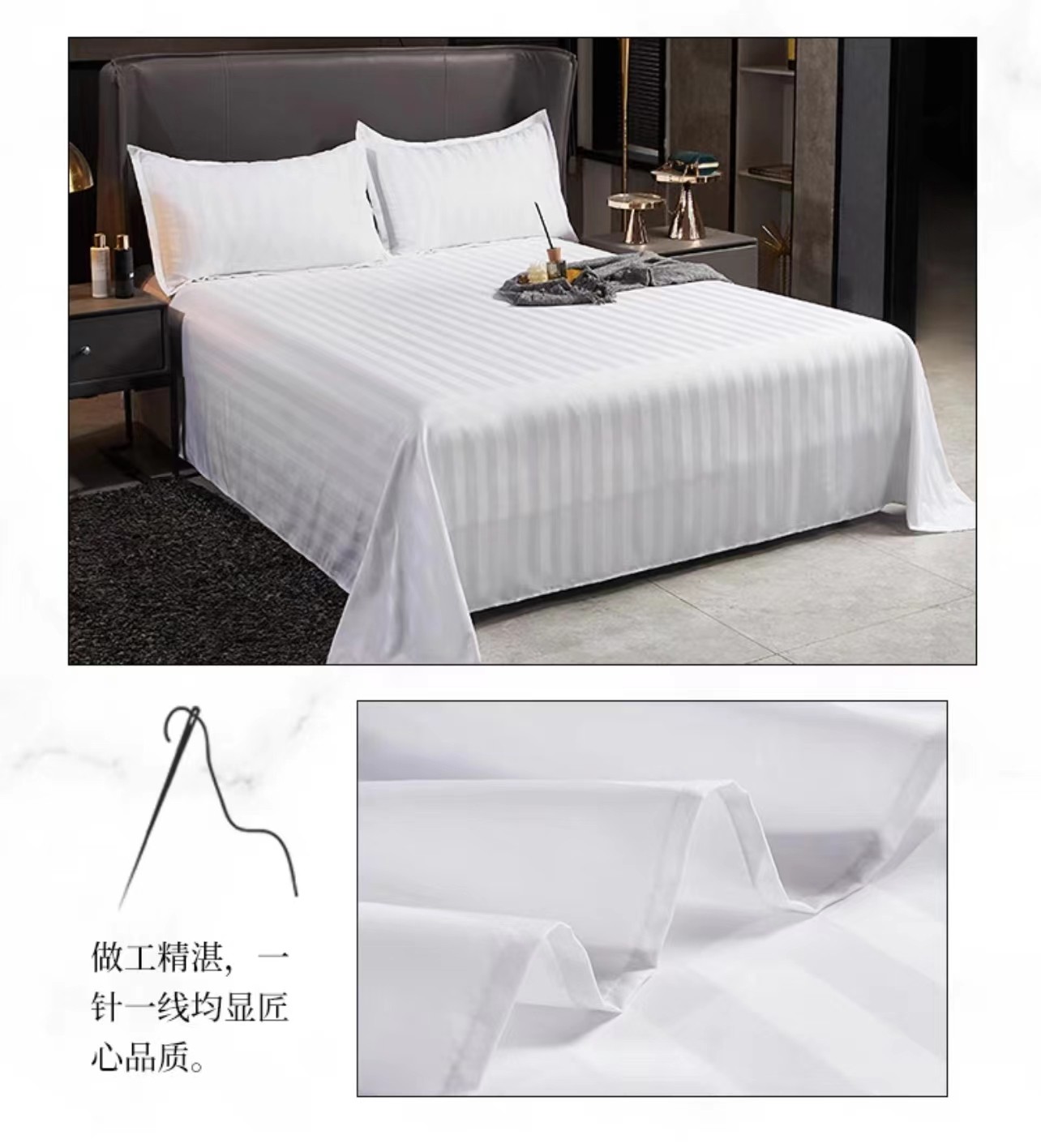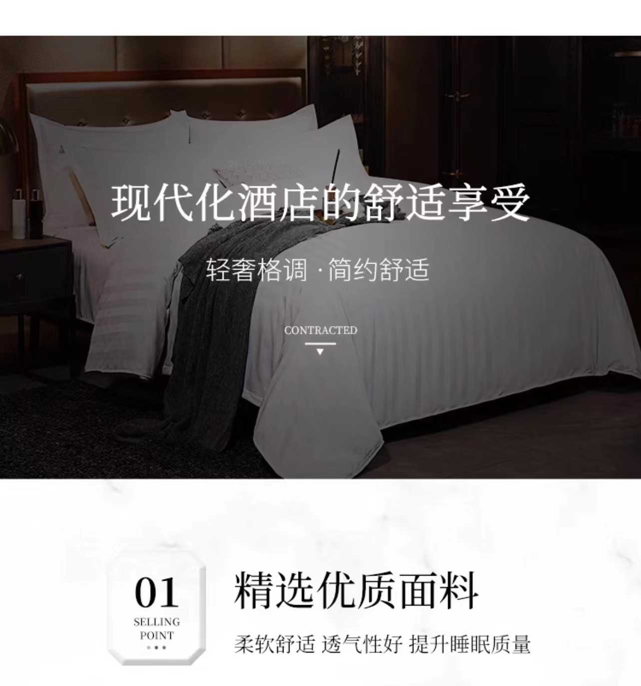 Big Sale Hotel Bed Bed Sheets Four-Piece Set Hotel Quilt Cover Linen White Quilt Cover Satin Pillowcase B&B Hospital Three-Piece Set