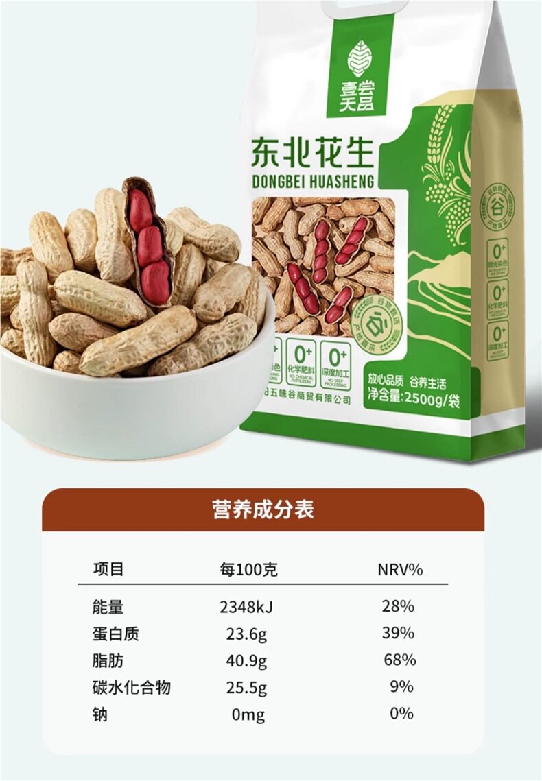 | Packaging specifications | (shelled raw) red-skinned peanuts 2.5kg [free half a catty, total 2.75kg ],(raw in shell) red peanuts 1.5kg,(raw in shell) red peanuts 1.0kg,[level 1] shelled red-skinned peanuts 2.5kg [free half a catty, total 2.75kg ],【level 1】red-skinned peanuts with shells 1.5kg,【level 1】red-skinned peanuts with shells 1.0kg,(fried in a large pot) red-skinned peanuts 2.5kg [free half a catty, total 2.75kg ],(fried in a large pot) red-skinned peanuts 1.5kg,(fried in a large pot) red-skinned peanuts 1.0kg,[level 1] big pot fried red-skinned peanuts 2.5kg [free half a catty, total 2.75kg ],[level 1] stir-fried red-skinned peanuts in a large pot 1.5kg,[level 1] stir-fried red-skinned peanuts in a large pot 1.0kg,(hand-peeled by farmers) red-skinned peanuts 2.5kg,(hand-peeled by farmers) red-skinned peanuts 1.5kg,(hand-peeled by farmers) red-skinned peanuts 1.0kg,[level 1] longgu no. 2 red skin peanuts 2.5kg,[level 1] longgu no. 2 red skin peanuts 1.5kg,[level 1] longgu no. 2 red skin peanuts 1.0kg,(low oil and sweet) red-skinned peanuts 2.5kg,(low oil and sweet) red-skinned peanuts 1.5kg,(low oil and sweet) red-skinned peanuts 1.0kg,Shelled red peanuts 0.5kg |