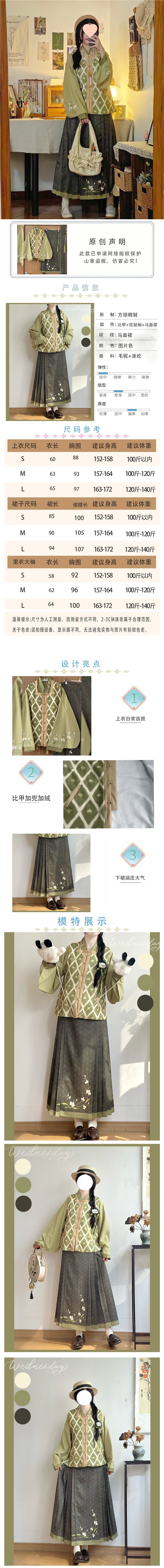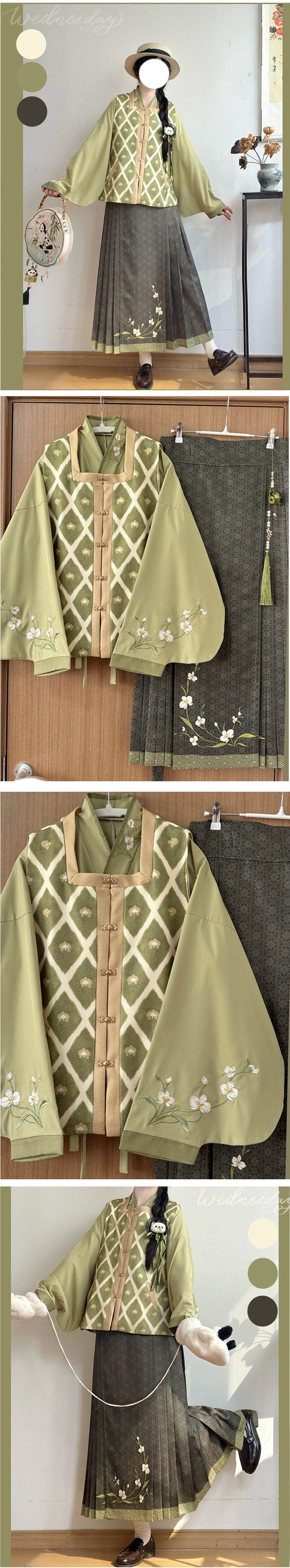 Original by Zhiyanji [Nuonuo Milk Green] Ming-Style Square Collar Baju Ming-Style Thickened Velvet Hanfu Women's Mamian Skirt for Autumn and Winter