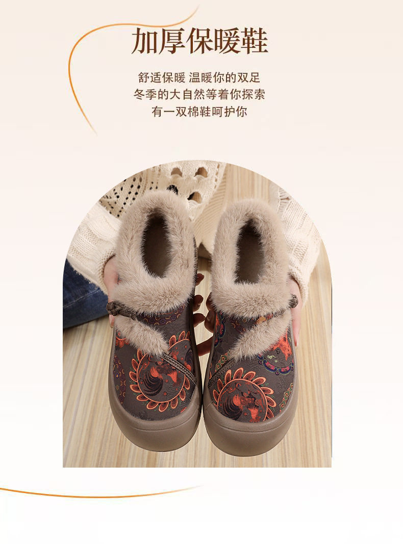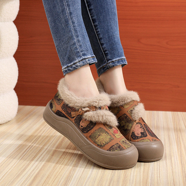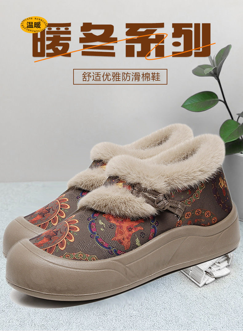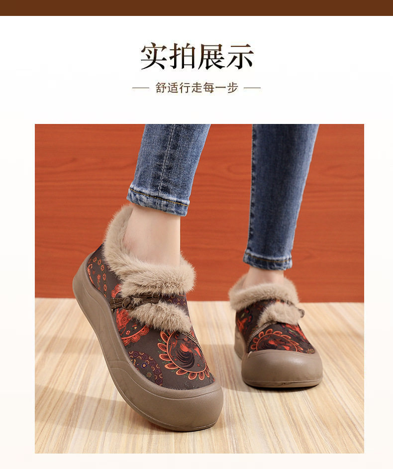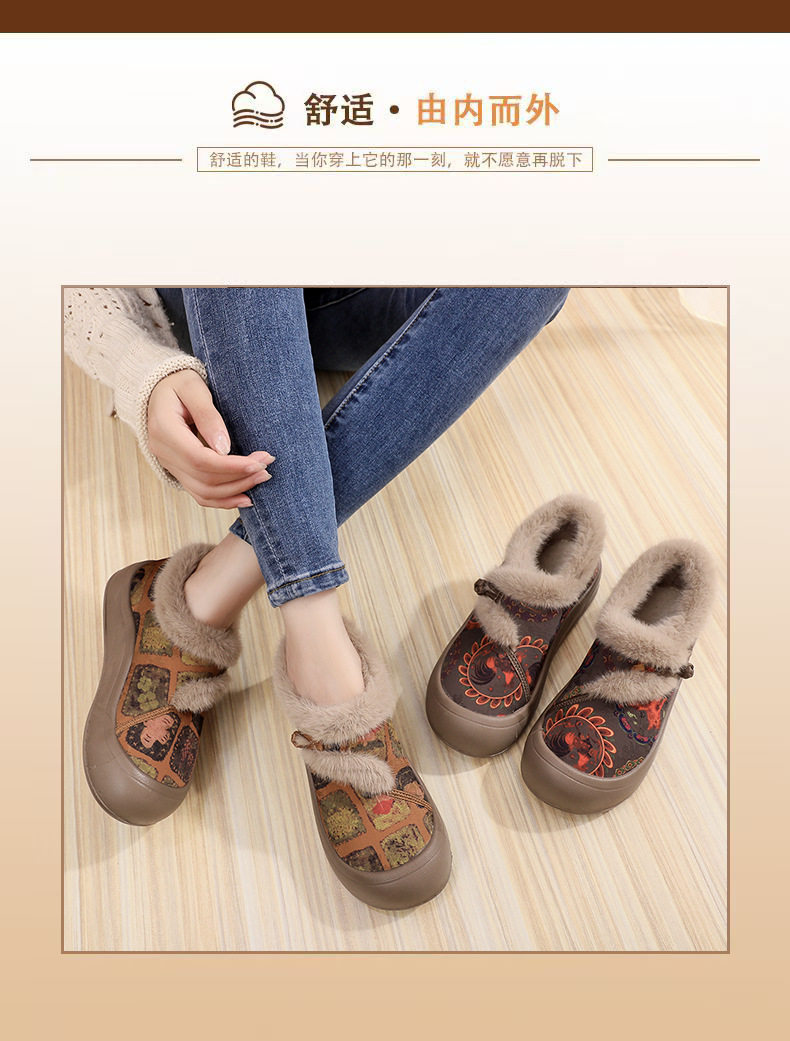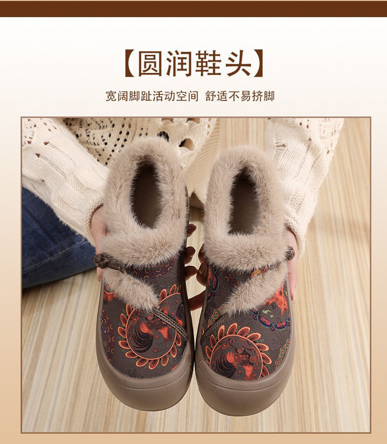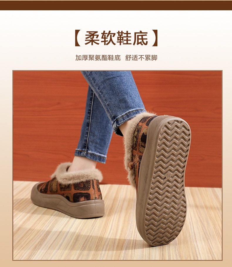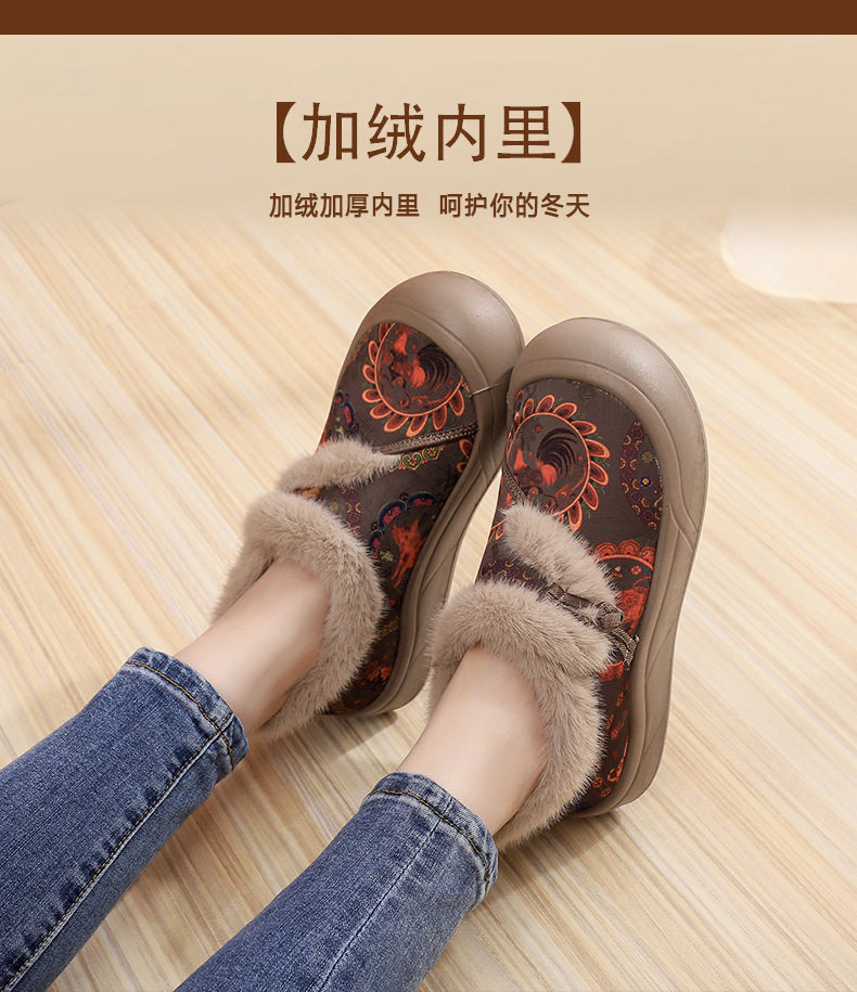 2025 Winter Old Beijing Cloth Shoes Non-Slip Soft Sole Furry Shoes Plaid Warm Plaid New Chinese Han Dynasty Women's Cotton Shoes