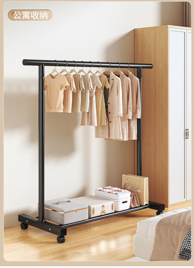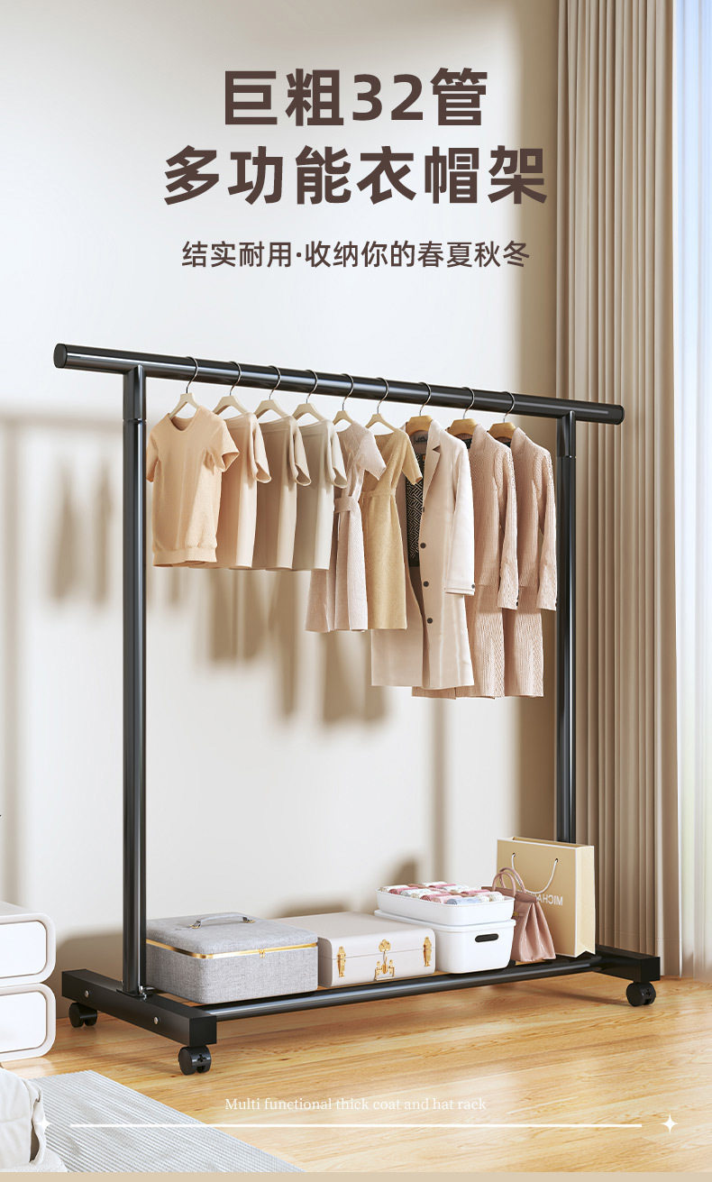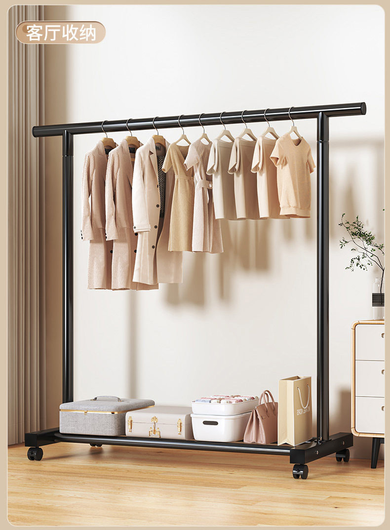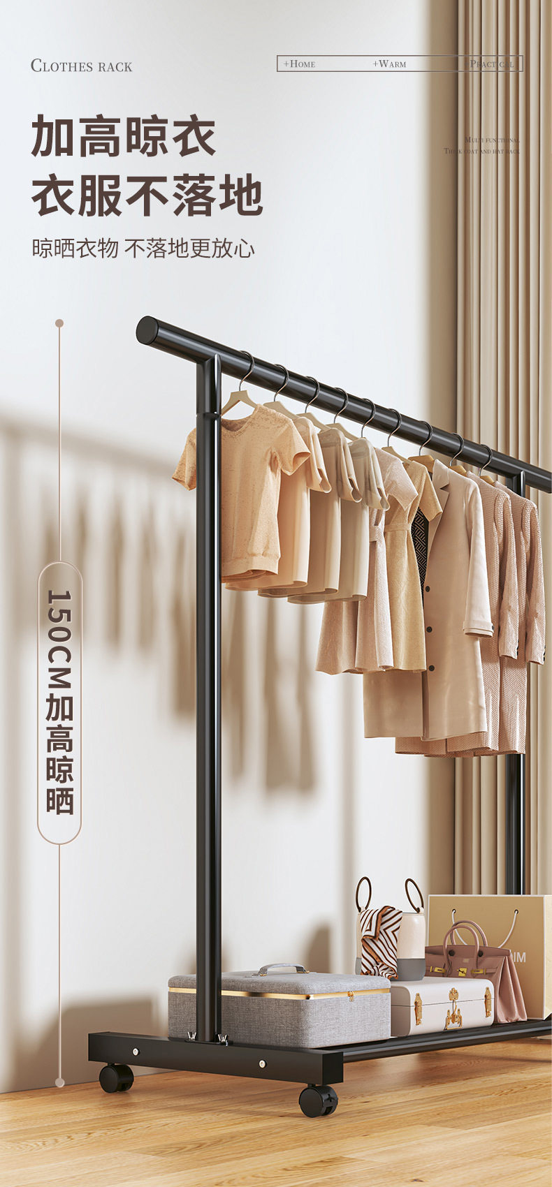 Simple Floor-Standing Clothes Drying Rack for Home Bedroom, Movable Clothes Hanger, Indoor Clothes Rod, Dormitory Single Rod Thickened Rack