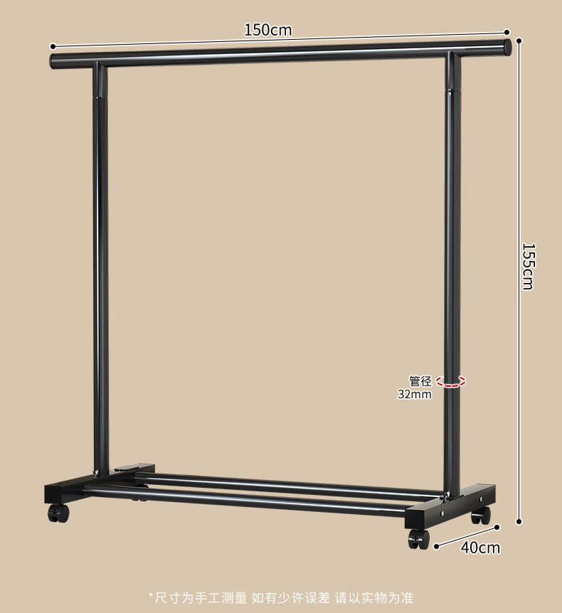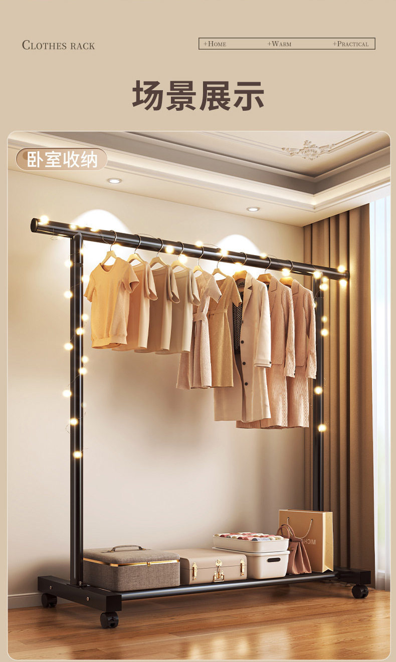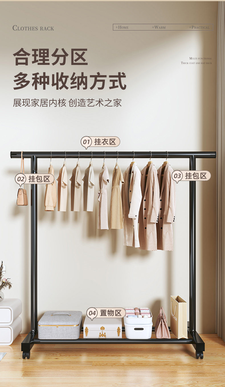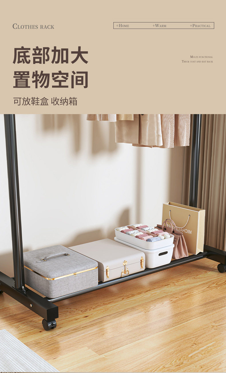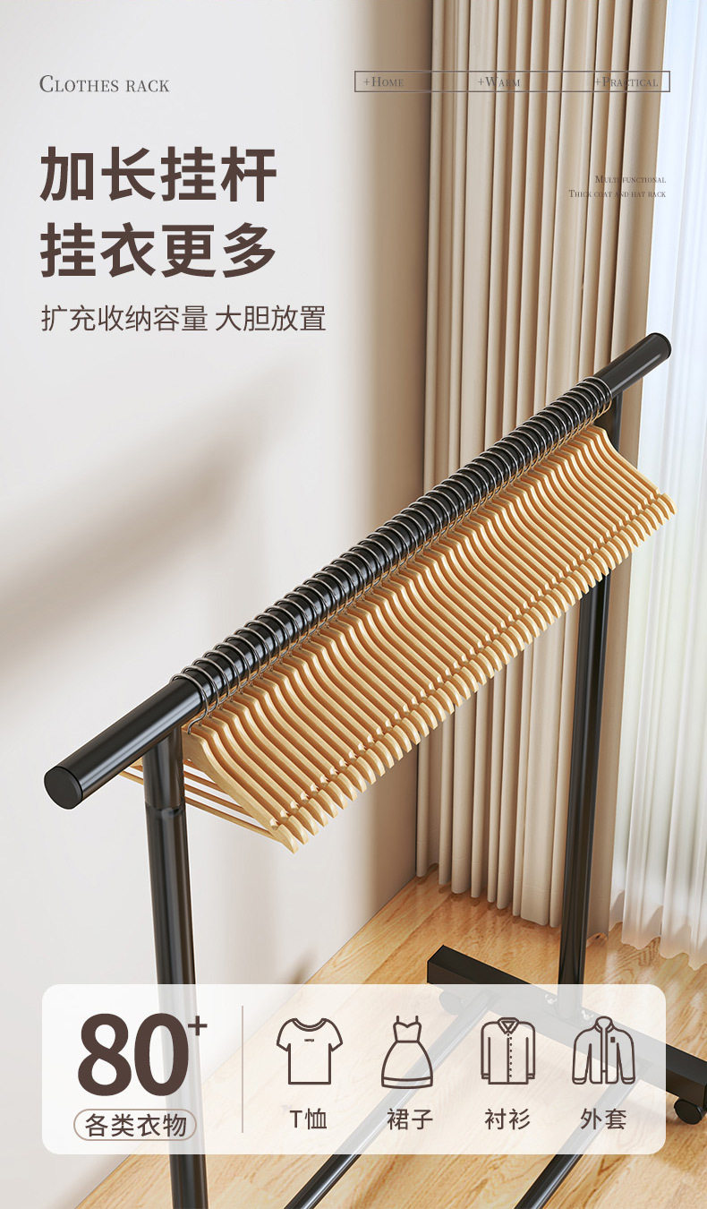 Simple Floor-Standing Clothes Drying Rack for Home Bedroom, Movable Clothes Hanger, Indoor Clothes Rod, Dormitory Single Rod Thickened Rack