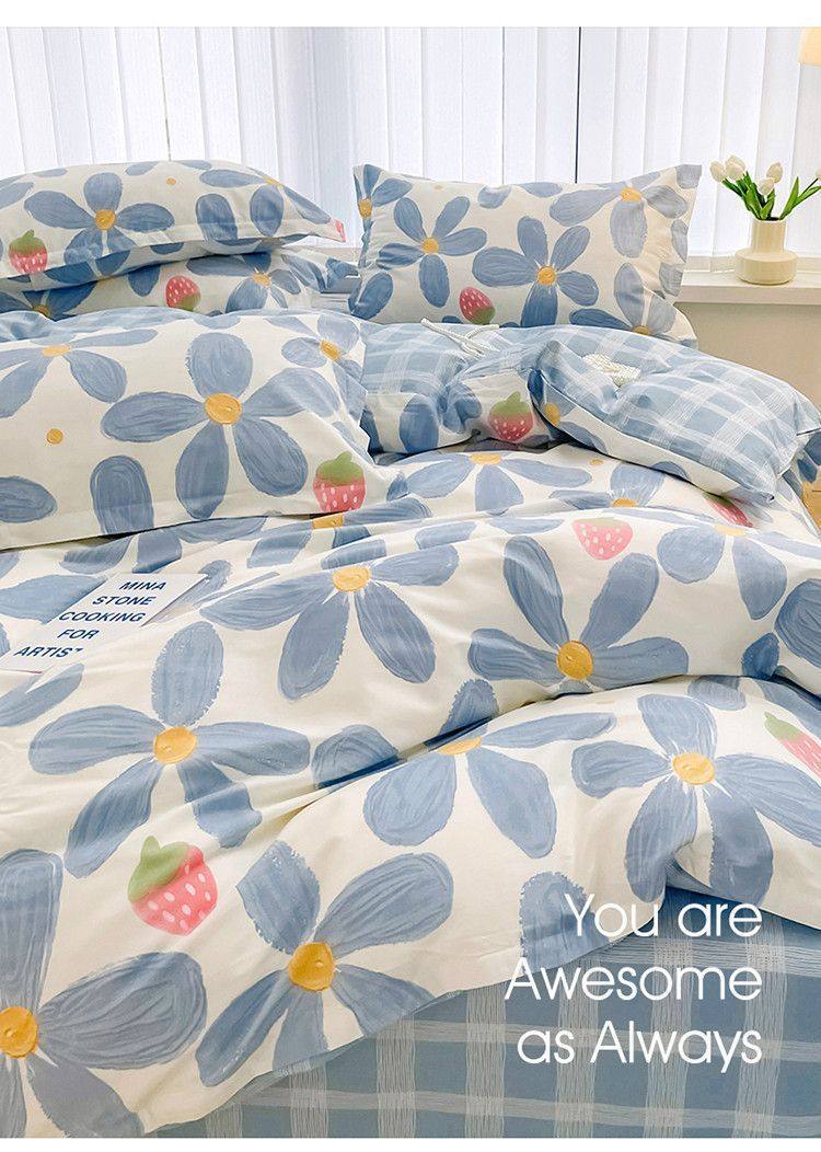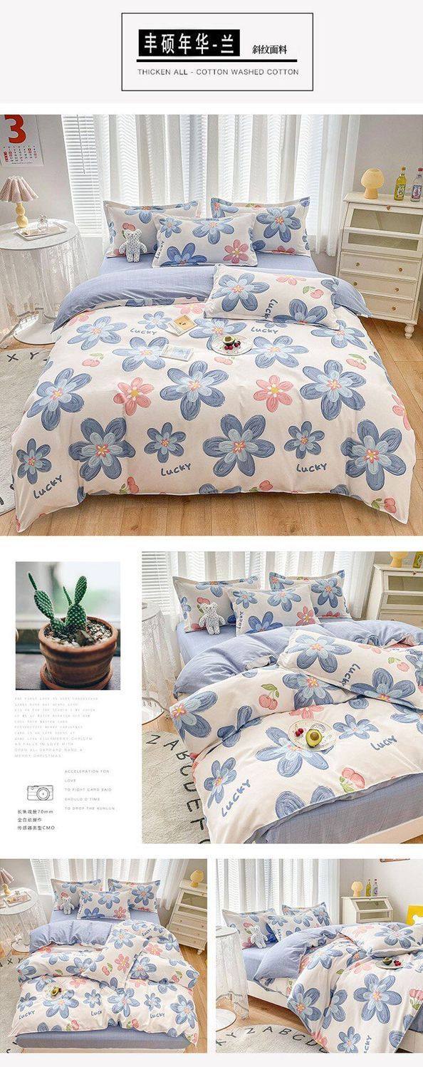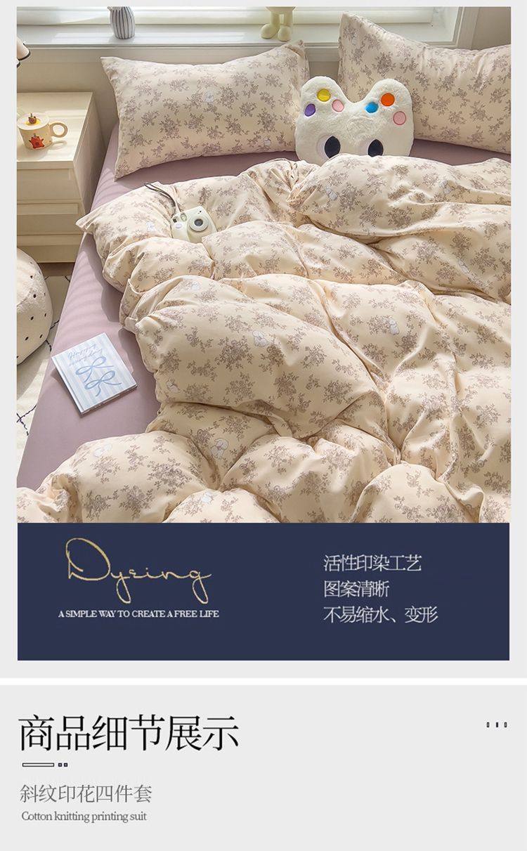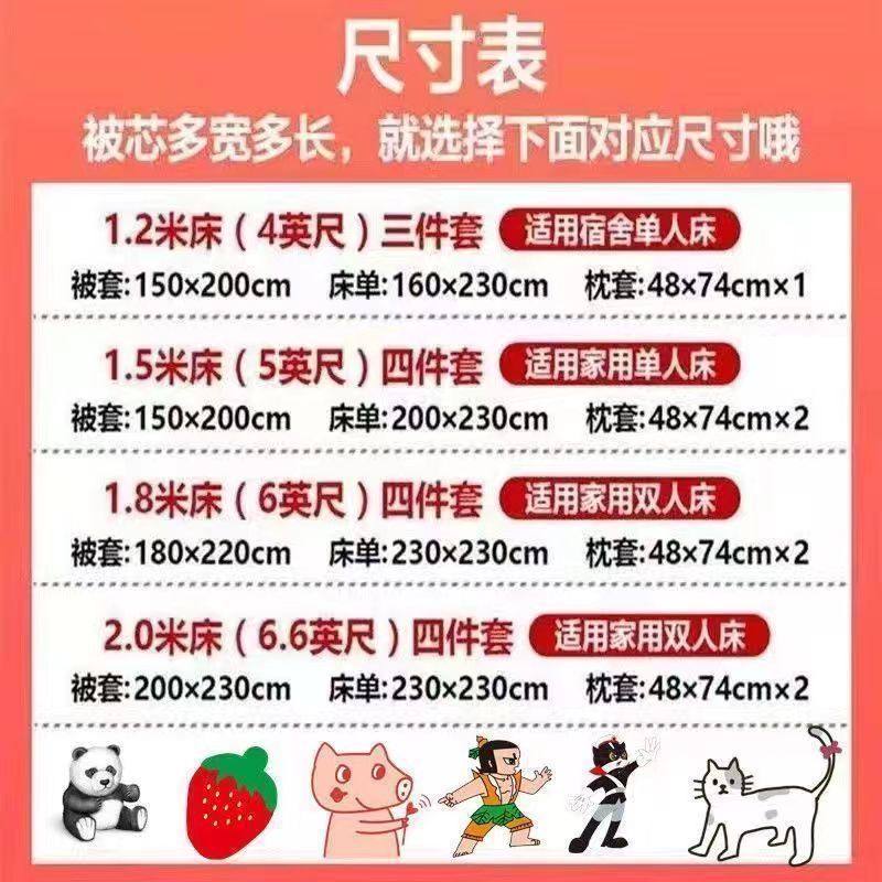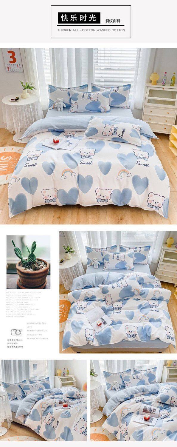Class a Thickeneded Pure Skin-Friendly Cotton Bed Bed Sheetss Four-Piece Set 4-Piece Twill Cartoon Quilt Cover Dormitory Three-Piece Bedding Set