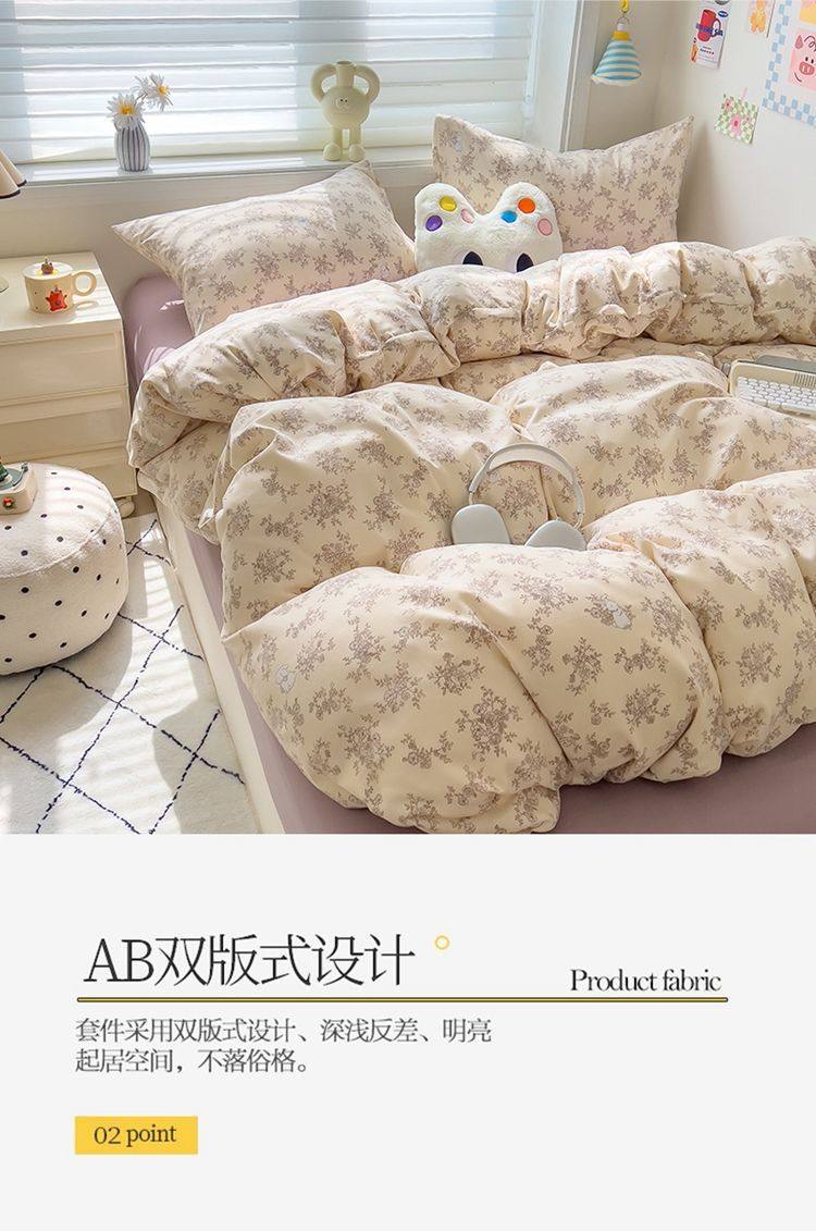 | Size specifications | 1.2m three-piece set-quilt cover 150x200,1.5m four-piece set-quilt cover 150x200,1.8m four-piece set-quilt cover 180x220,2.0m four-piece set-quilt cover 200x230 |