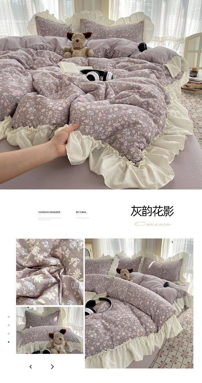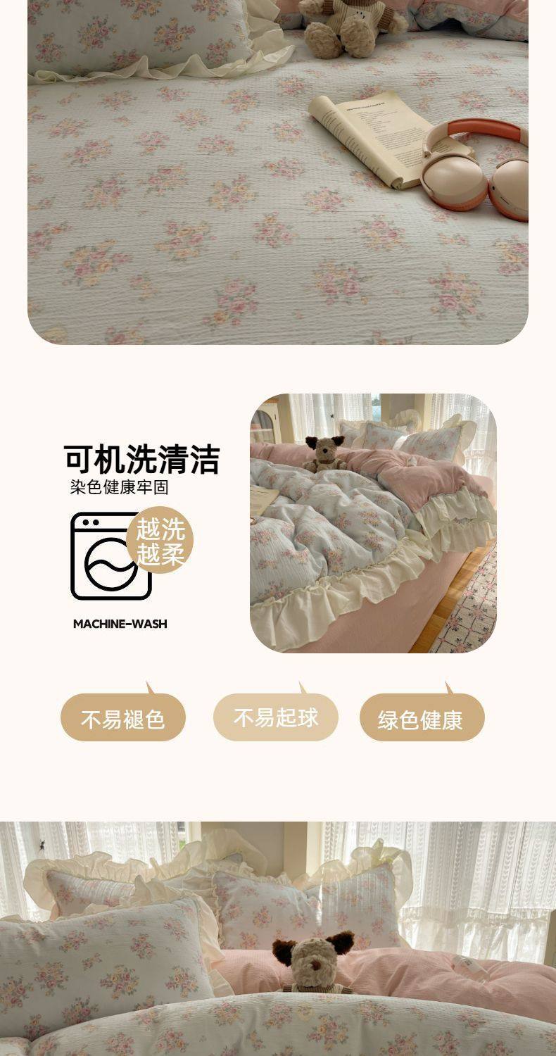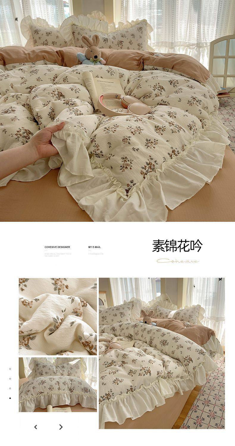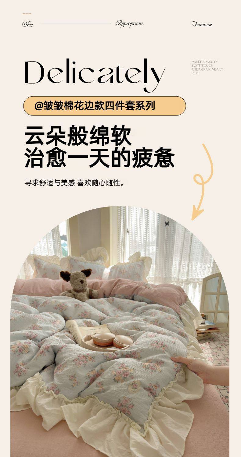 2025 New Kapok Pure Cotton Cloud-Like Double-Layer Yarn Wrinkled Cotton Edge Four-Piece Set Three-Piece Set