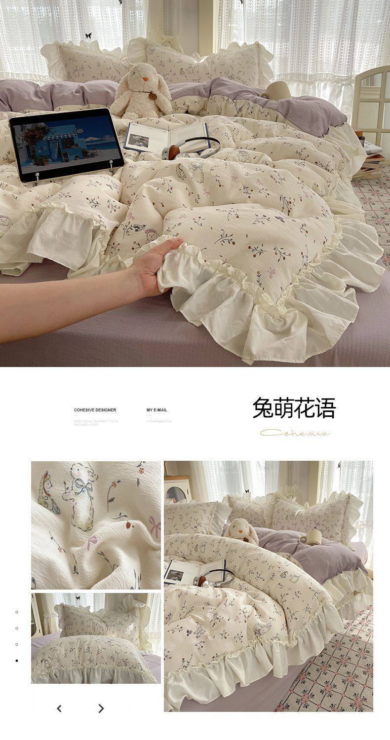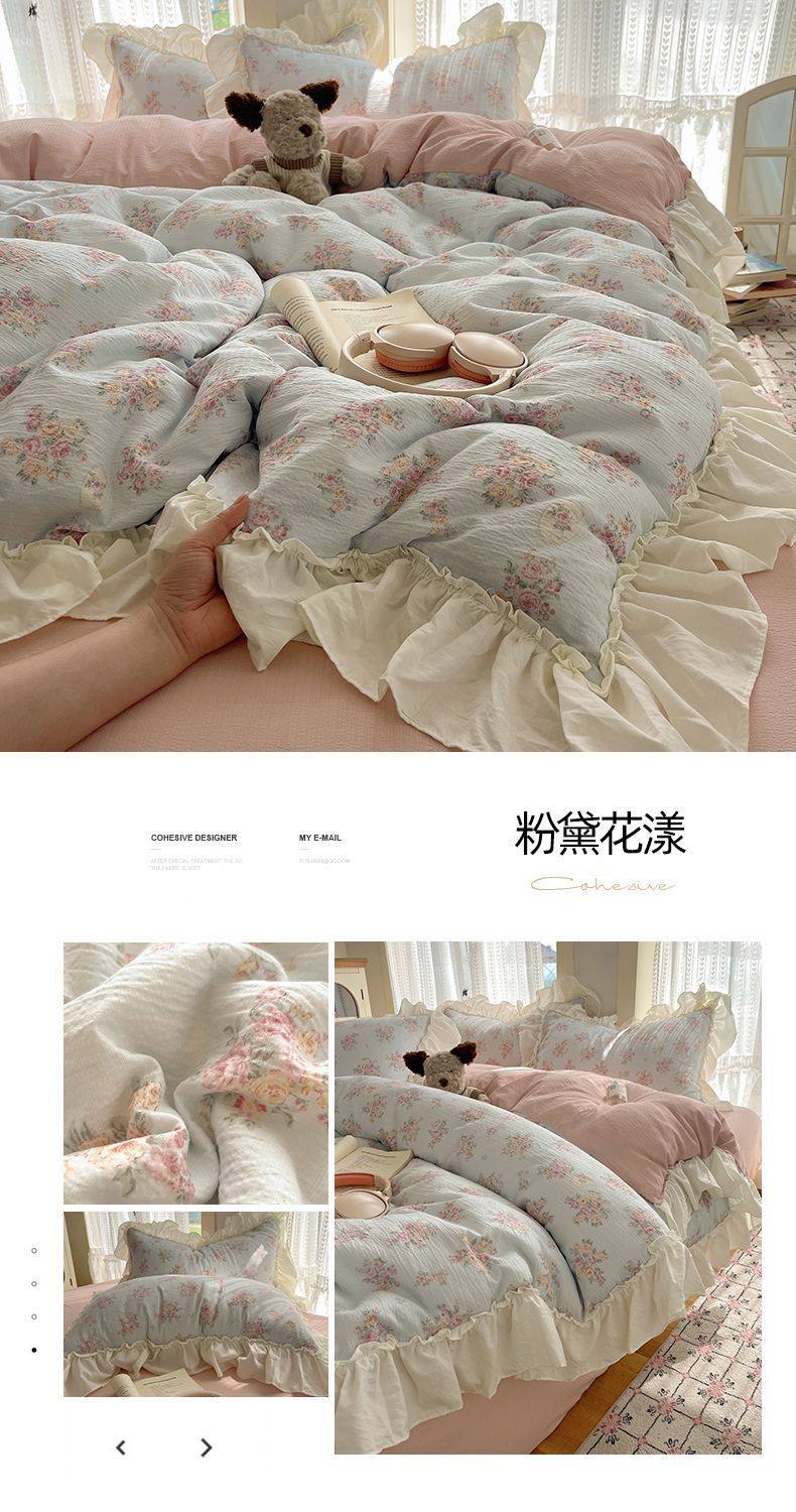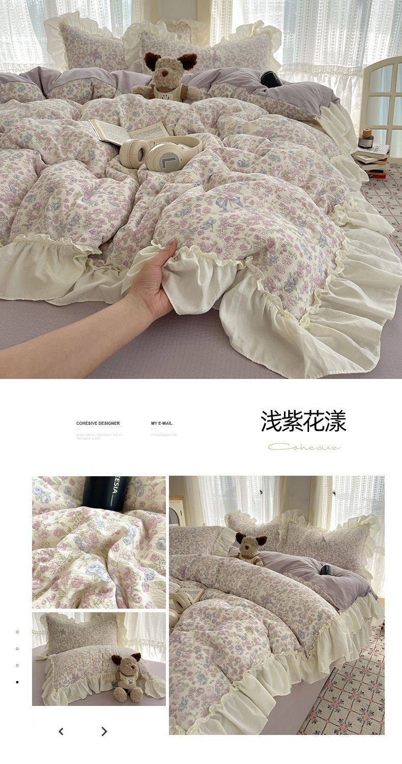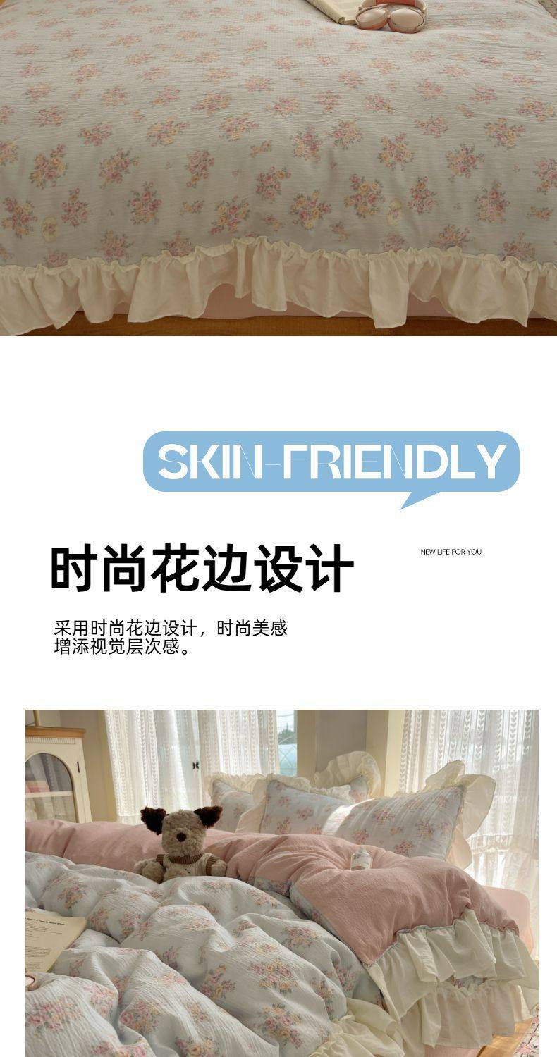2025 New Kapok Pure Cotton Cloud-Like Double-Layer Yarn Wrinkled Cotton Edge Four-Piece Set Three-Piece Set
