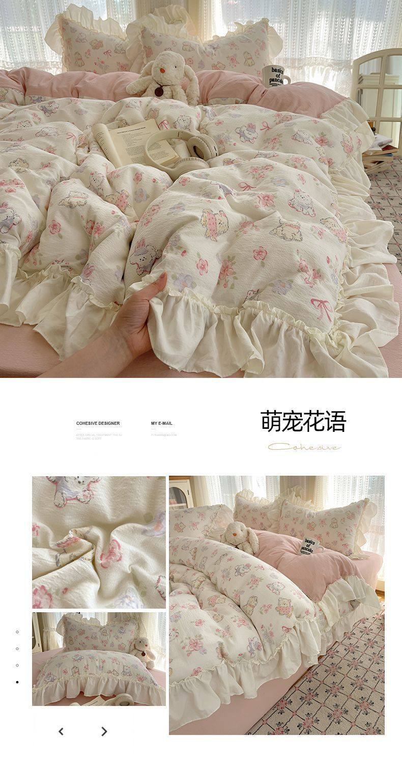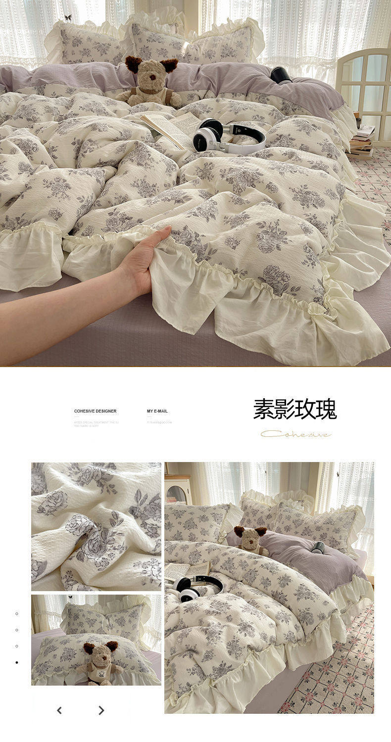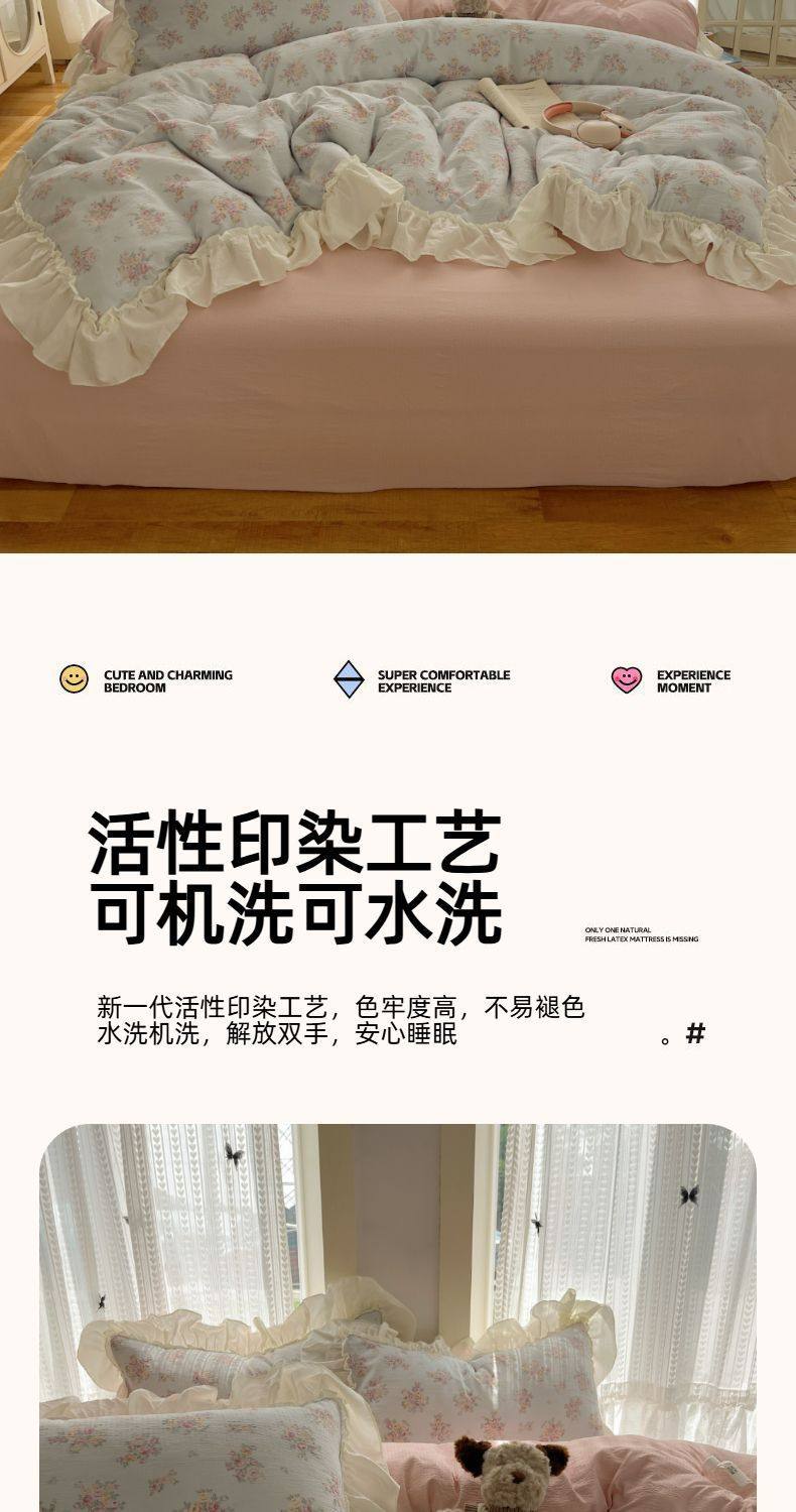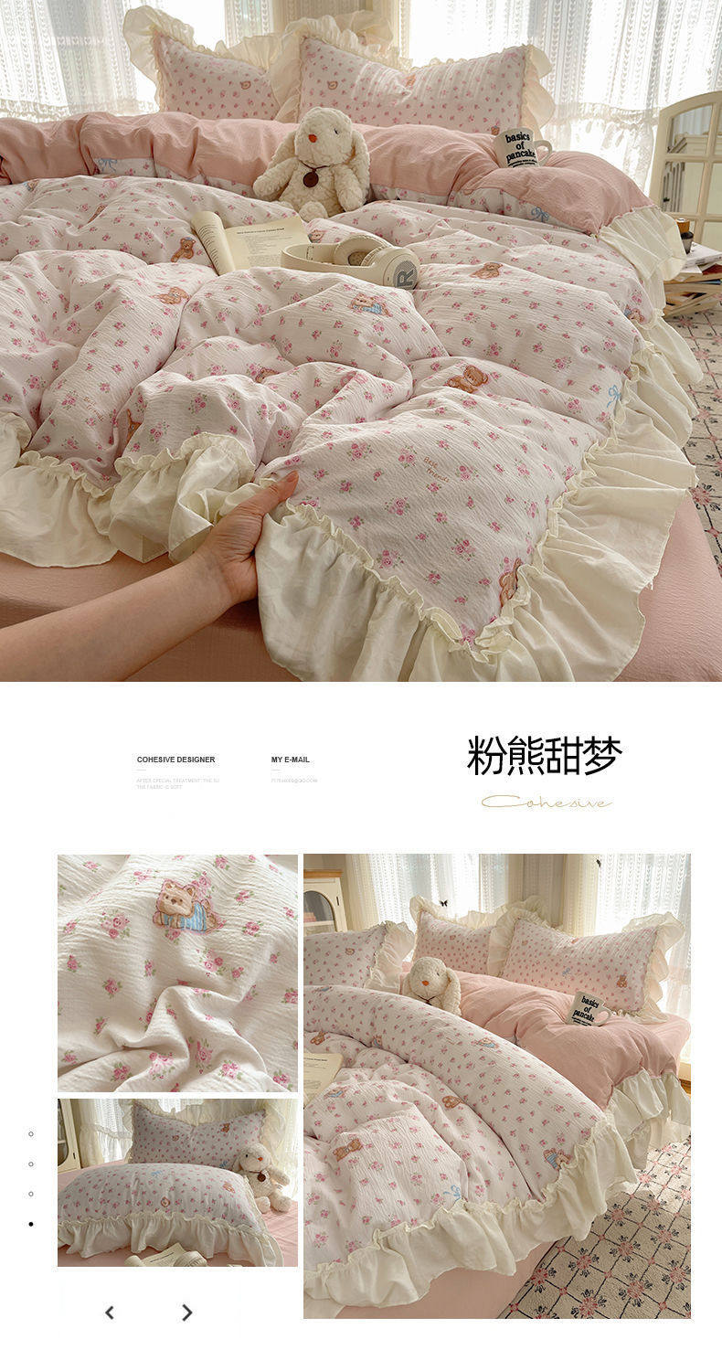 2025 New Kapok Pure Cotton Cloud-Like Double-Layer Yarn Wrinkled Cotton Edge Four-Piece Set Three-Piece Set