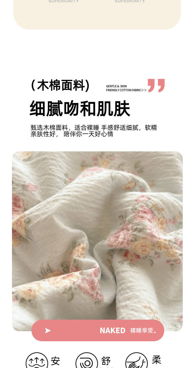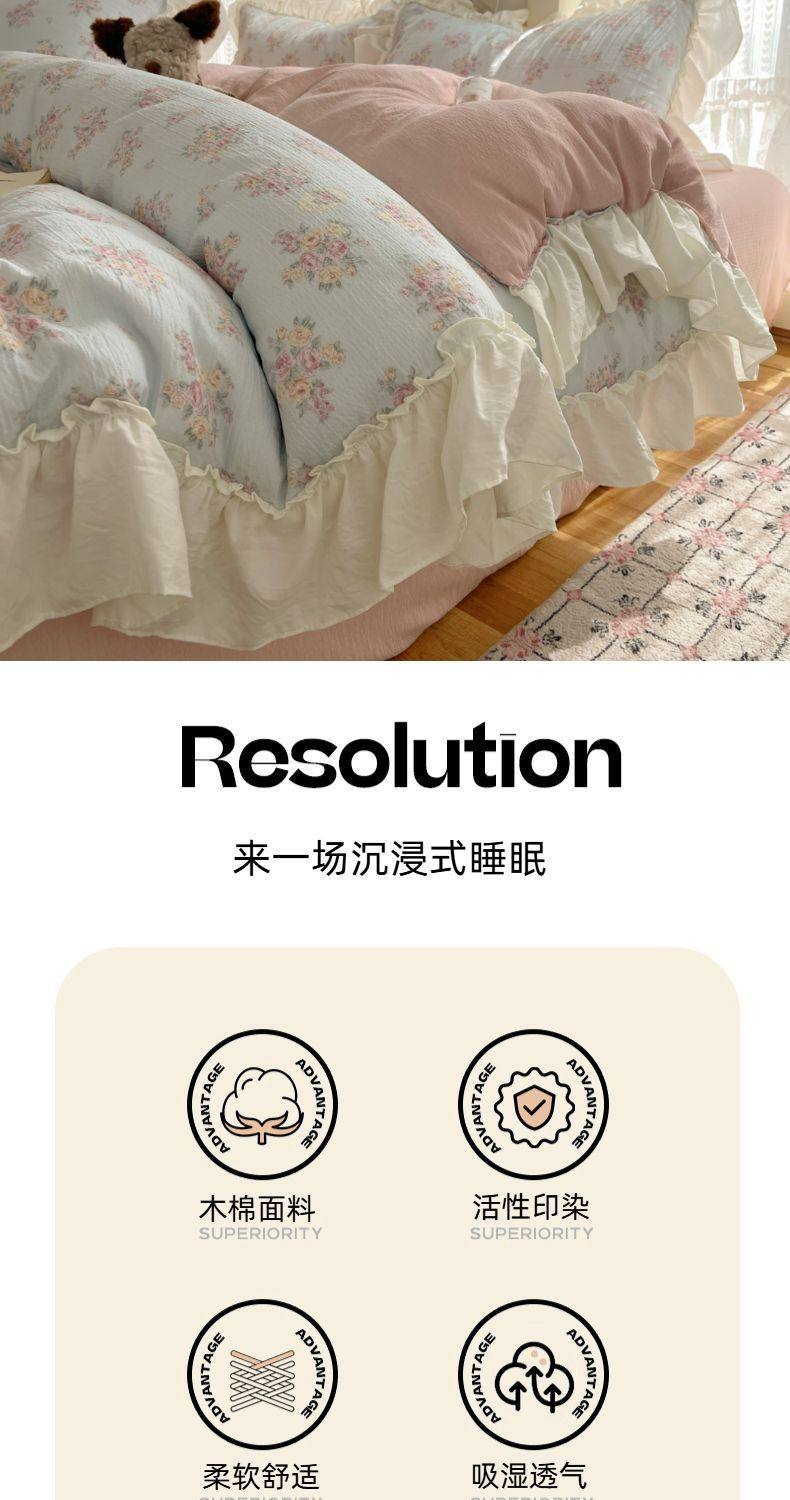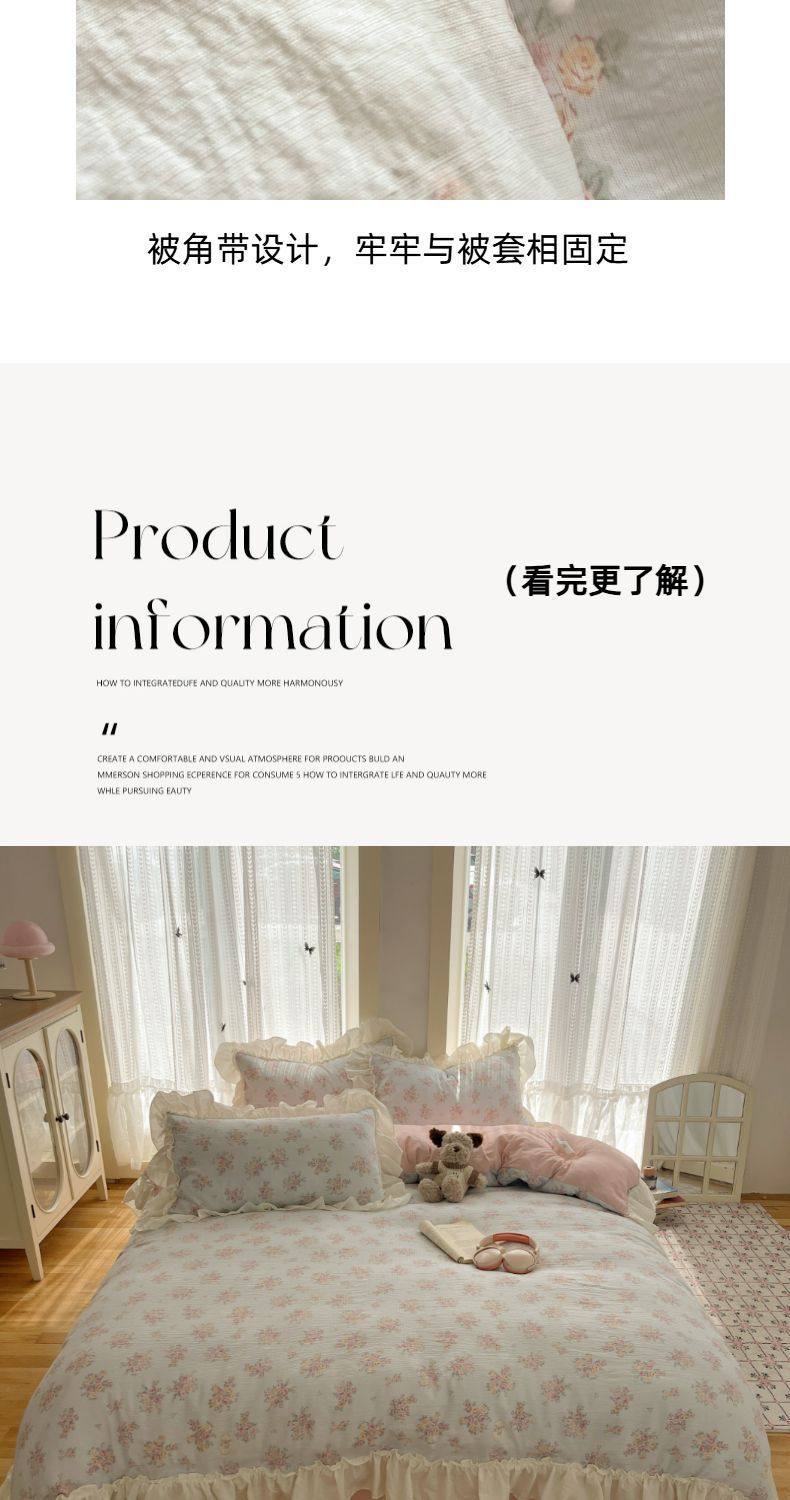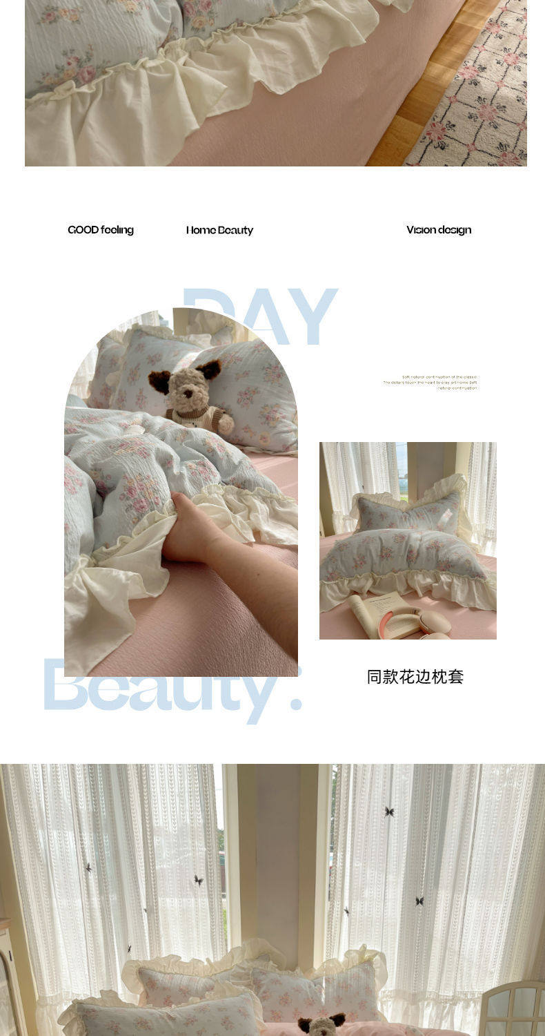 2025 New Kapok Pure Cotton Cloud-Like Double-Layer Yarn Wrinkled Cotton Edge Four-Piece Set Three-Piece Set