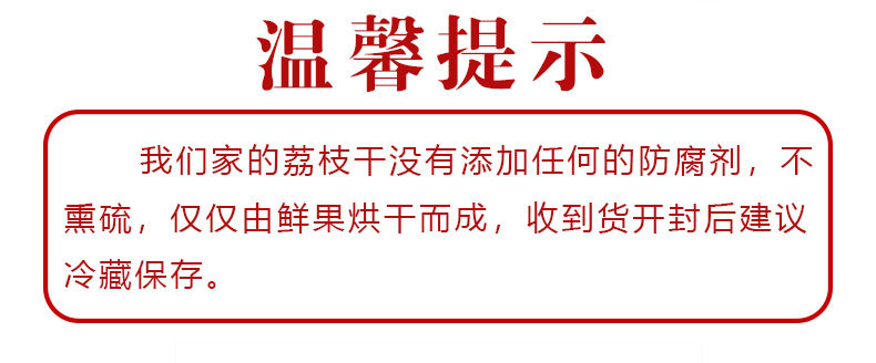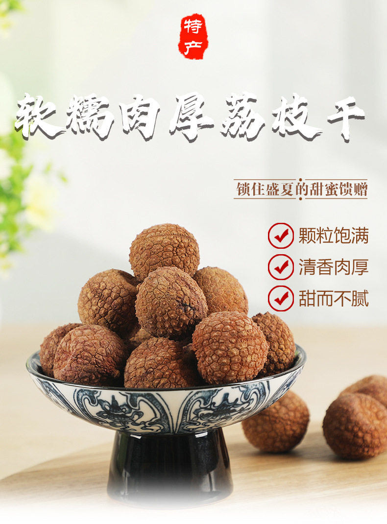 | Packaging specifications | Soft glutinous dried lychees (200g bag),Soft glutinous dried lychees (500g bag) 1 pack,Soft glutinous dried lychees (500g bag) 2 packs,Soft glutinous dried lychees (500g bag) 3 packs,Soft glutinous dried lychees (500g bag) 4 packs |