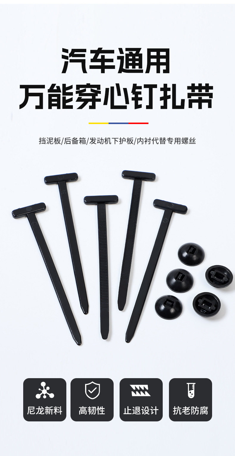 Three-Dimensional Head-Through Nail Double-Sided Caliper Nylon Cable Tie Through-Core Nail Car Electric Vehicle Cable Tie Bundling Factory Wholesale