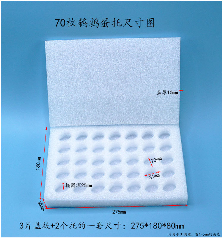 | Color | 70 pieces quail egg tray (39 sets/pack without carton),35 pieces quail egg tray (72 sets/pack without carton) |