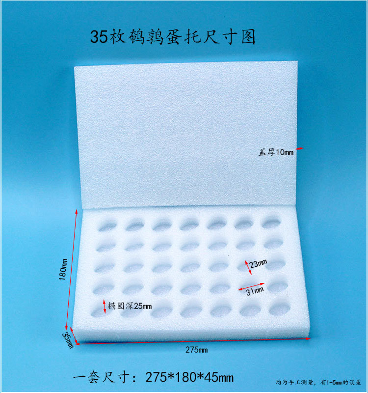 | Specifications and models | ↬ ◓ ↬ 35 pieces of quail egg trays (72 sets/pack without carton); 45 ↫ ◓ ↫,↬ ◓ ↬ 70 pieces of quail egg trays (39 sets/pack without carton); 45 ↫ ◓ ↫ |