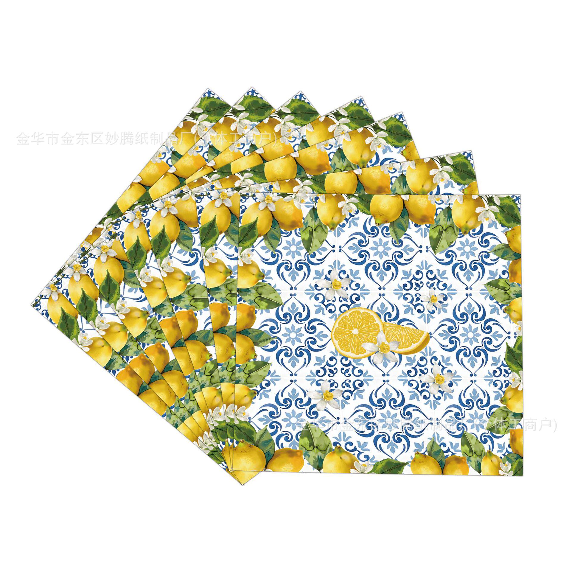 Retro Blue and White Porcelain Lemon Fruit Party Family Dinner Party Tableware Paper Cup Tissue Disposable Paper Plate Set
