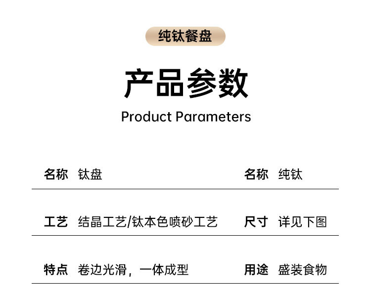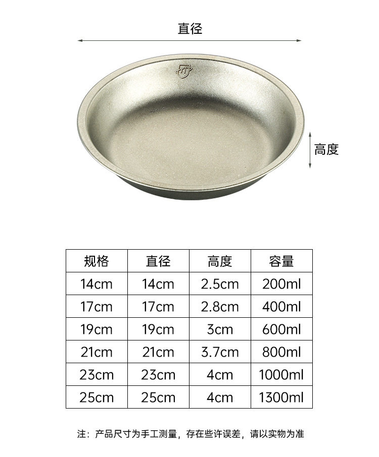 | Color | 14cm titanium plate-crystallized [pure titanium 99%],17cm titanium plate-crystallized [pure titanium 99%],19cm titanium plate-crystallized [pure titanium 99%],21cm titanium plate-crystallized [pure titanium 99%],23cm titanium plate crystallization [pure titanium 99%],25cm titanium plate-crystallized [pure titanium 99%],14cm titanium plate-sandblasted [pure titanium 99%],17cm titanium plate-sandblasted [pure titanium 99%],19cm titanium plate-sandblasting [pure titanium 99%],21cm titanium plate-sandblasted [pure titanium 99%],23cm titanium plate-sandblasting [pure titanium 99%],25cm titanium plate-sandblasted [pure titanium 99%] |