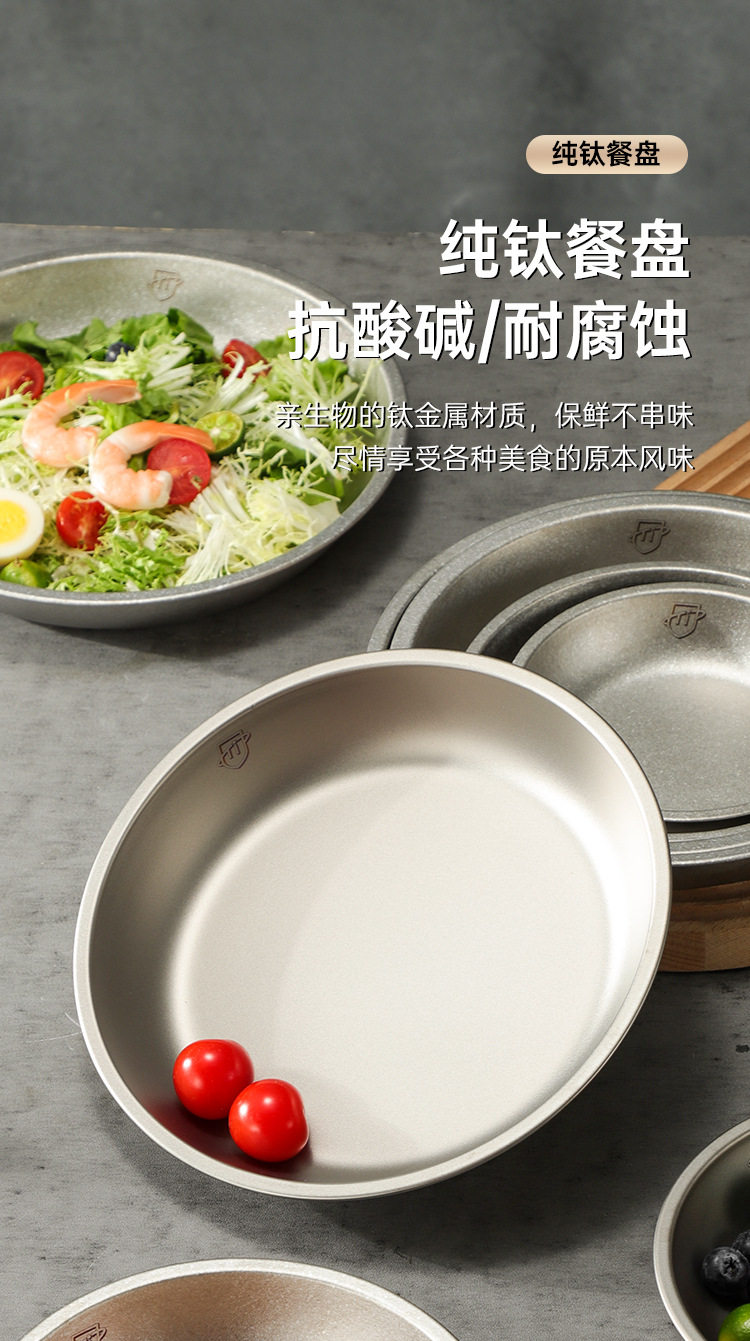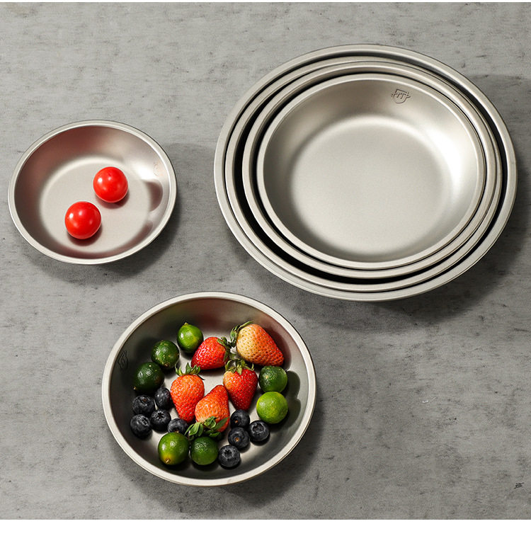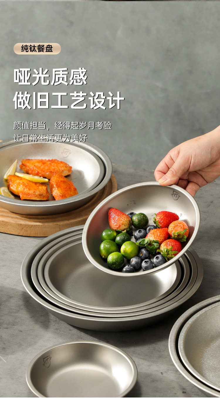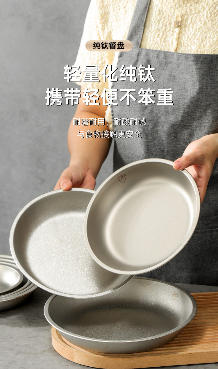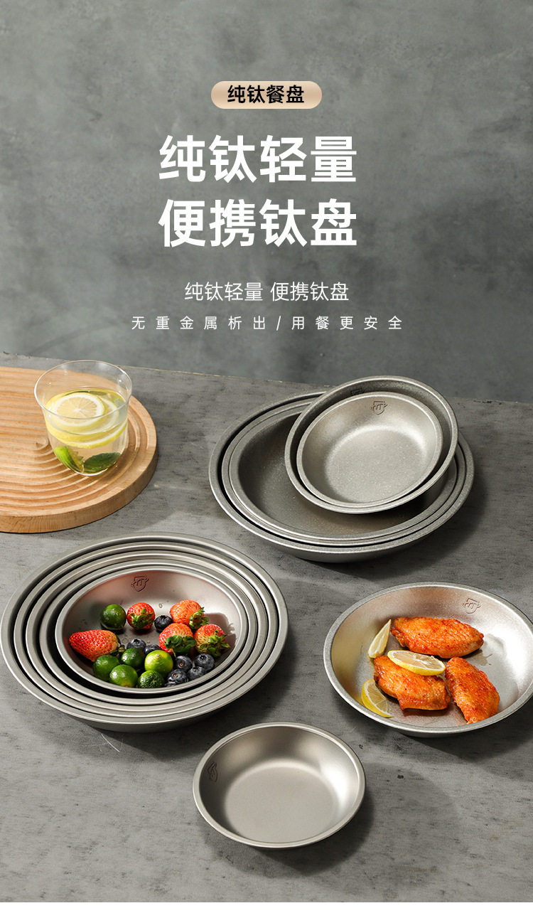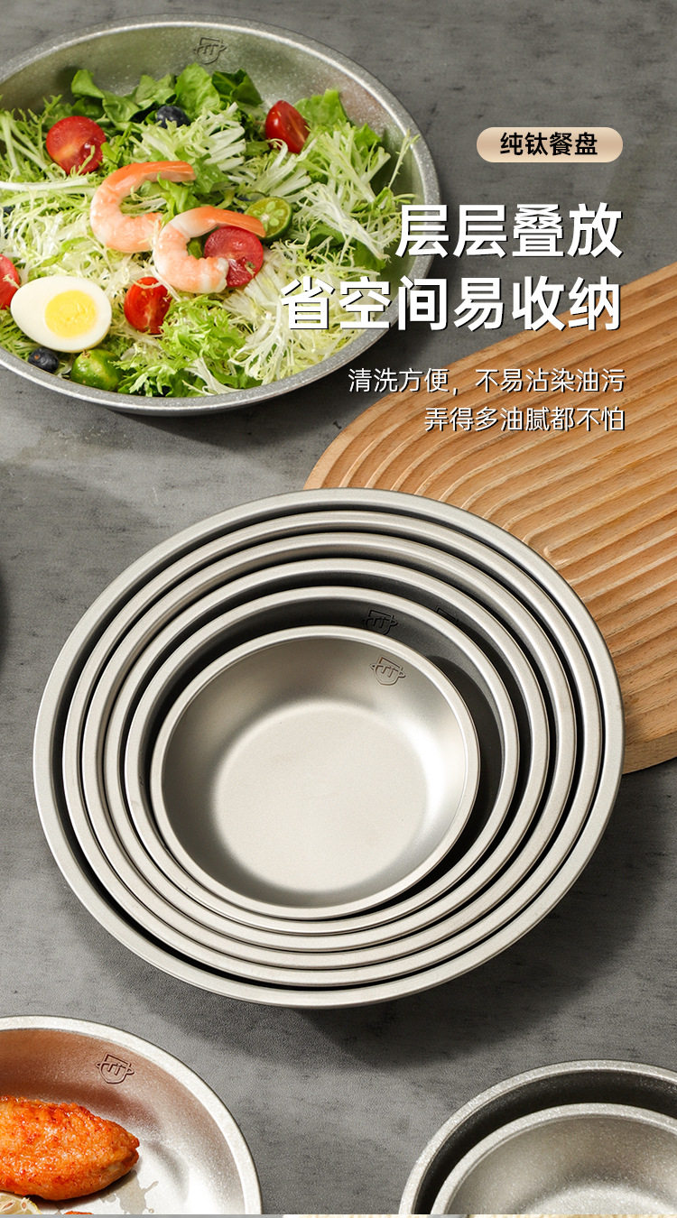 Pure Titanium Plate Outdoor Camping Tableware Dish Plate Tray Household Dish Set Round Plate Portable Light Luxury Thickened