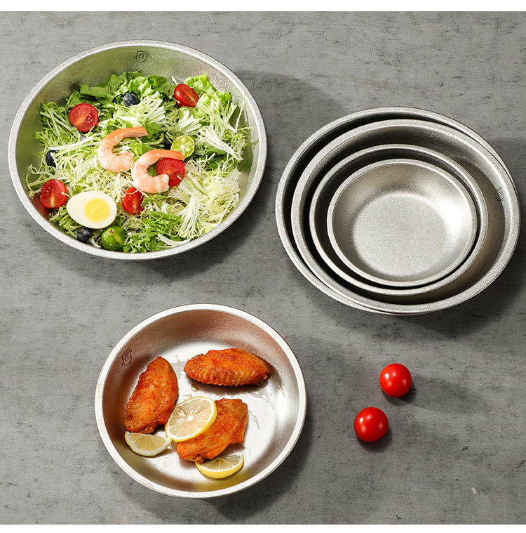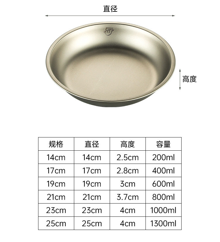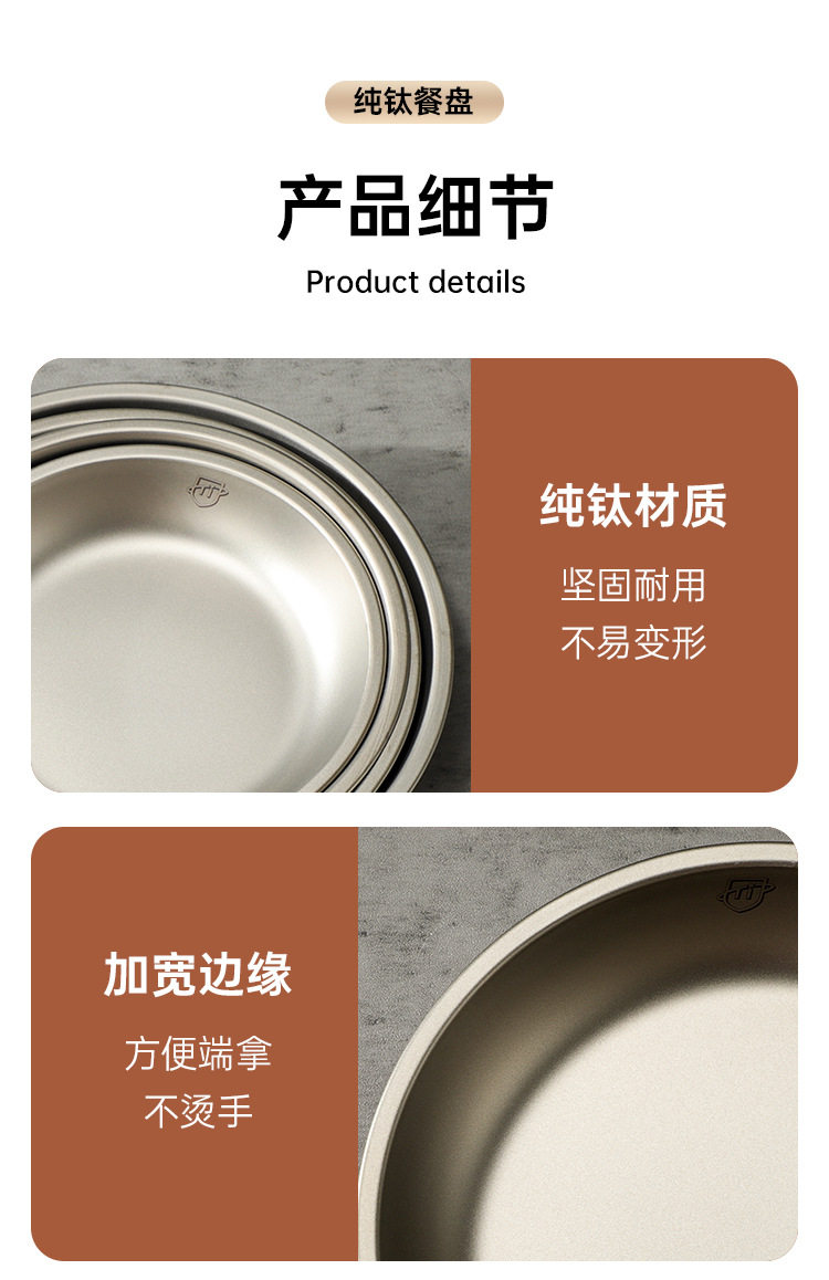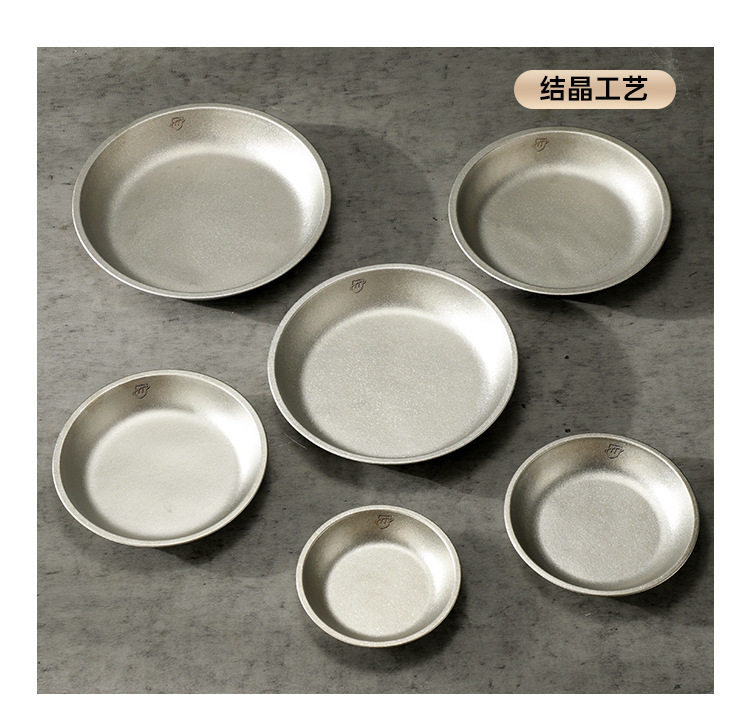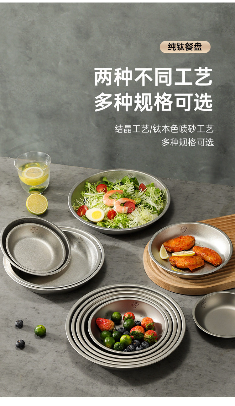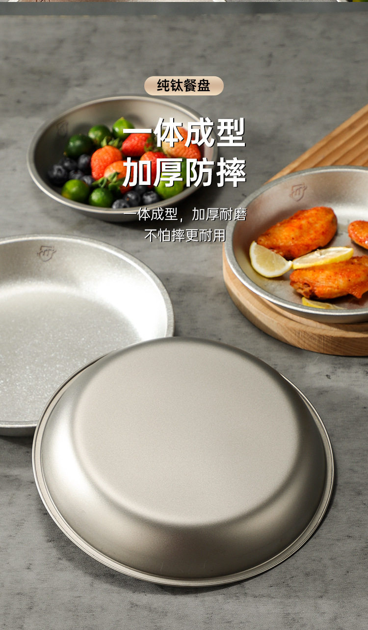 Pure Titanium Plate Outdoor Camping Tableware Dish Plate Tray Household Dish Set Round Plate Portable Light Luxury Thickened