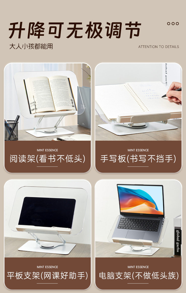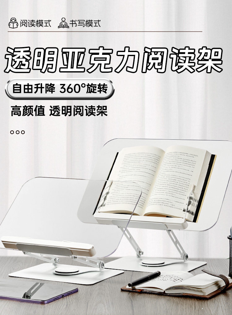 Multifunctional Acrylic Reading Bookshelf Desktop Rotating Reading Bookshelf Children's Student Reading Bookshelf Tablet Holder