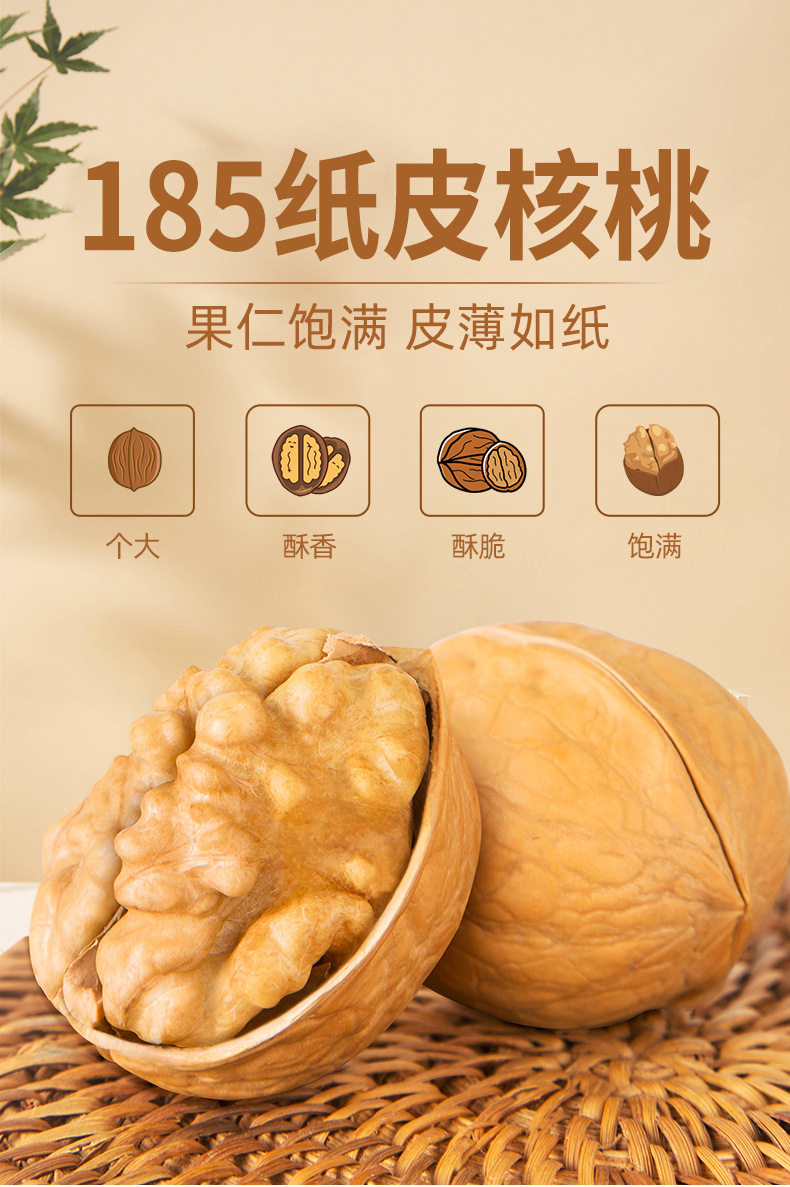 Xinjiang 185 Paper-Skinned Walnuts, New Original Flavor, No Additives, Thin-Skinned 5g, Aksu Origin, Xinjiang Specialty for Pregnant Women