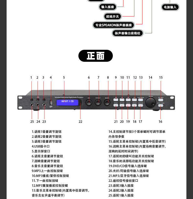 New X5 Effector with Lossless Sound Quality, Anti-Howling, Multifunctional for Home Use, Stage Professional Preamp with Bluetooth Effector