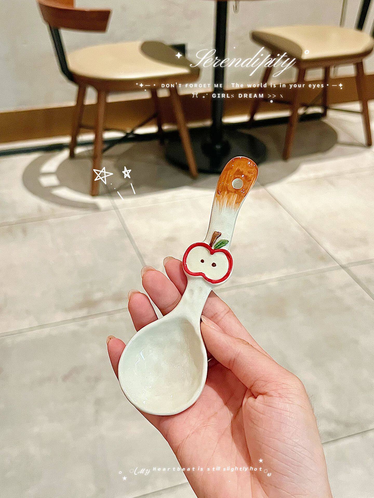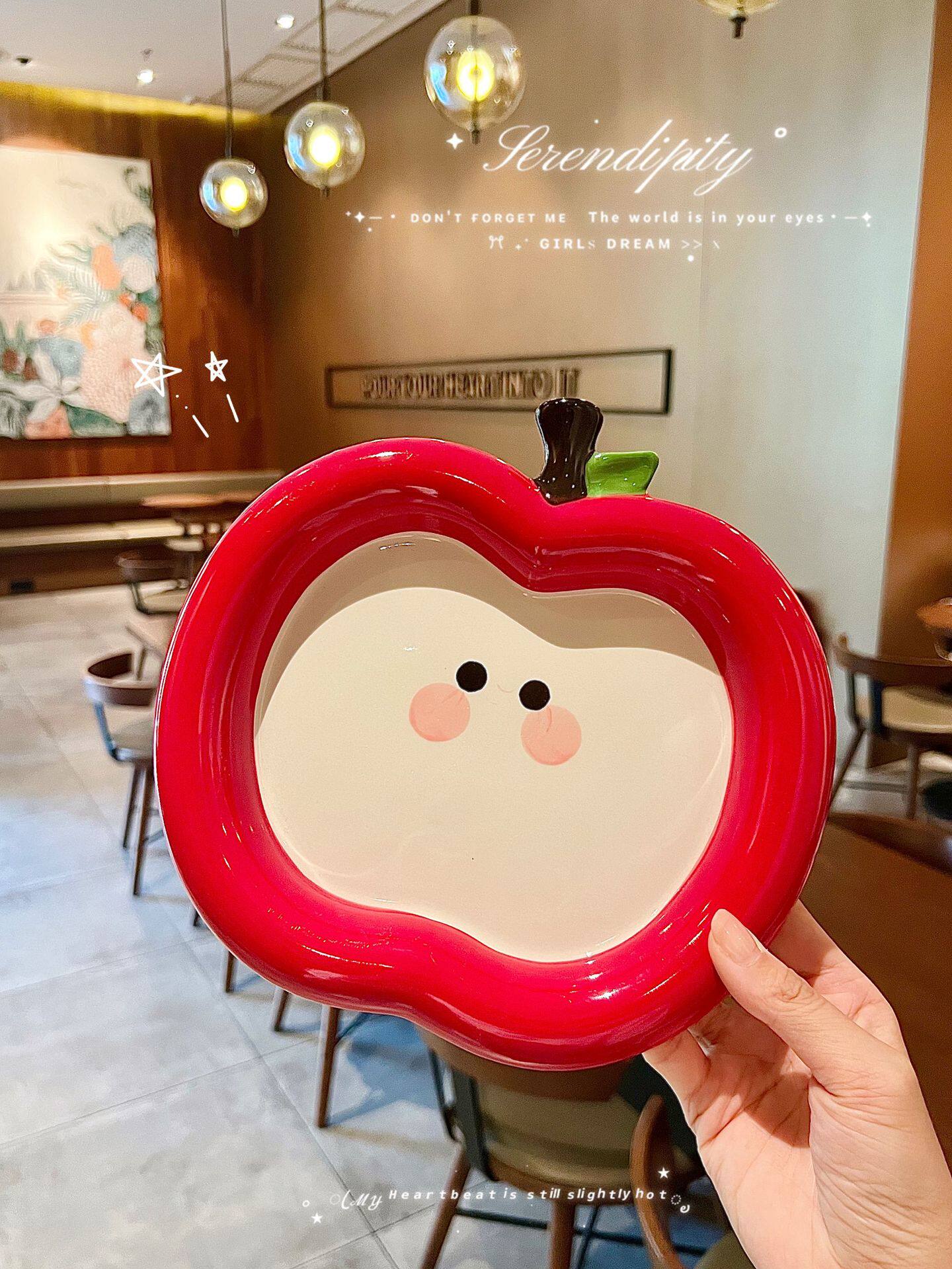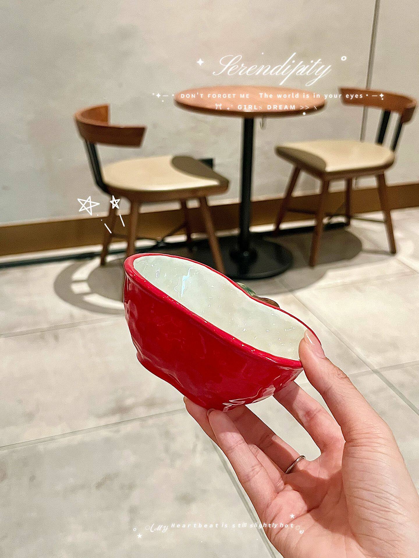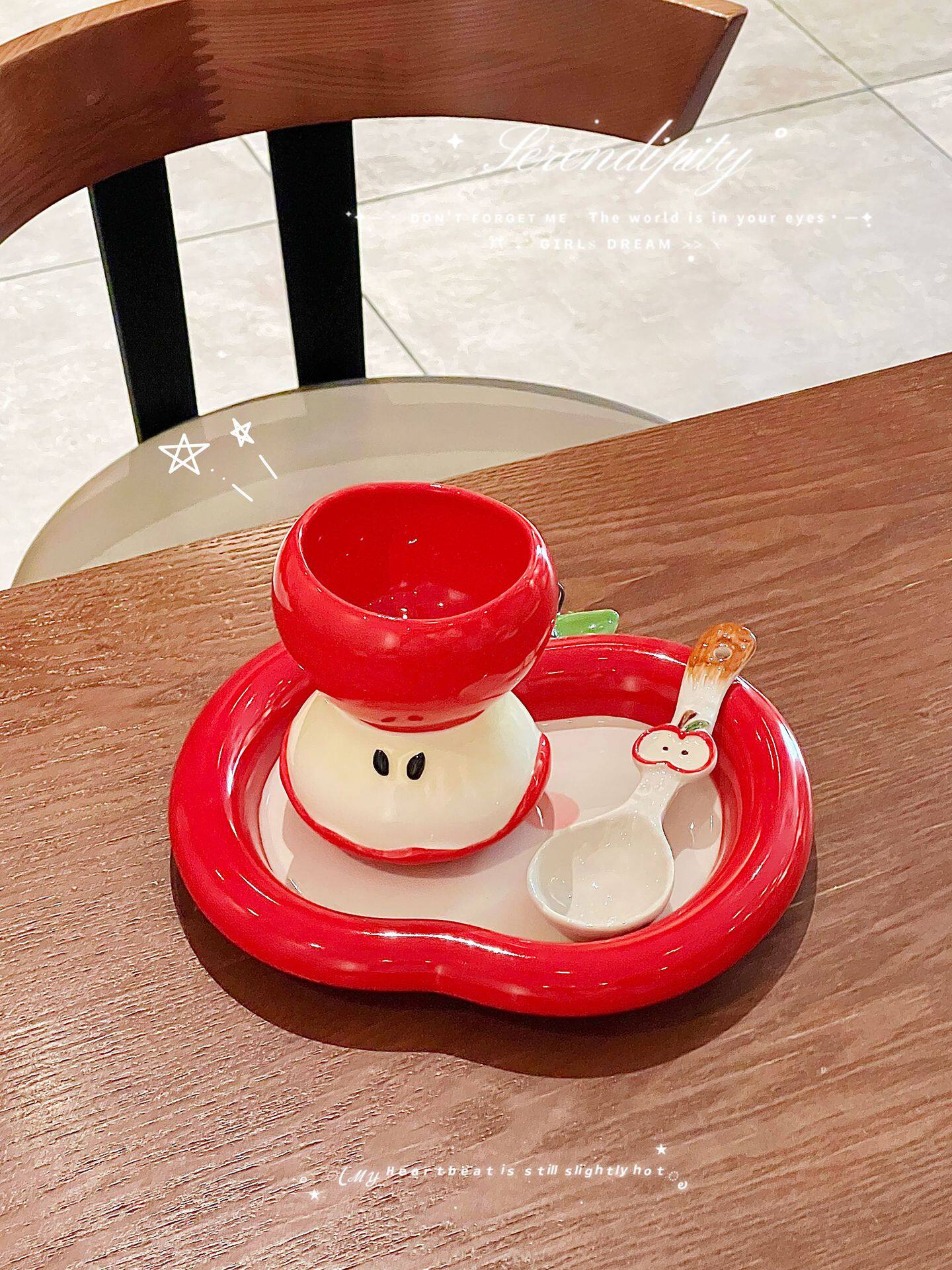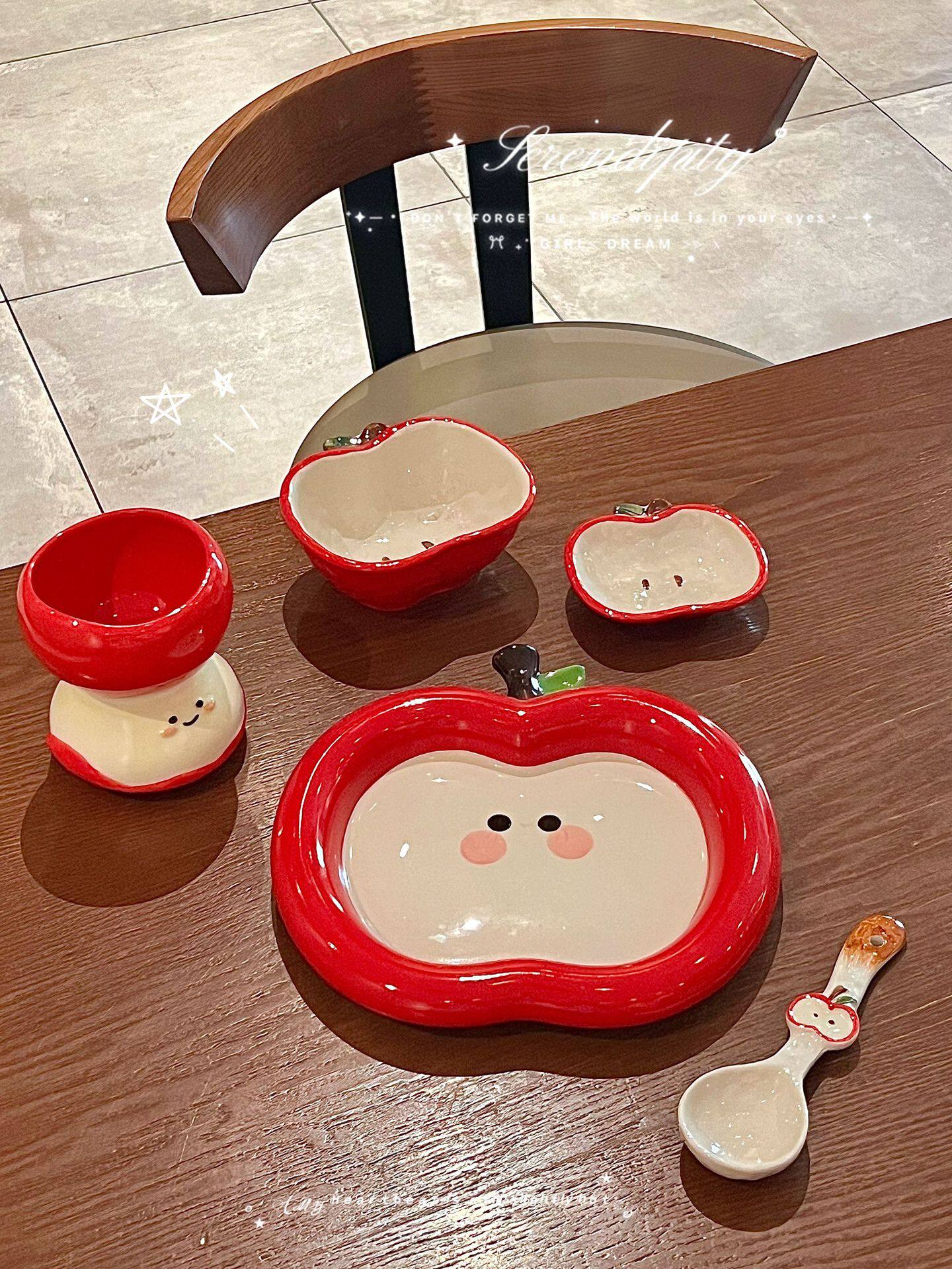 Internet Celebrity Apple Plate Cartoon Ins High-Looking Cute Ceramic Apple Cup Bowl Dish Spoon