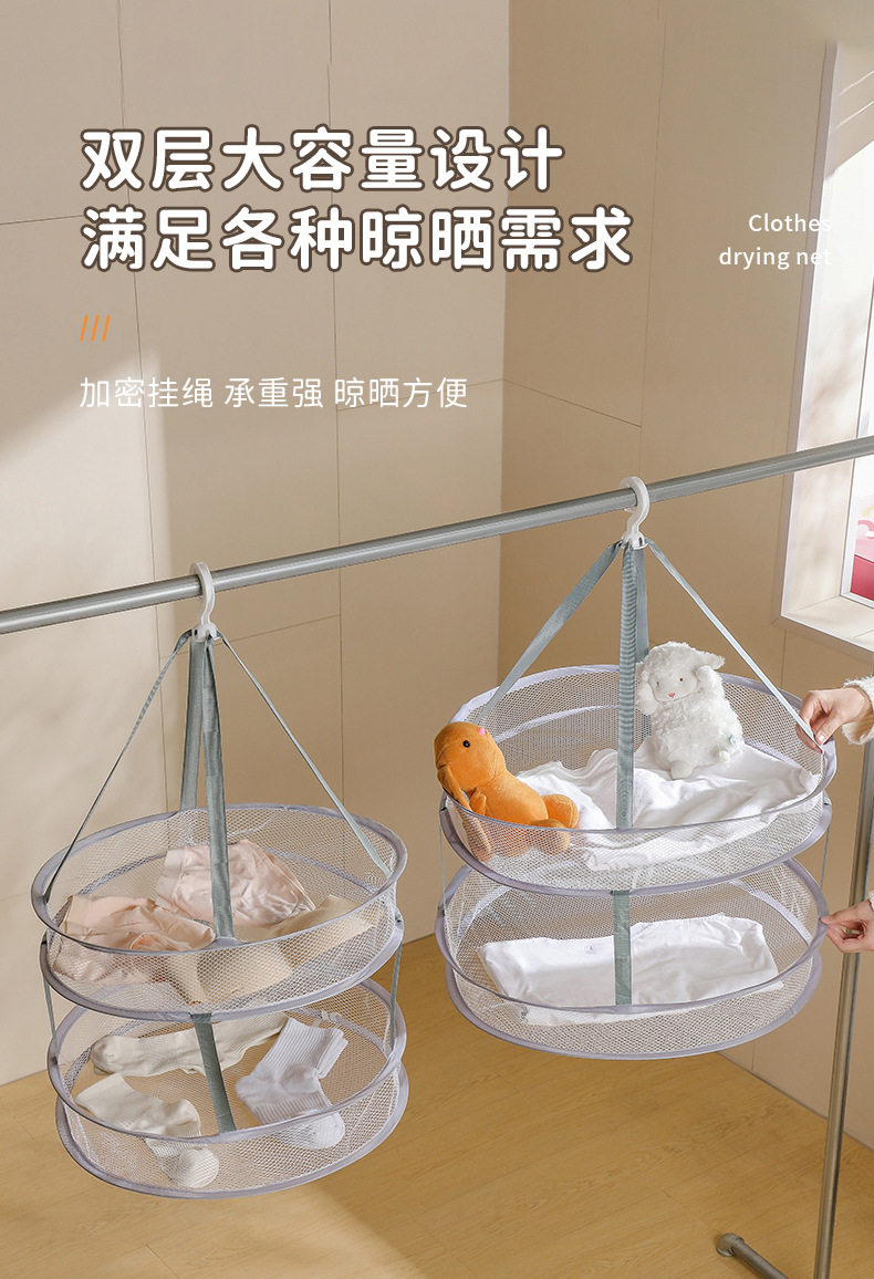 Deformable Multifunctional Large Clothes Drying Basket Double Layer Foldable Clothes Drying Net Underwear and Socks Drying Storage Net Wholesale