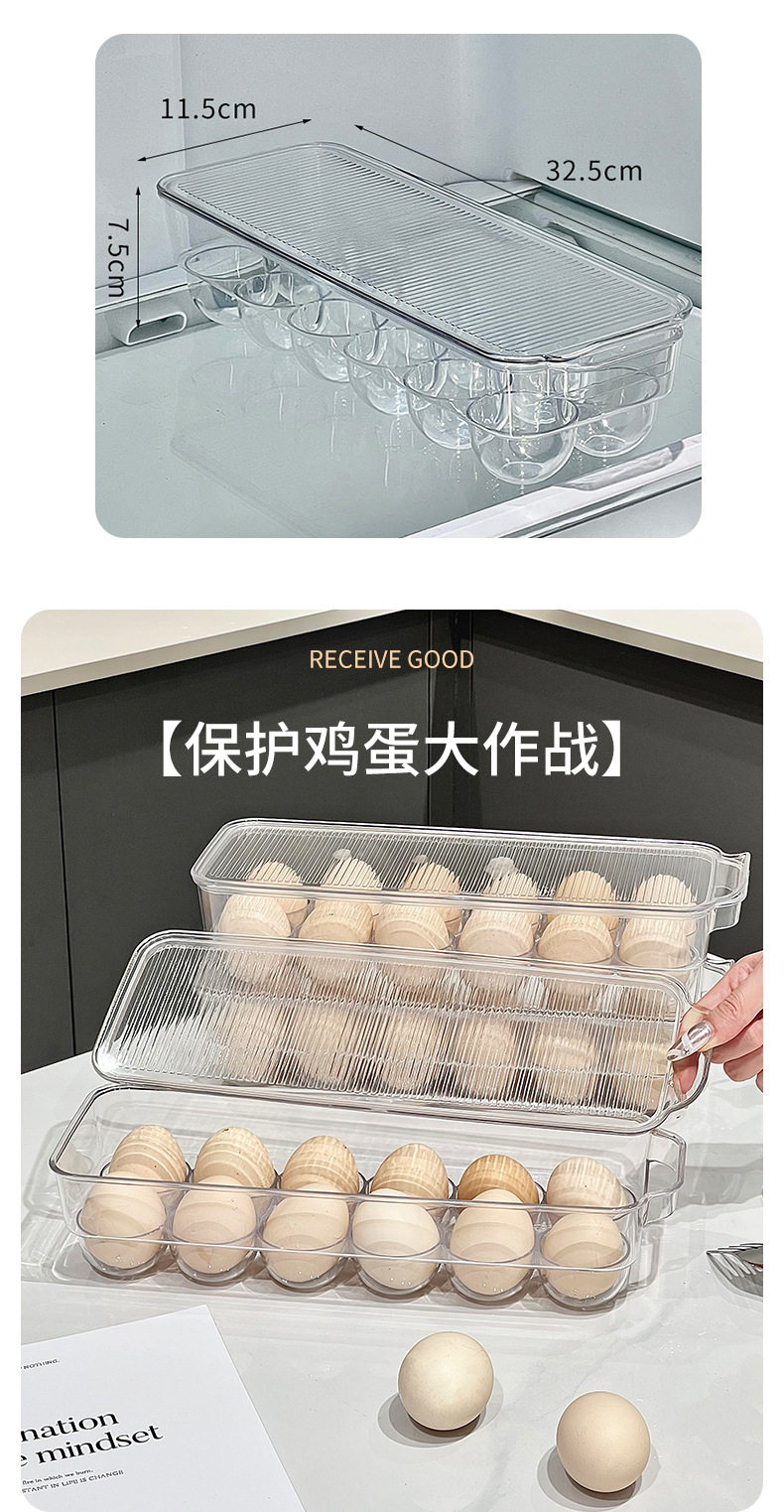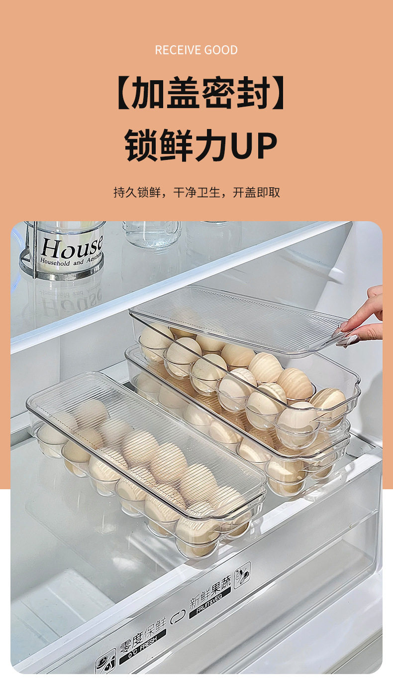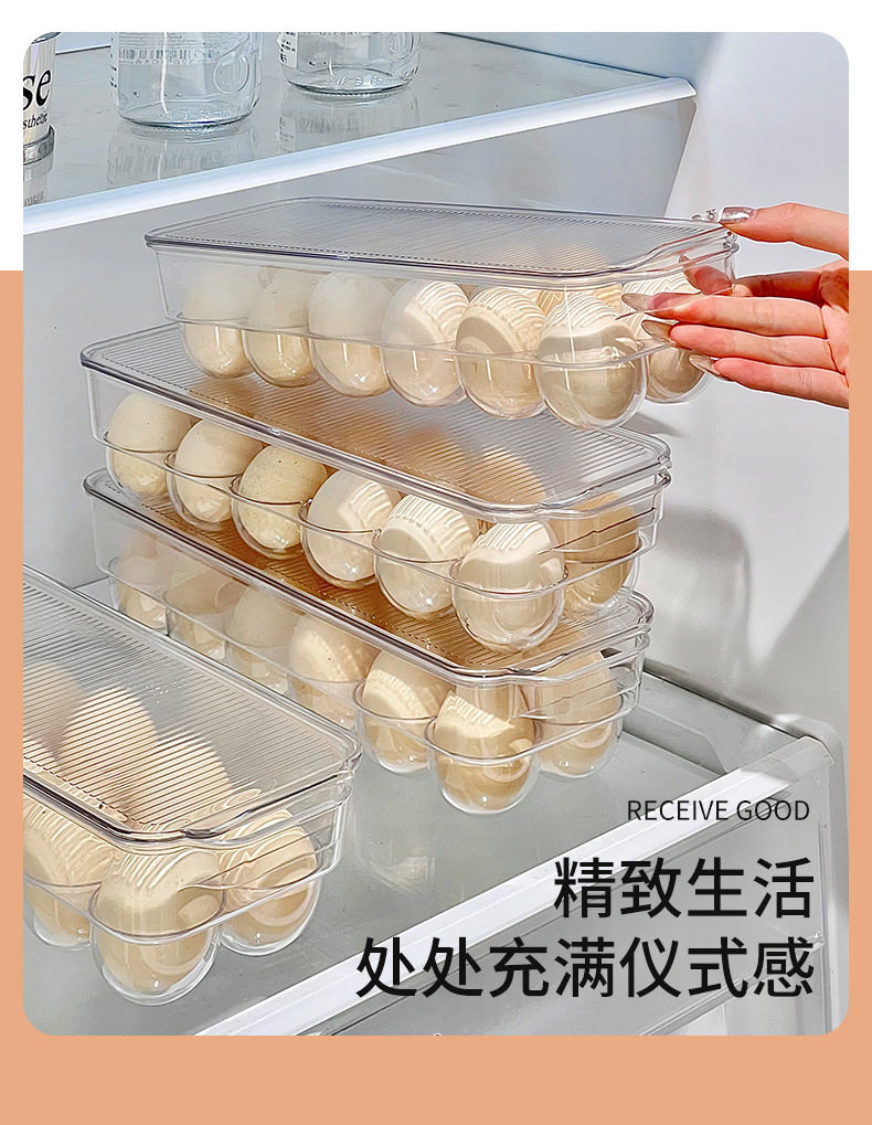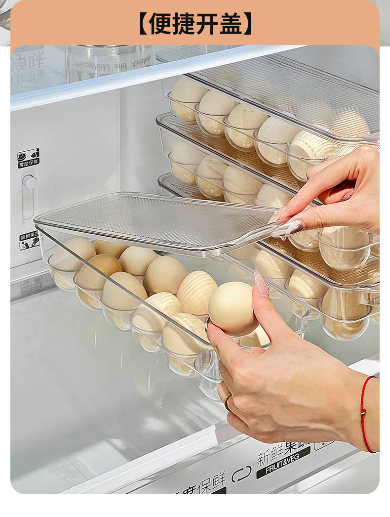 Cross-Border Egg Storage Box New Kitchen Refrigerator Egg Preservation Box with Lid Timed Egg Box Drawer-Type Egg Tray