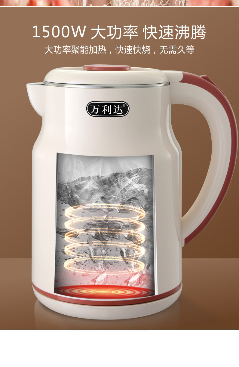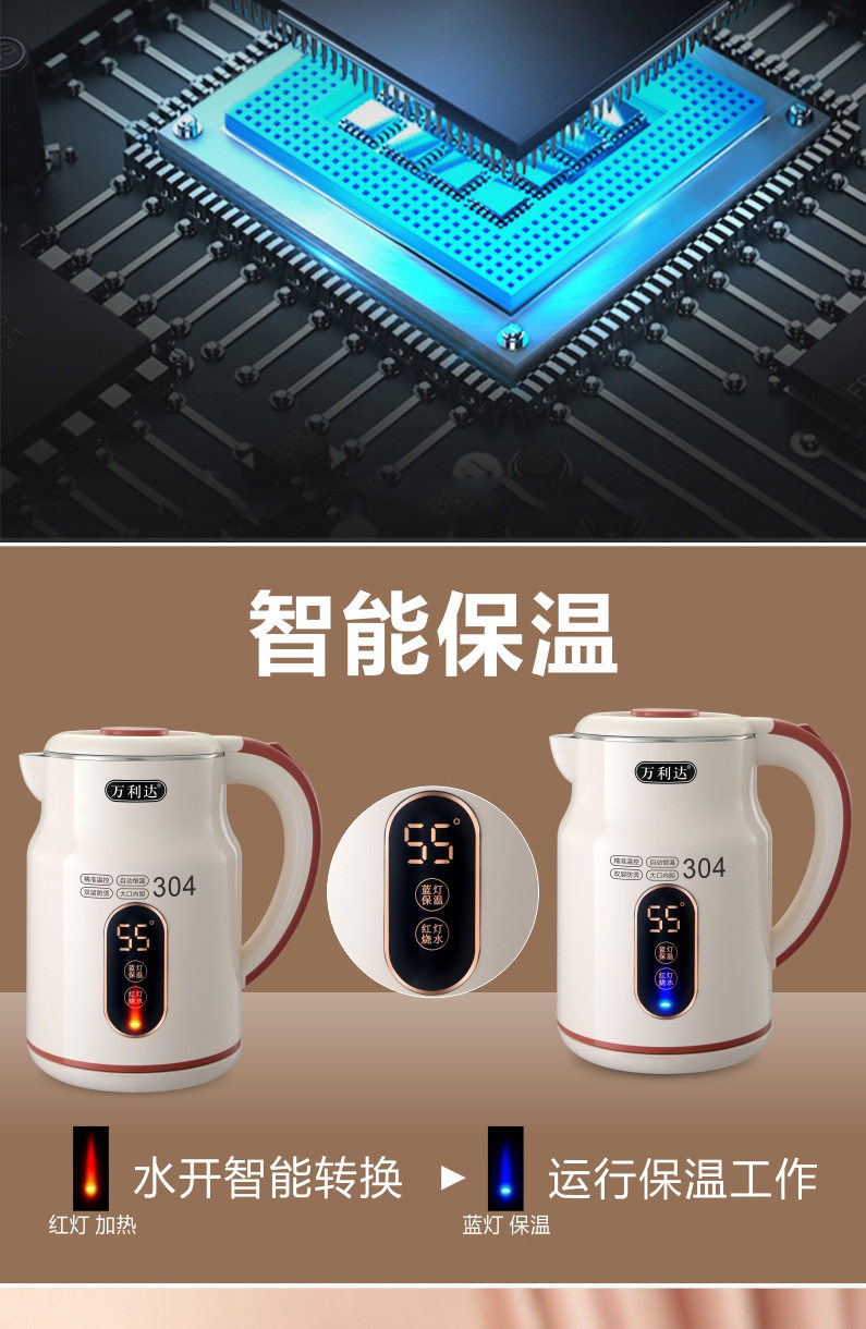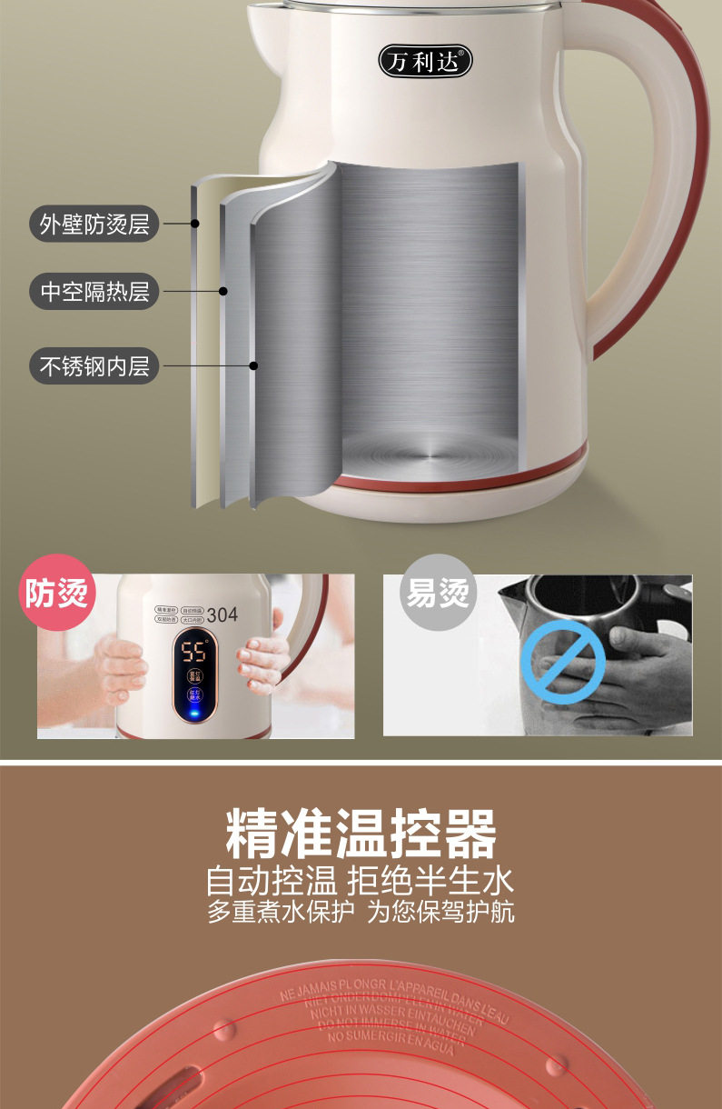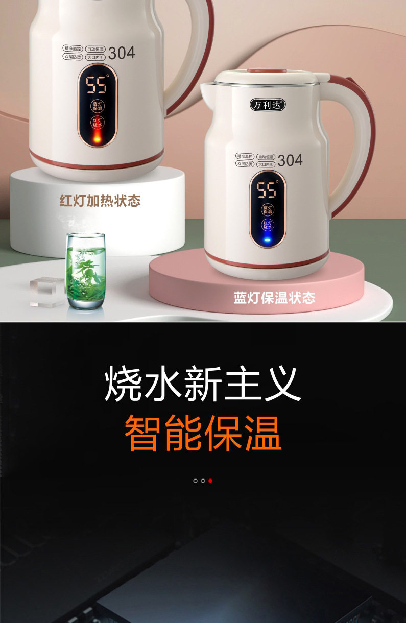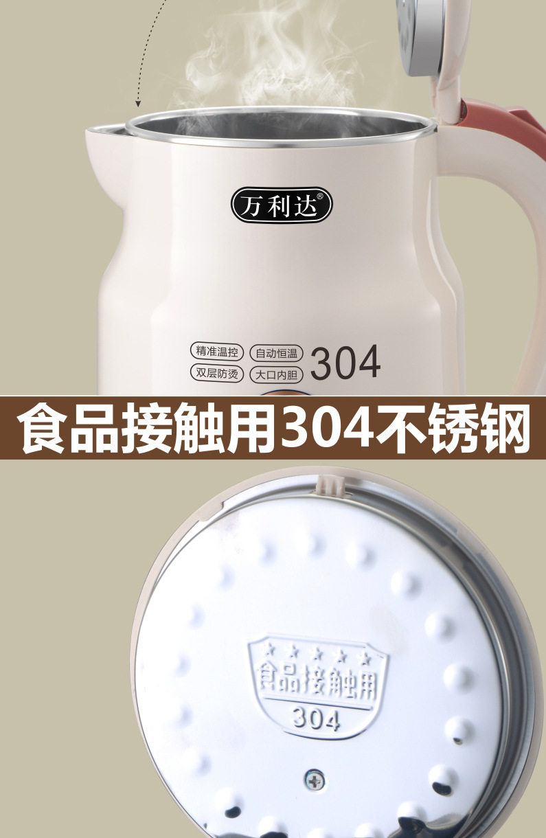 Wanlida Electric Kettle with Food-Grade 304 Stainless Steel Inner Tank, Household Insulated Integrated Dormitory Kettle, Health-Preserving Electric Kettle