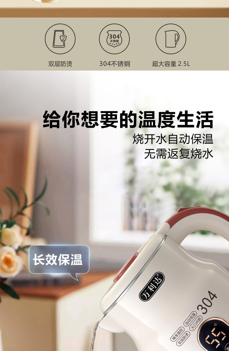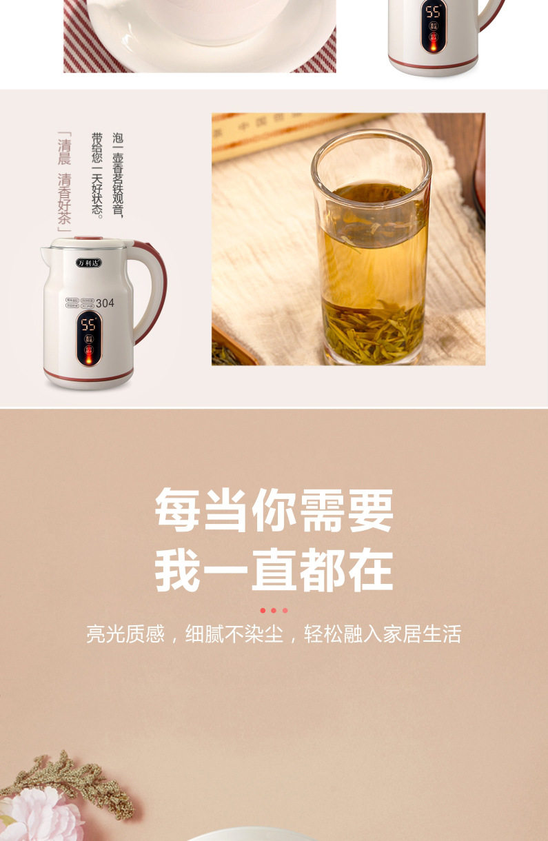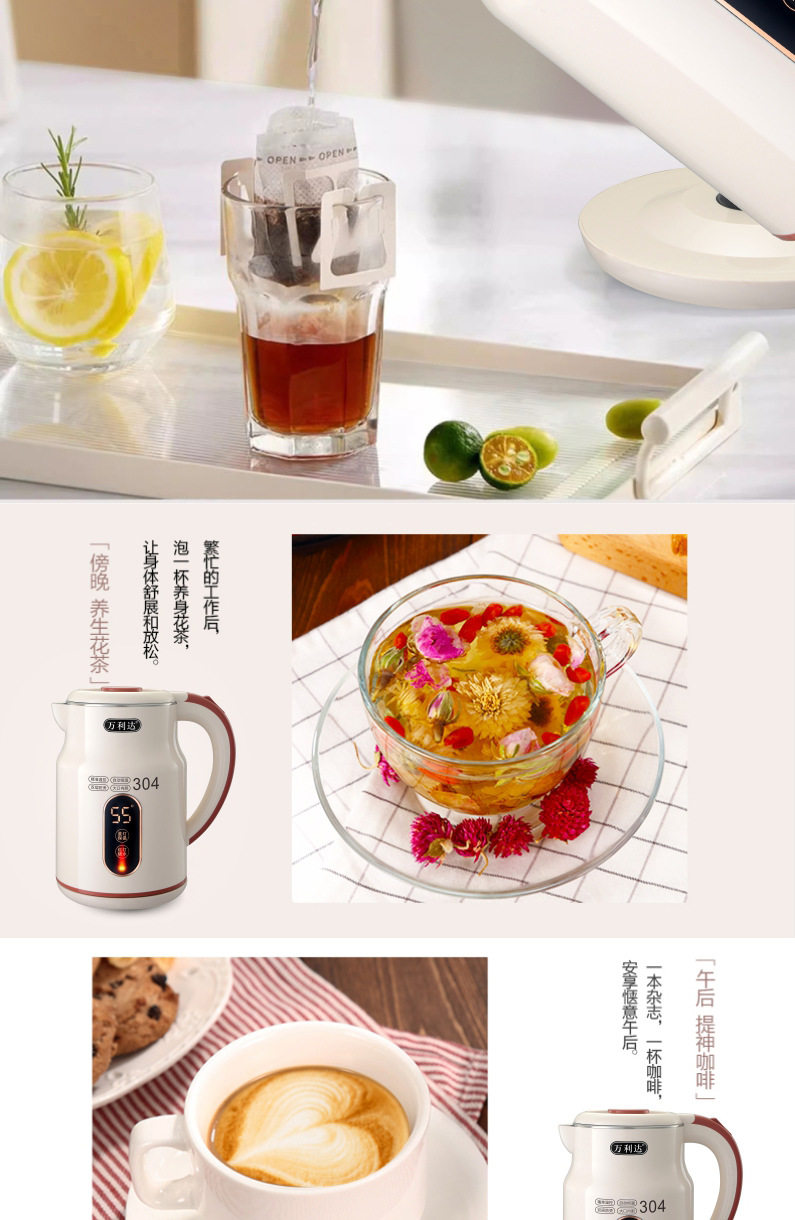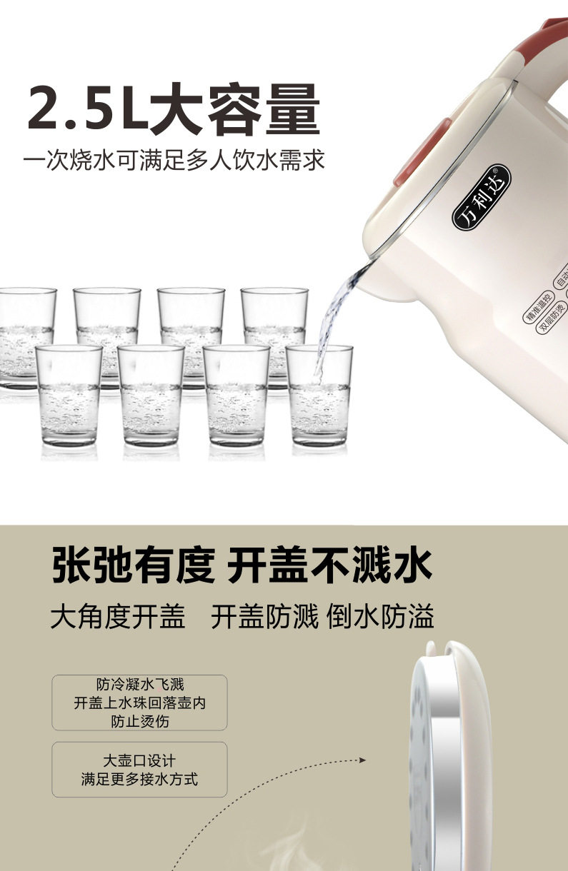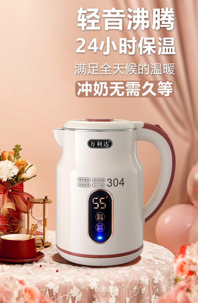 Wanlida Electric Kettle with Food-Grade 304 Stainless Steel Inner Tank, Household Insulated Integrated Dormitory Kettle, Health-Preserving Electric Kettle