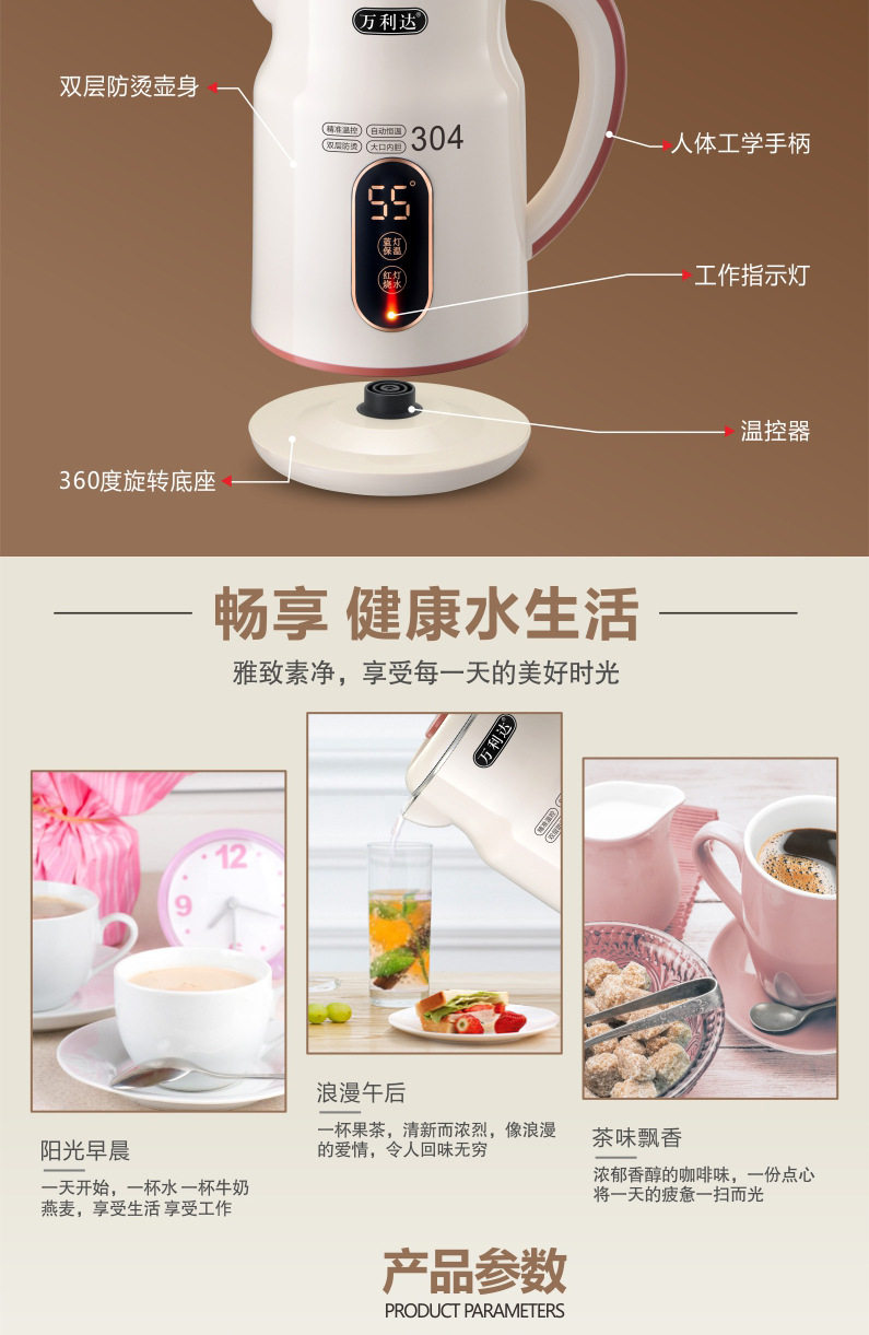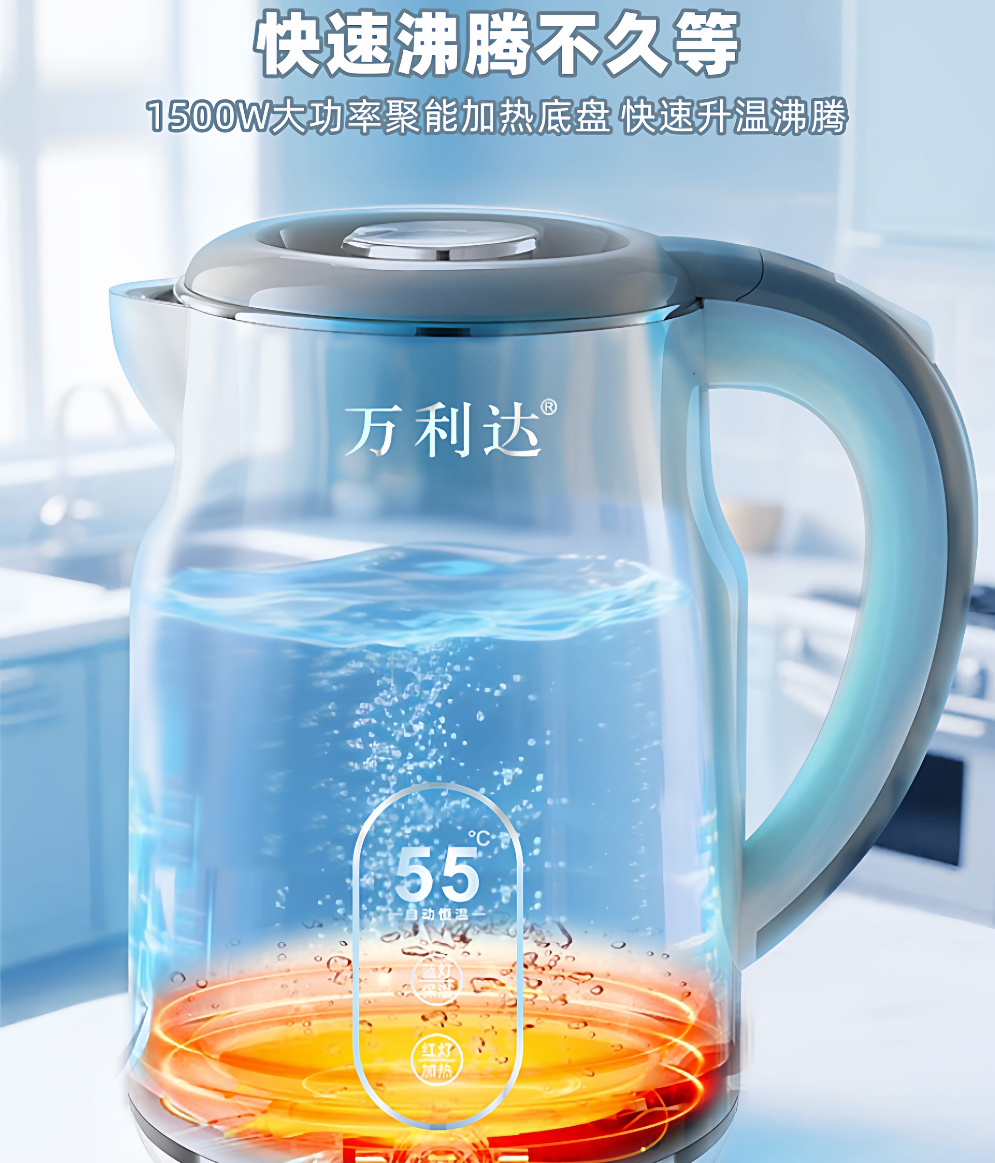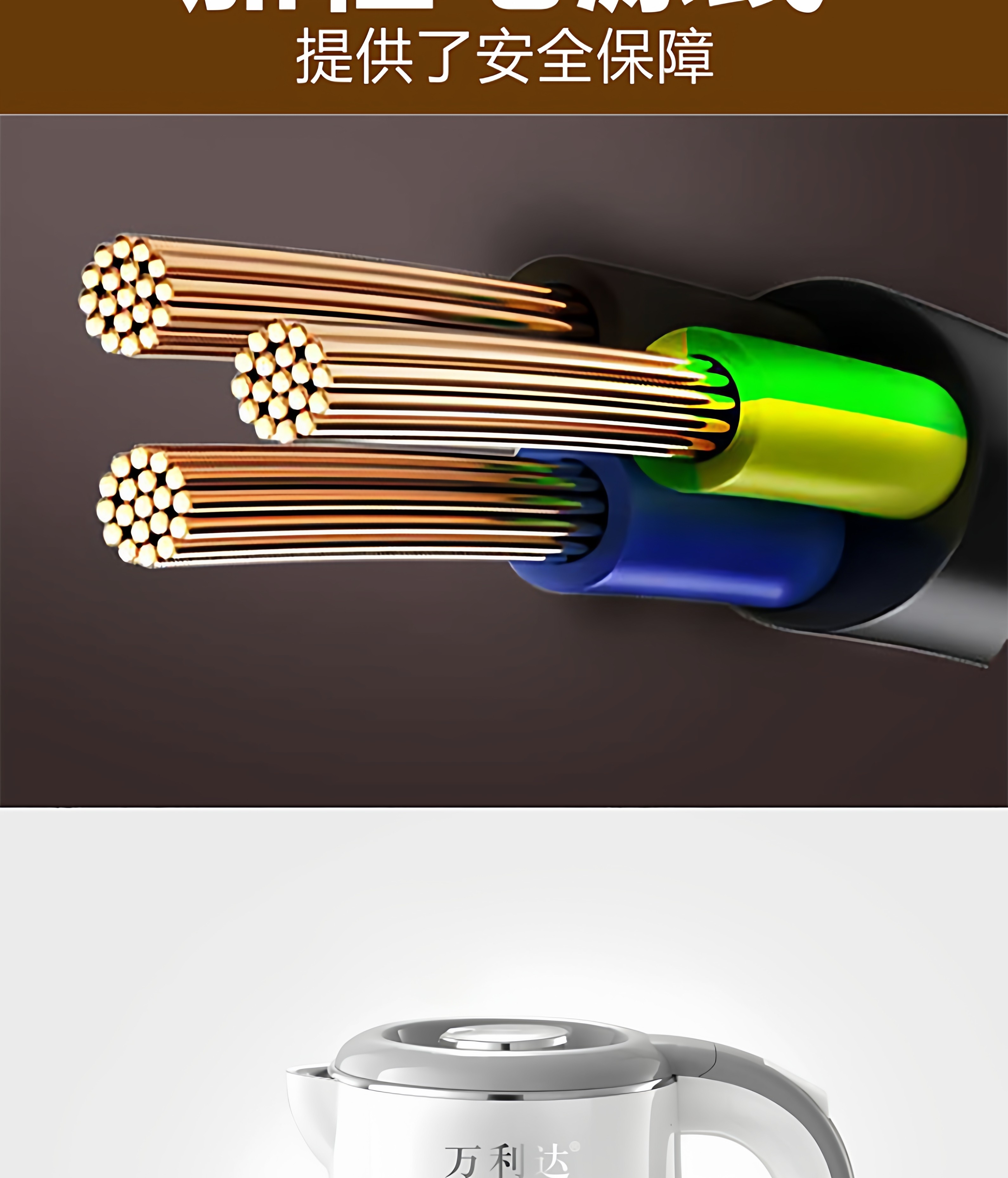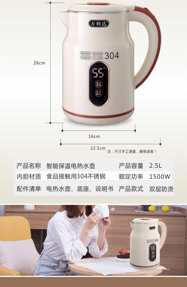 Wanlida Electric Kettle with Food-Grade 304 Stainless Steel Inner Tank, Household Insulated Integrated Dormitory Kettle, Health-Preserving Electric Kettle