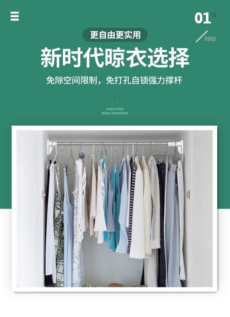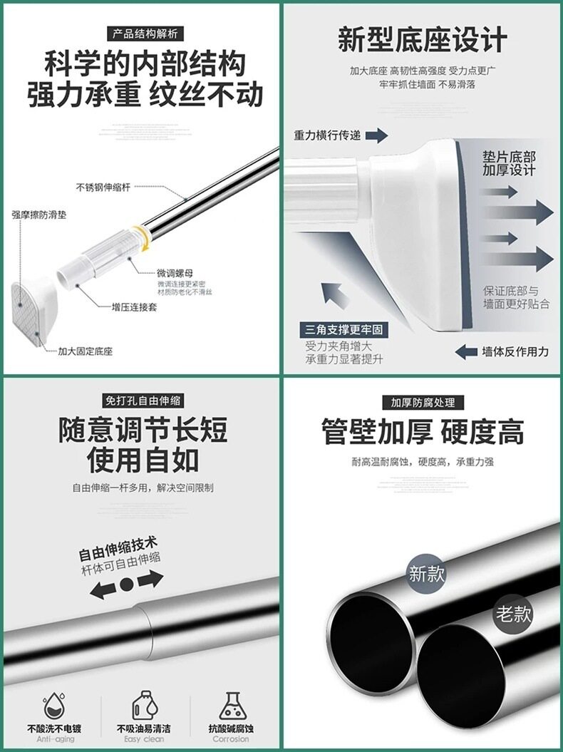 Telescopic Clothes Drying Rod, Bathroom Shower Curtain Rod, No-Drill Retractable Curtain Rod, Wholesale Wardrobe Clothes Hanger