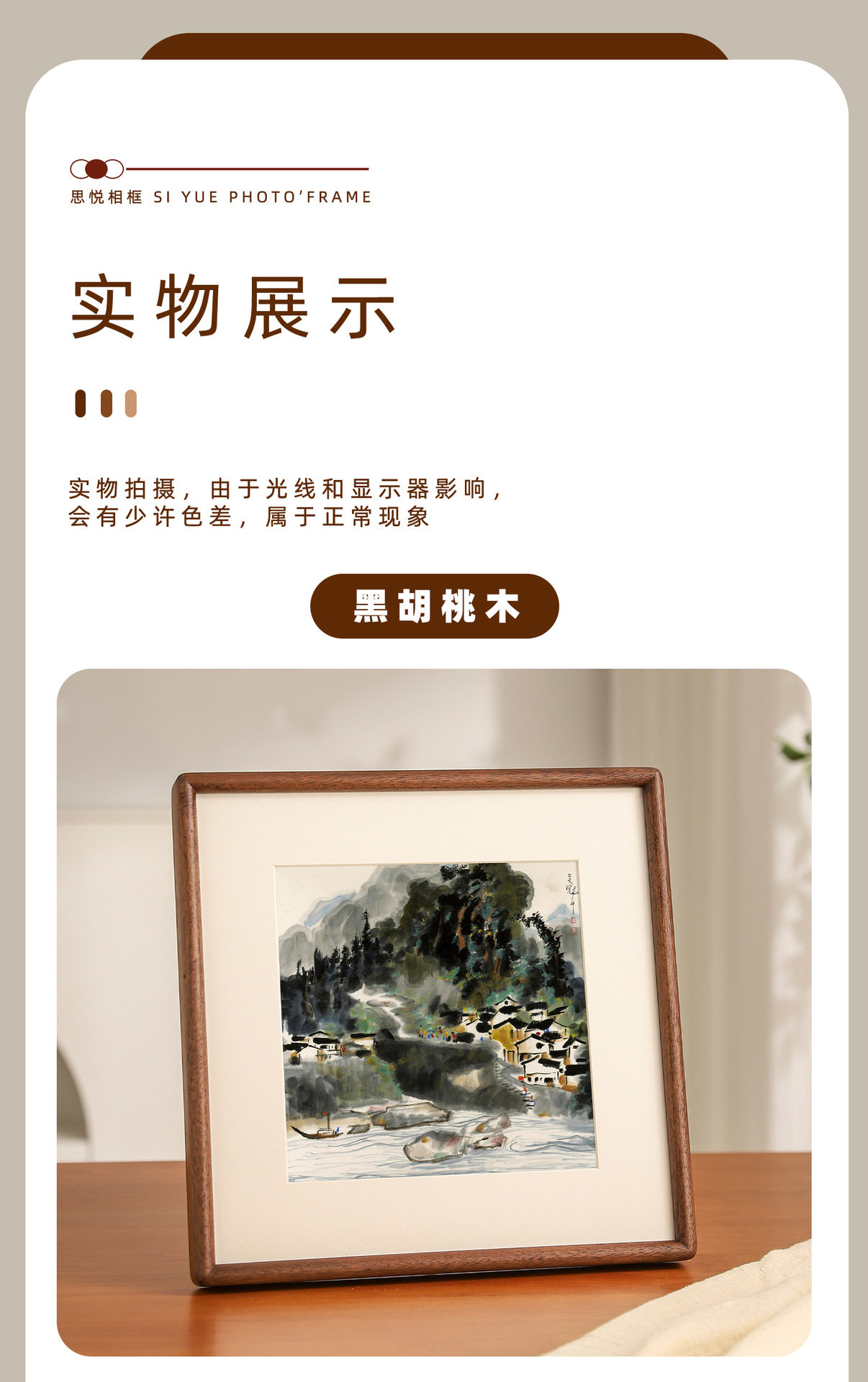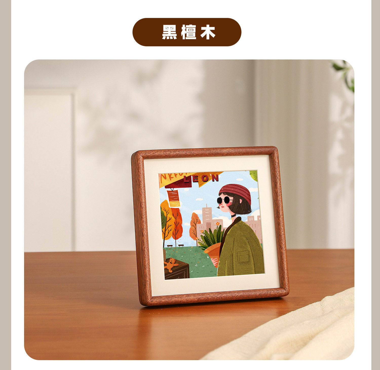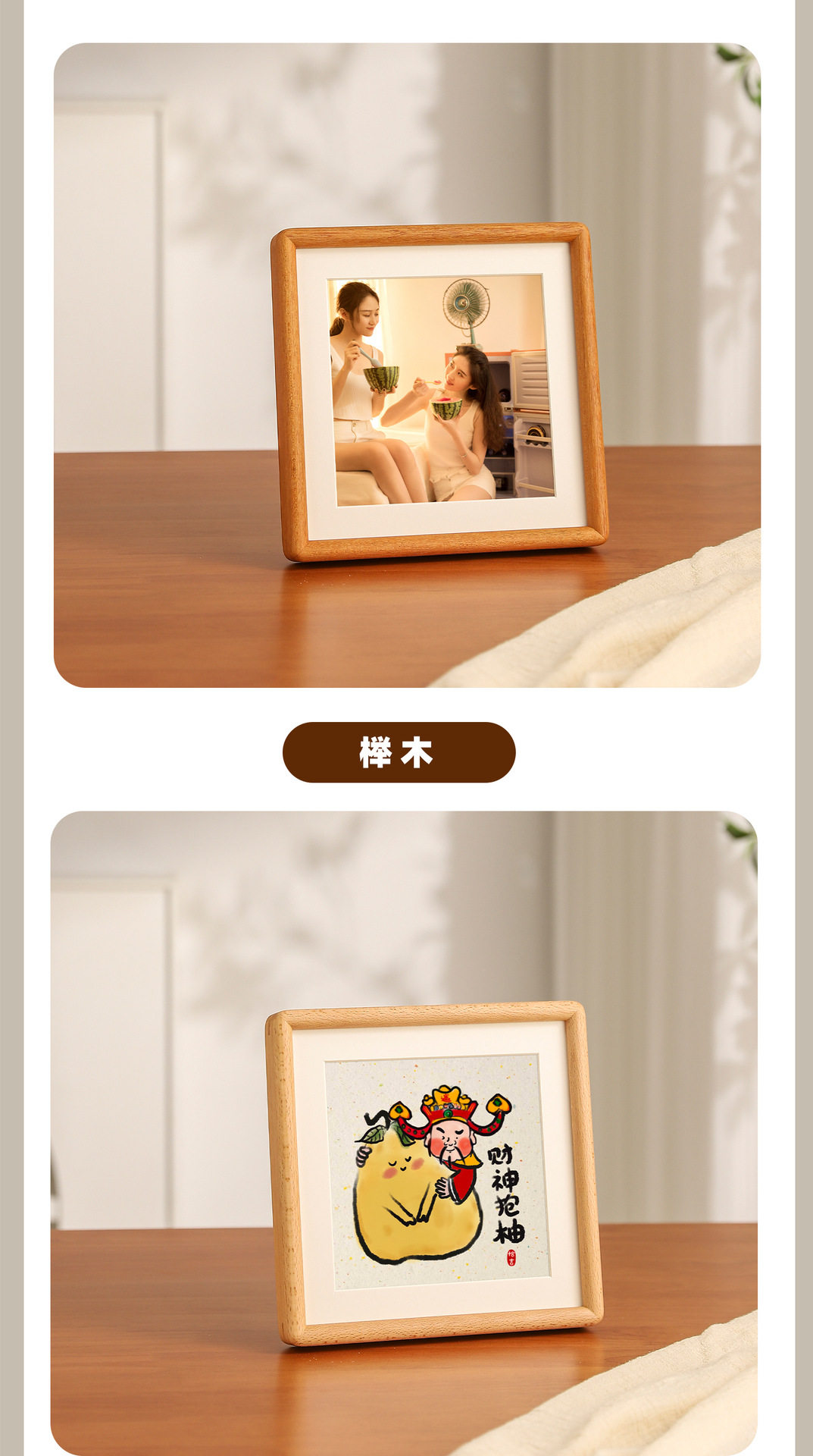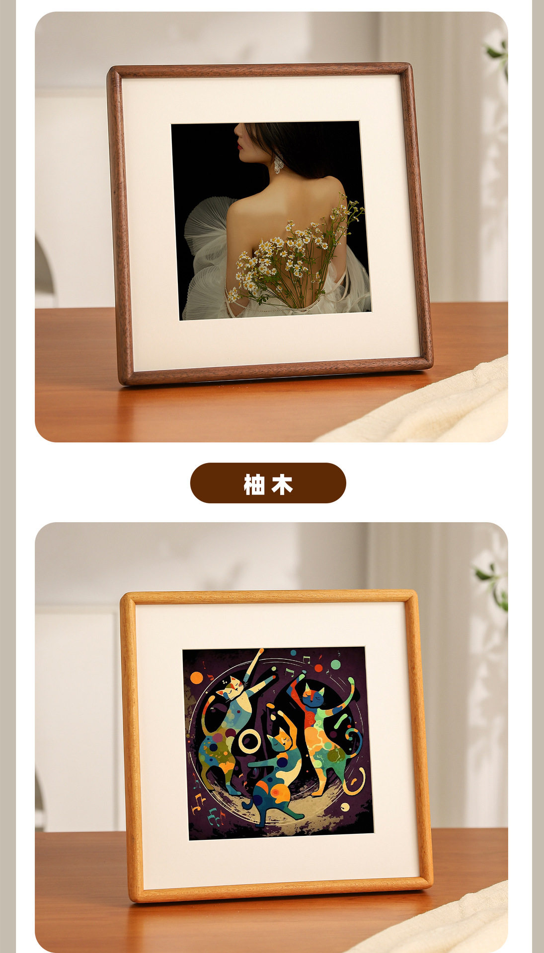 Solid Wood Mortise and Tenon Rounded Corner Mini Cute Square Photo Frame Table Calligraphy and Painting Framed Empty Frame Wall Hanging Solid Wood Picture Frame