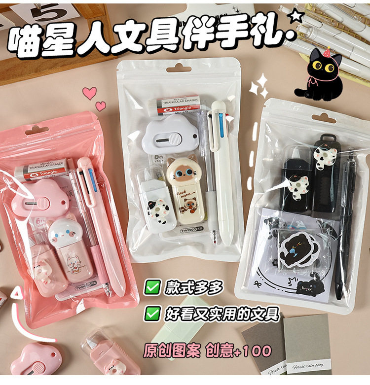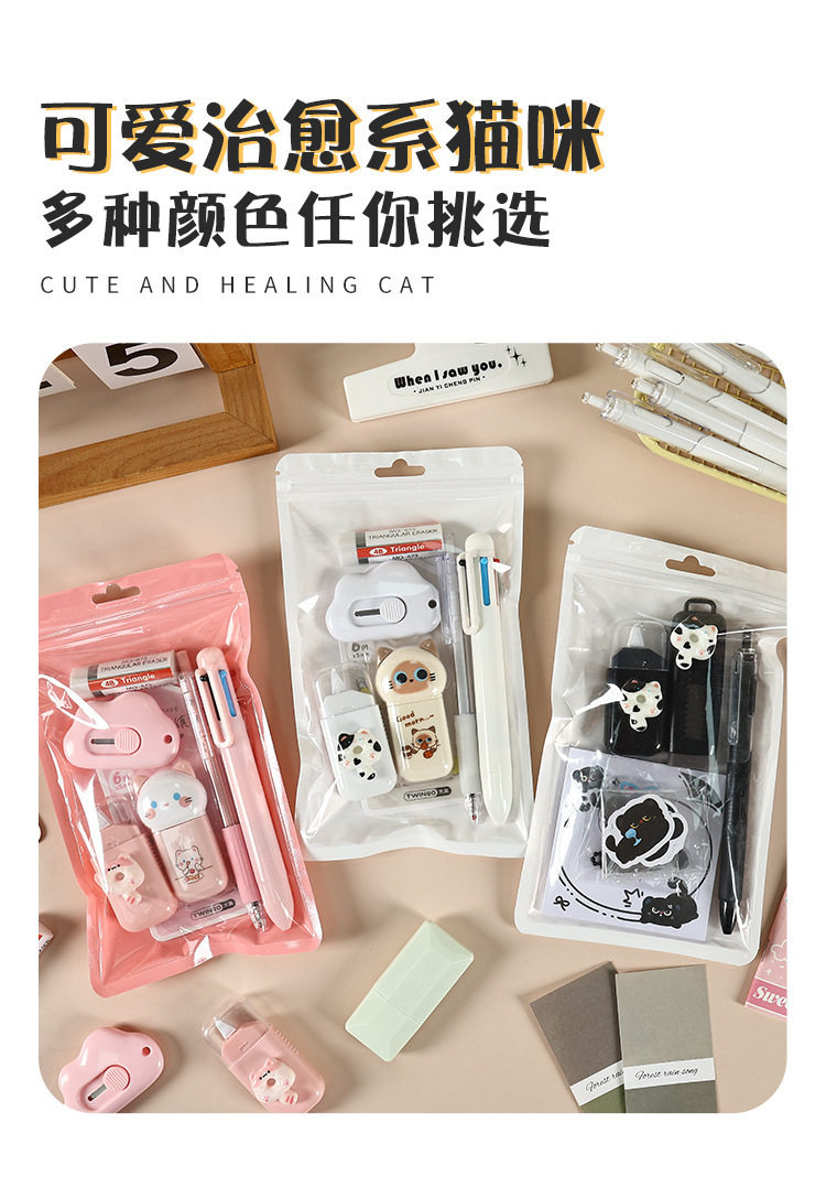Cross-Border High-Looking Cat Stationery Set, Small Gifts for Primary School Students, Children's Learning Rewards, Small Gifts, Stationery Gift Bags