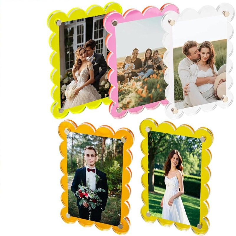 Cross-Border Double-Sided Magnetic Acrylic Photo Frame Transparent Wavy Photo Frame Home Acrylic Photo Frame Manufacturer Wholesale