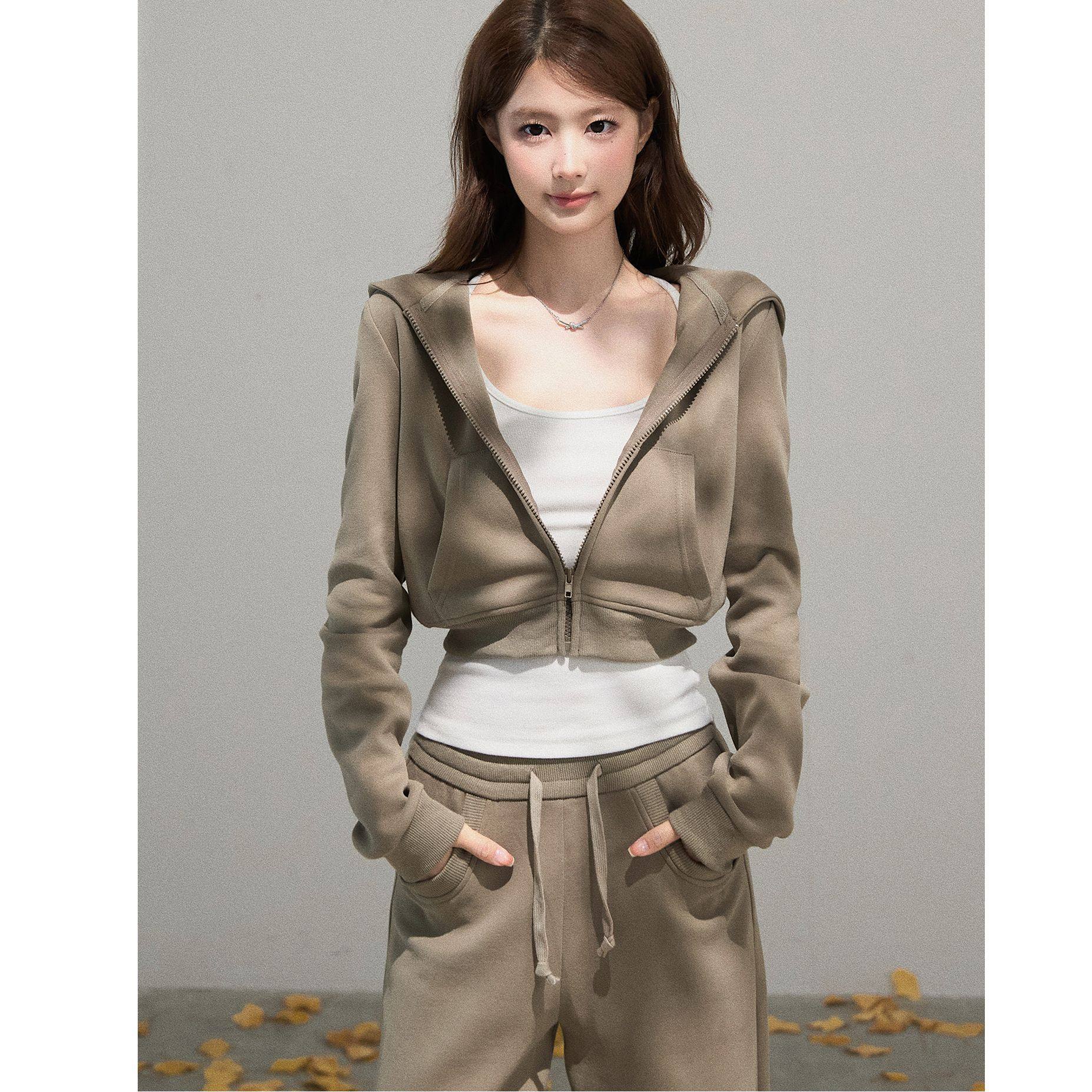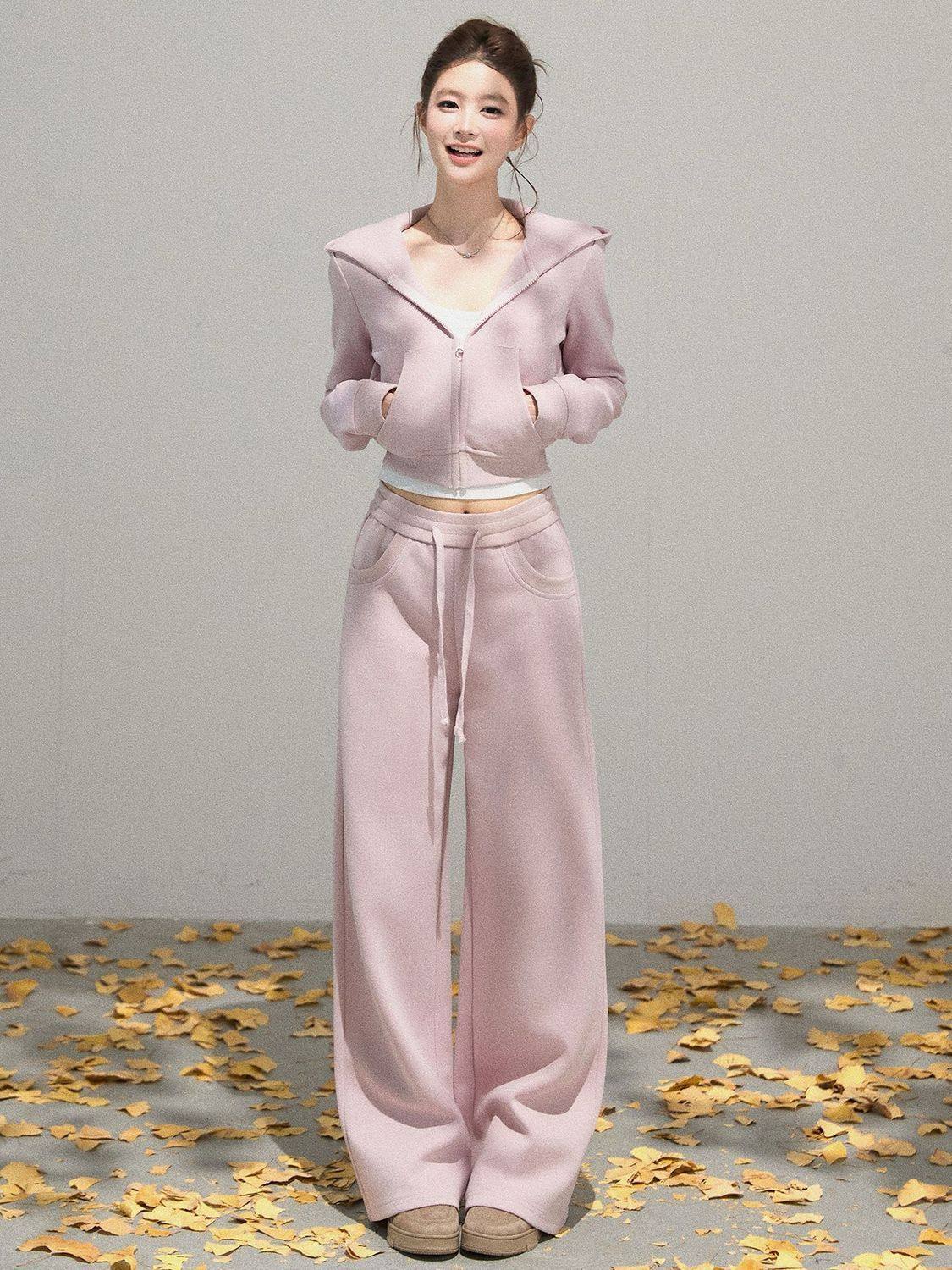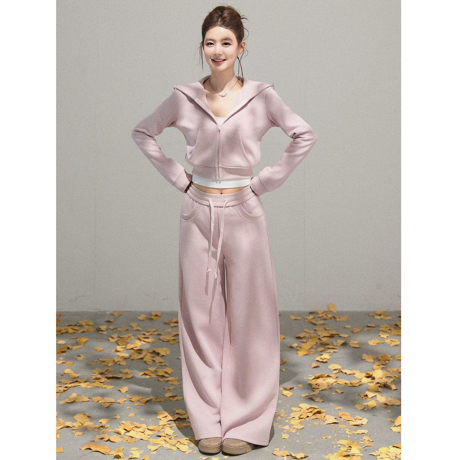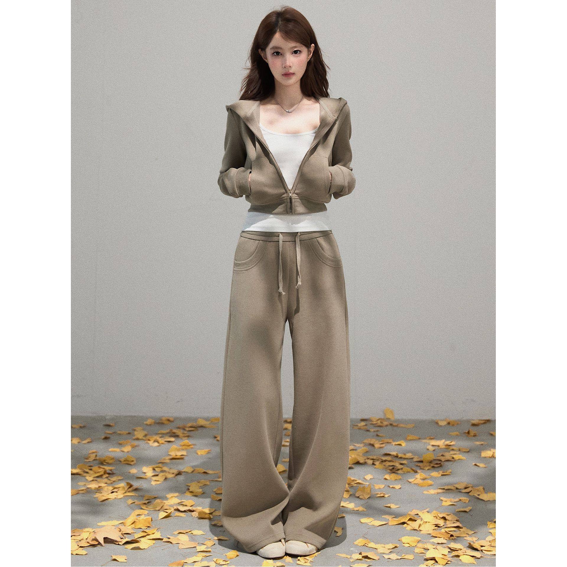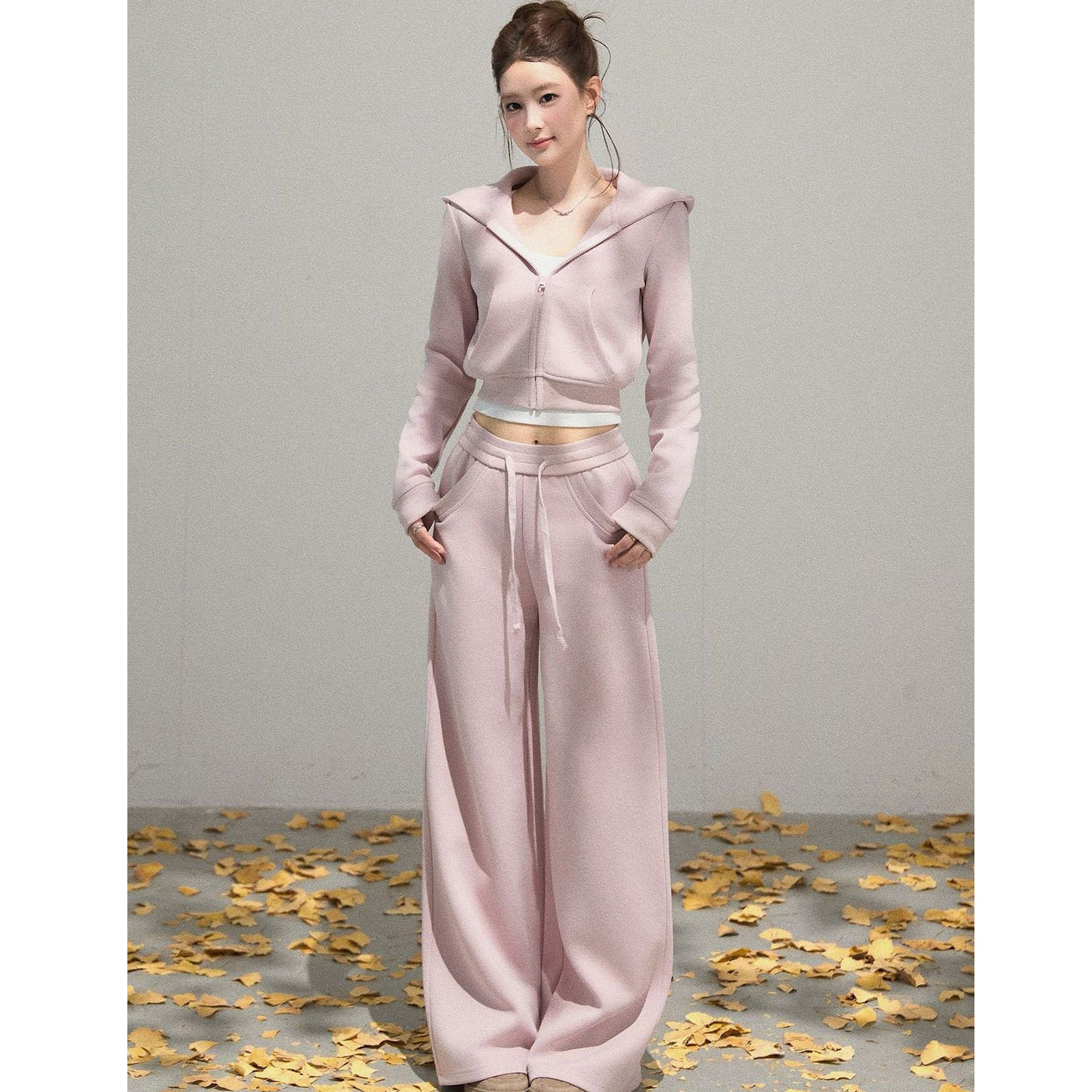 Korean Style Short Hooded Long-Sleeved Sweatshirt Jacket High-Waisted Lace-Up Pants Women's Spring & Fall New Slim Casual Two-Piece Set