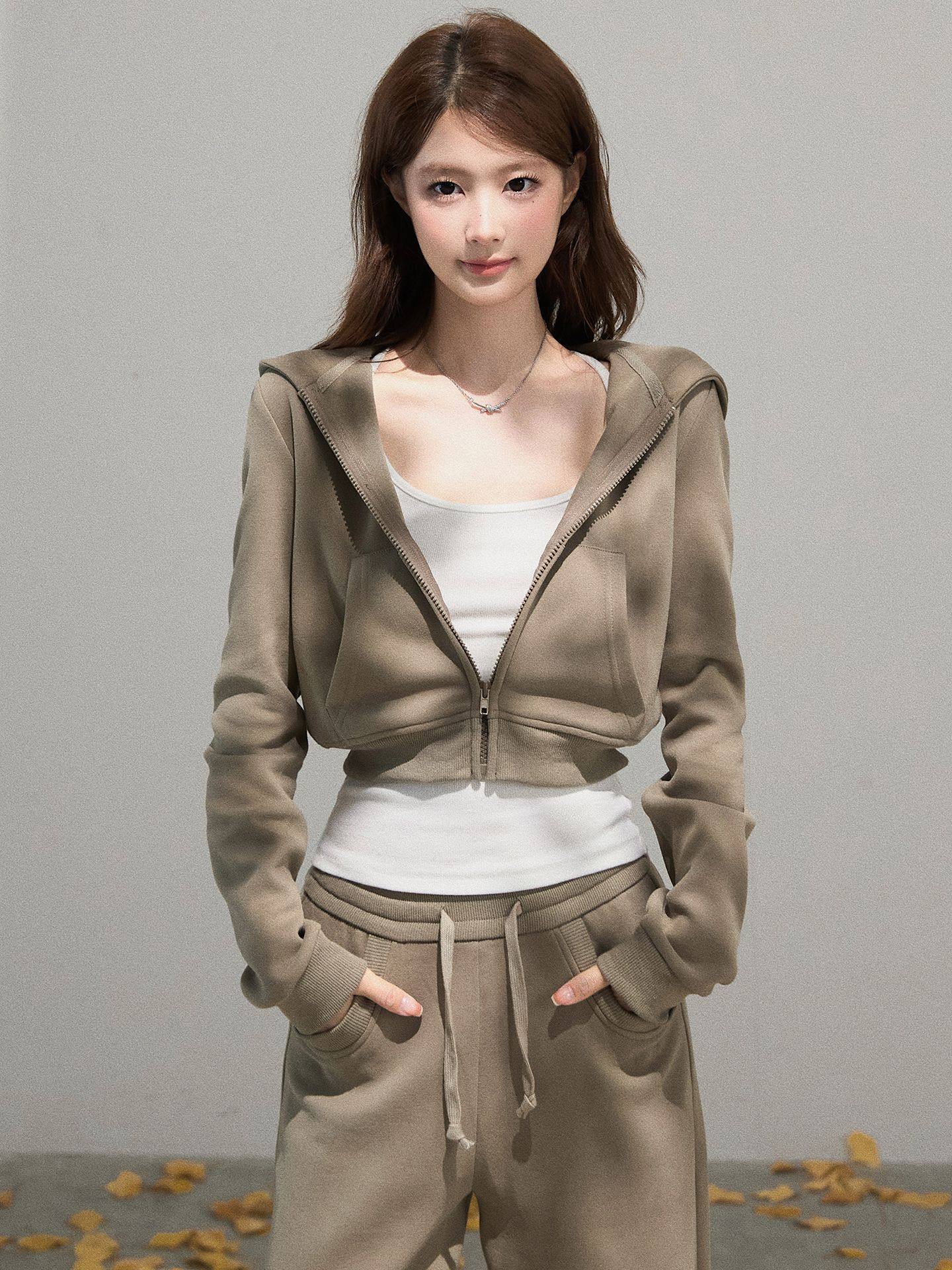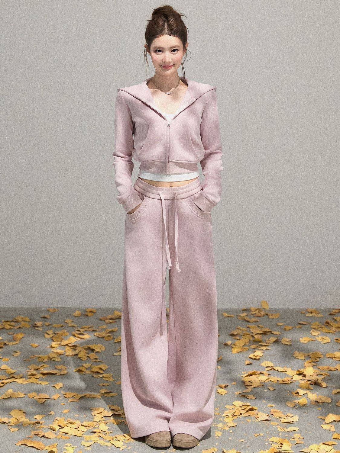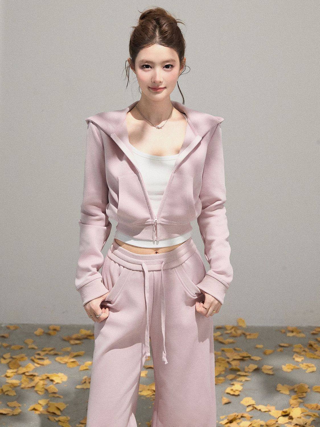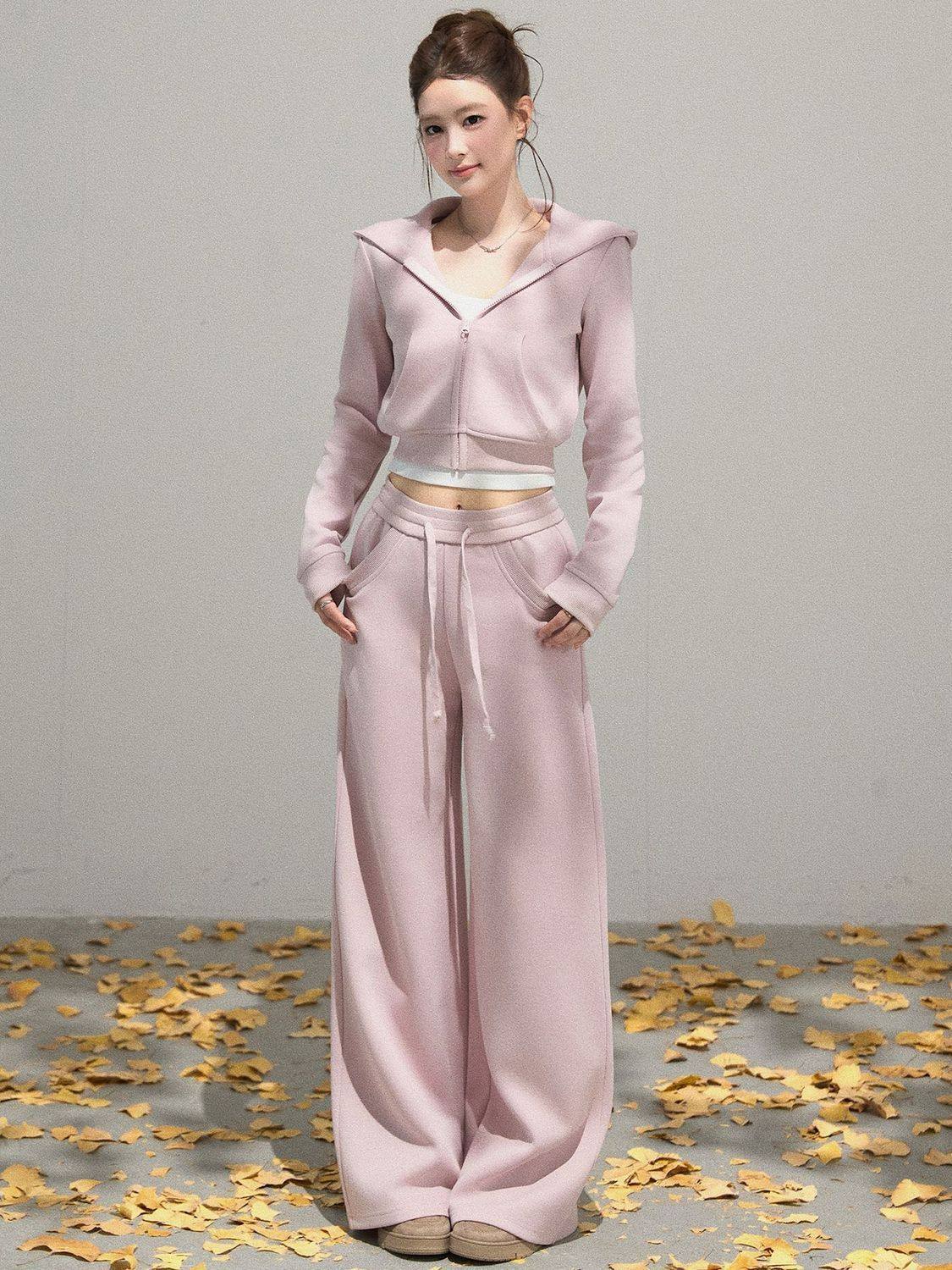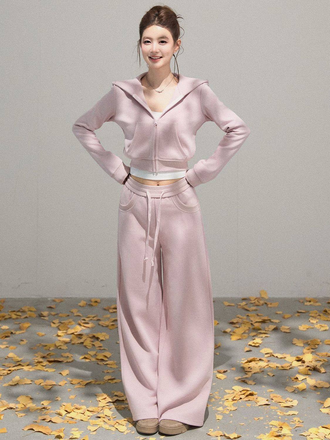 Korean Style Short Hooded Long-Sleeved Sweatshirt Jacket High-Waisted Lace-Up Pants Women's Spring & Fall New Slim Casual Two-Piece Set