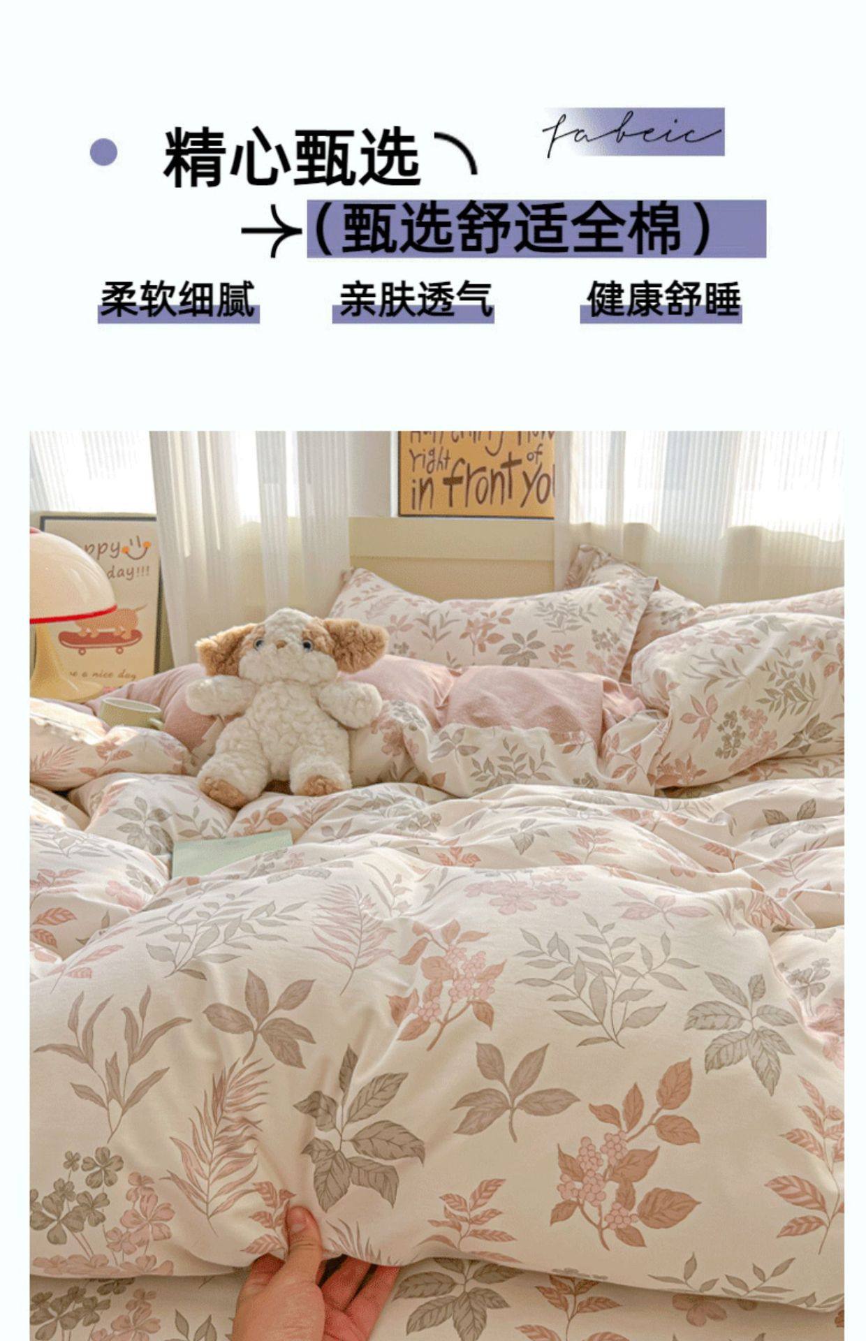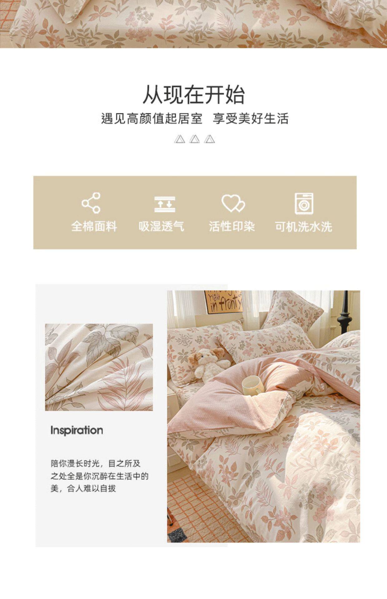 All-Cotton Four-Piece Bedding Set, Pure Cotton, New Style, Household Bed Sheet, Duvet Cover, Fitted Sheet, Four Seasons Dormitory Bedding Set