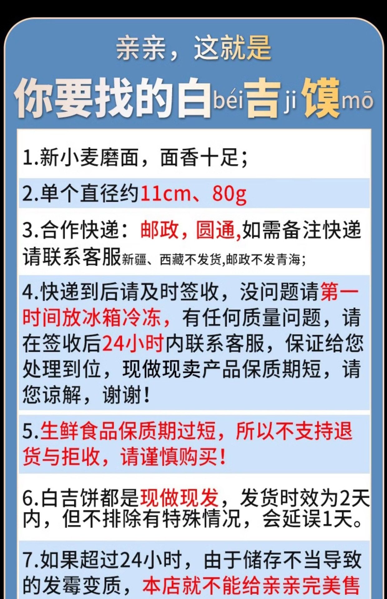 | Packaging specifications | 10 pieces of baiji,10 pieces of baiji + 1 bag of (350g) kohlrabi,10 pieces of baiji + 1 bottle of fresh chili sauce (120g),20 pieces of baiji,30 pieces of baiji,100 pieces of baiji |