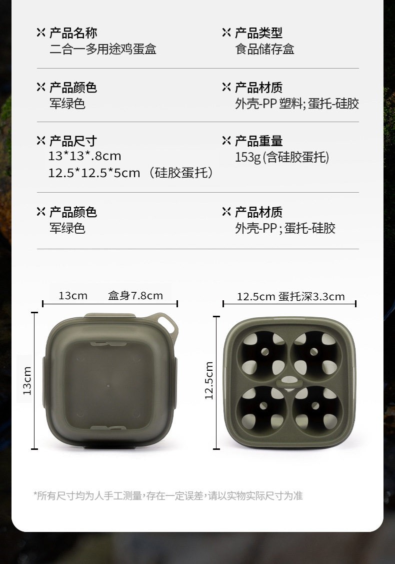 Outdoor 2-in-1 Egg Storage Box Multi-Purpose Portable Egg Box with Hanging Hole Sealed Silicone Shock-Proof Egg Box
