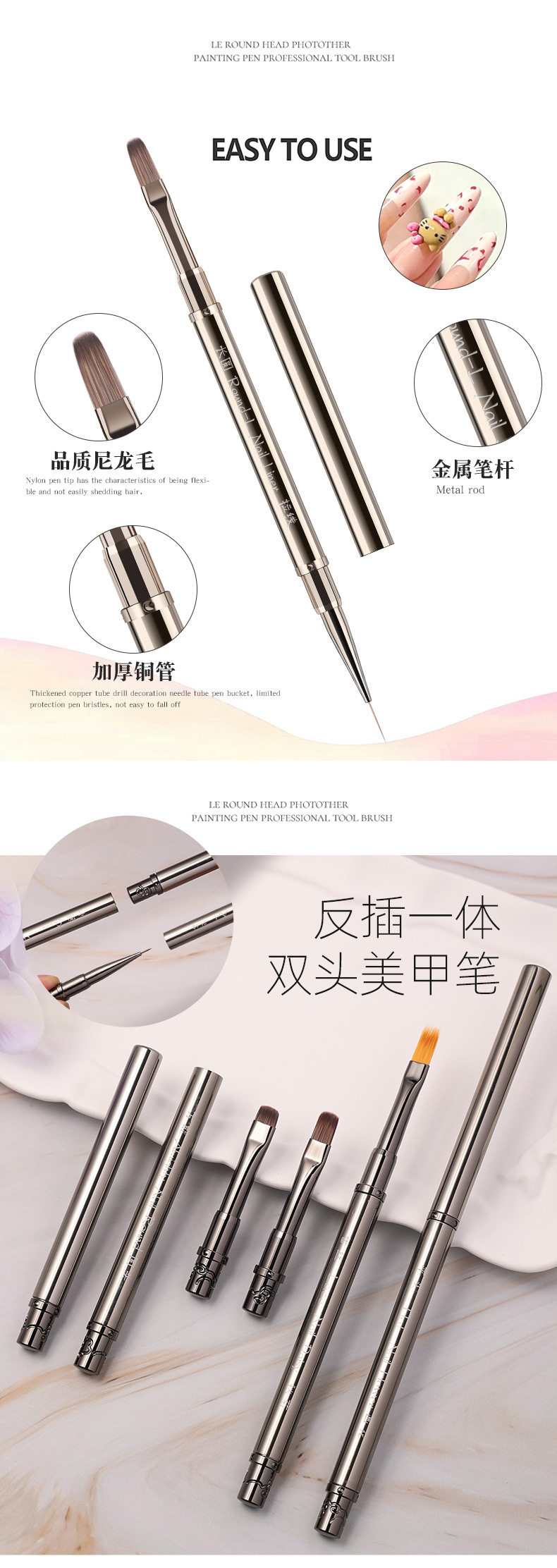 Cardamom New Manicure Double-Ended Pen Metal Phototherapy Pen Painting Pen Dual-Purpose Construction Pen Pull-Line Pen Manicure Special Pen