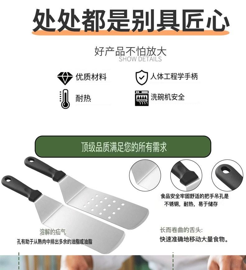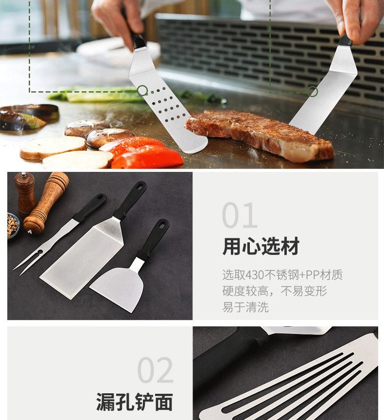 Hot-Selling Stainless Steel Barbecue Tool Set Cooking Spatula Teppanyaki Spatula Bbq Grilling Tool Spatula Camping